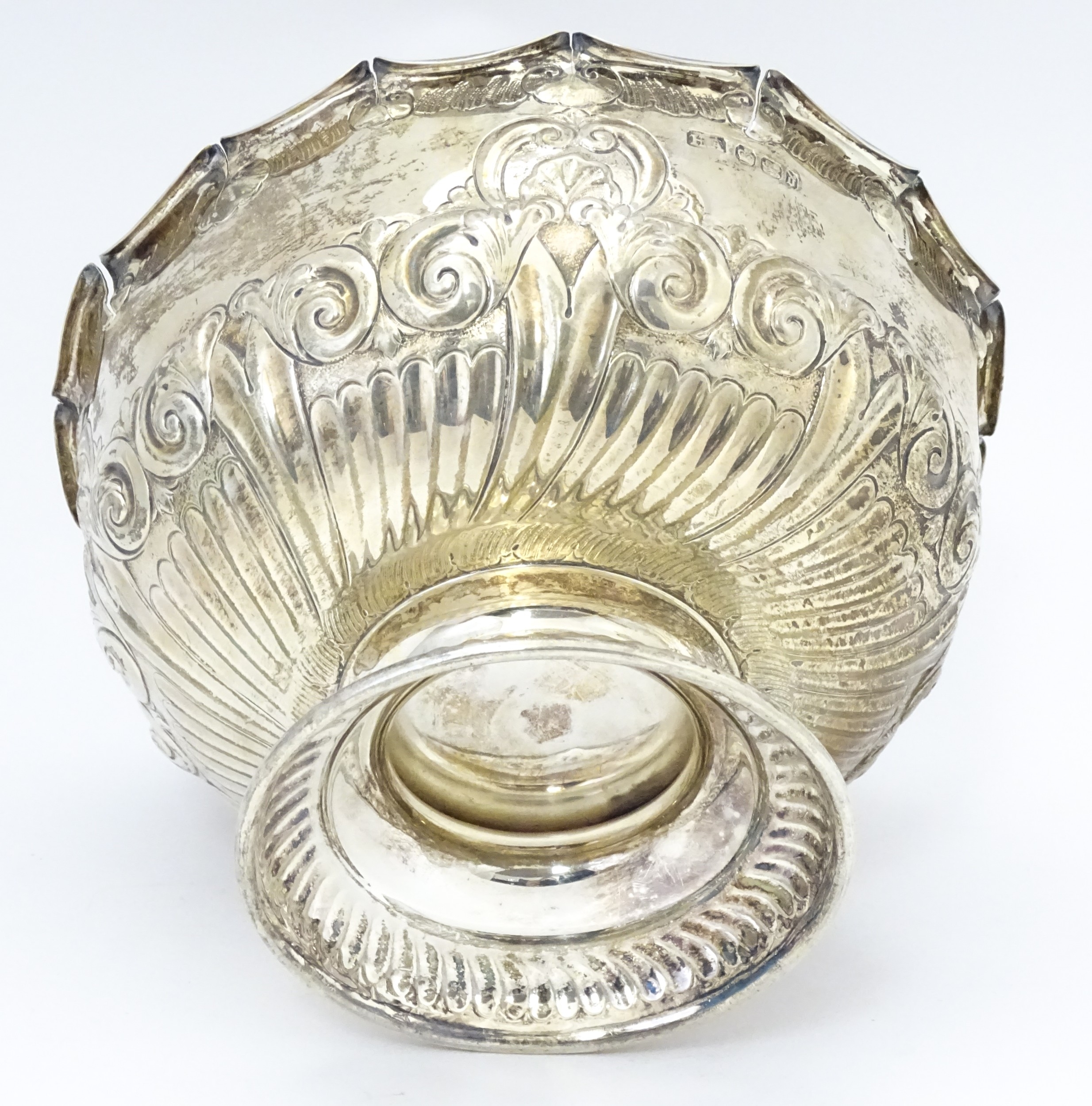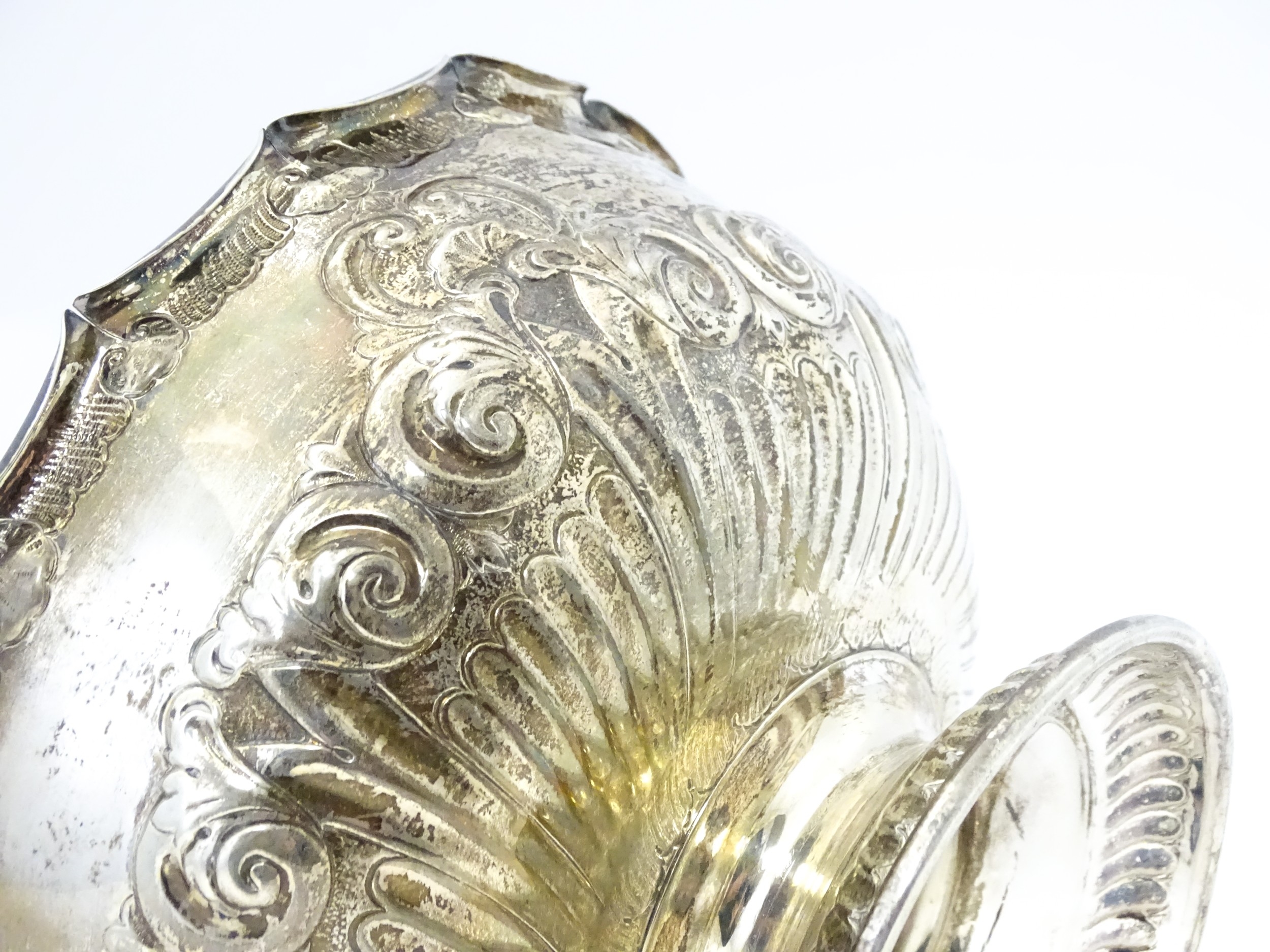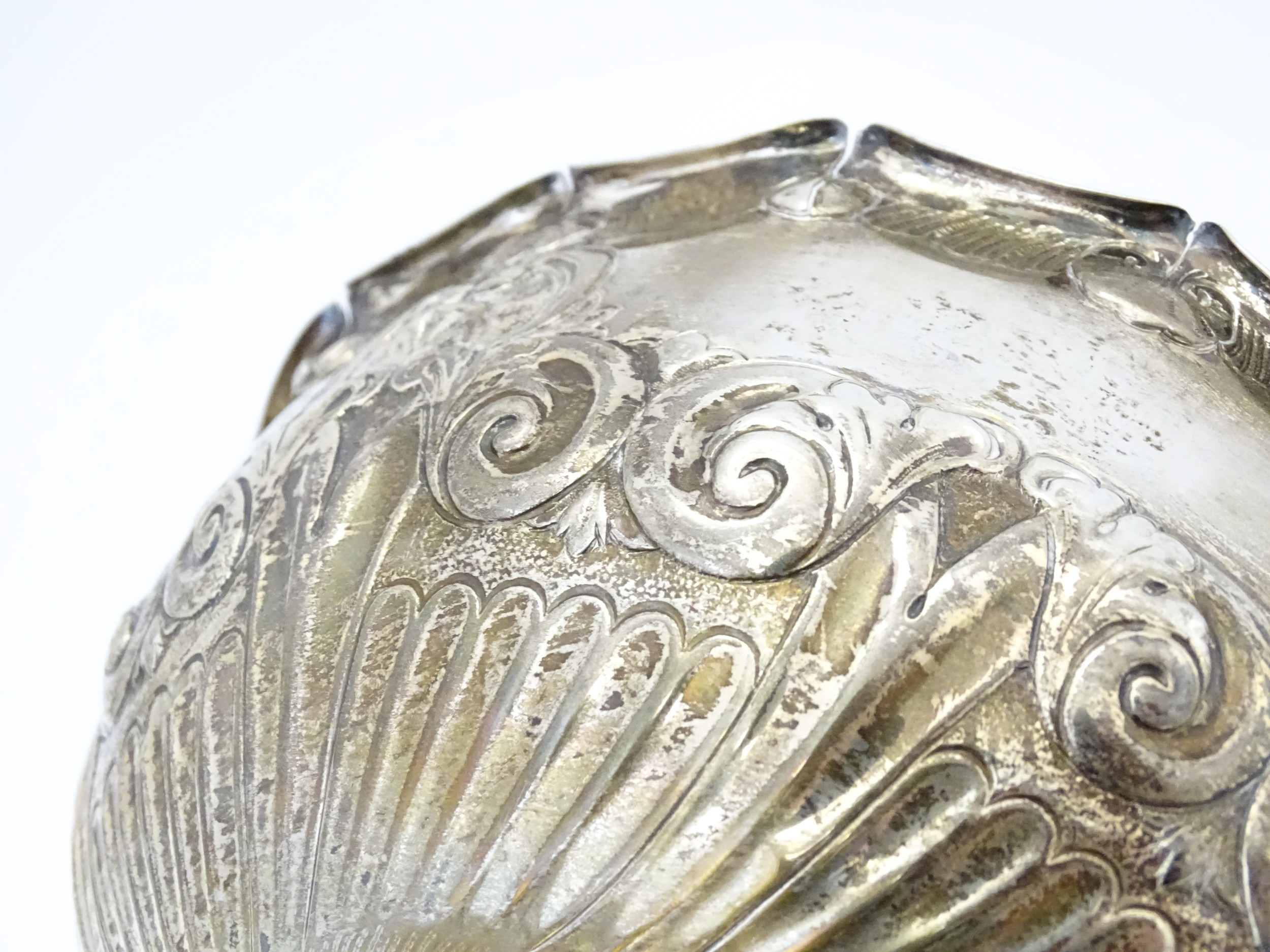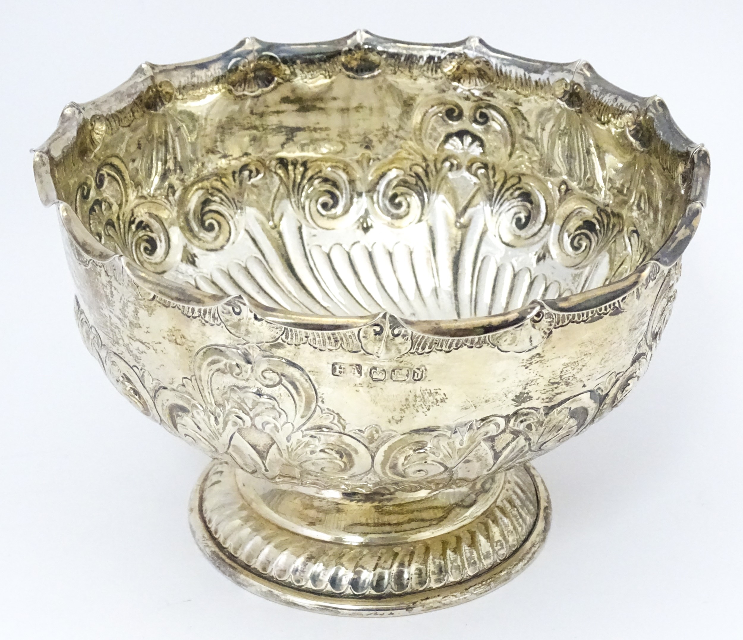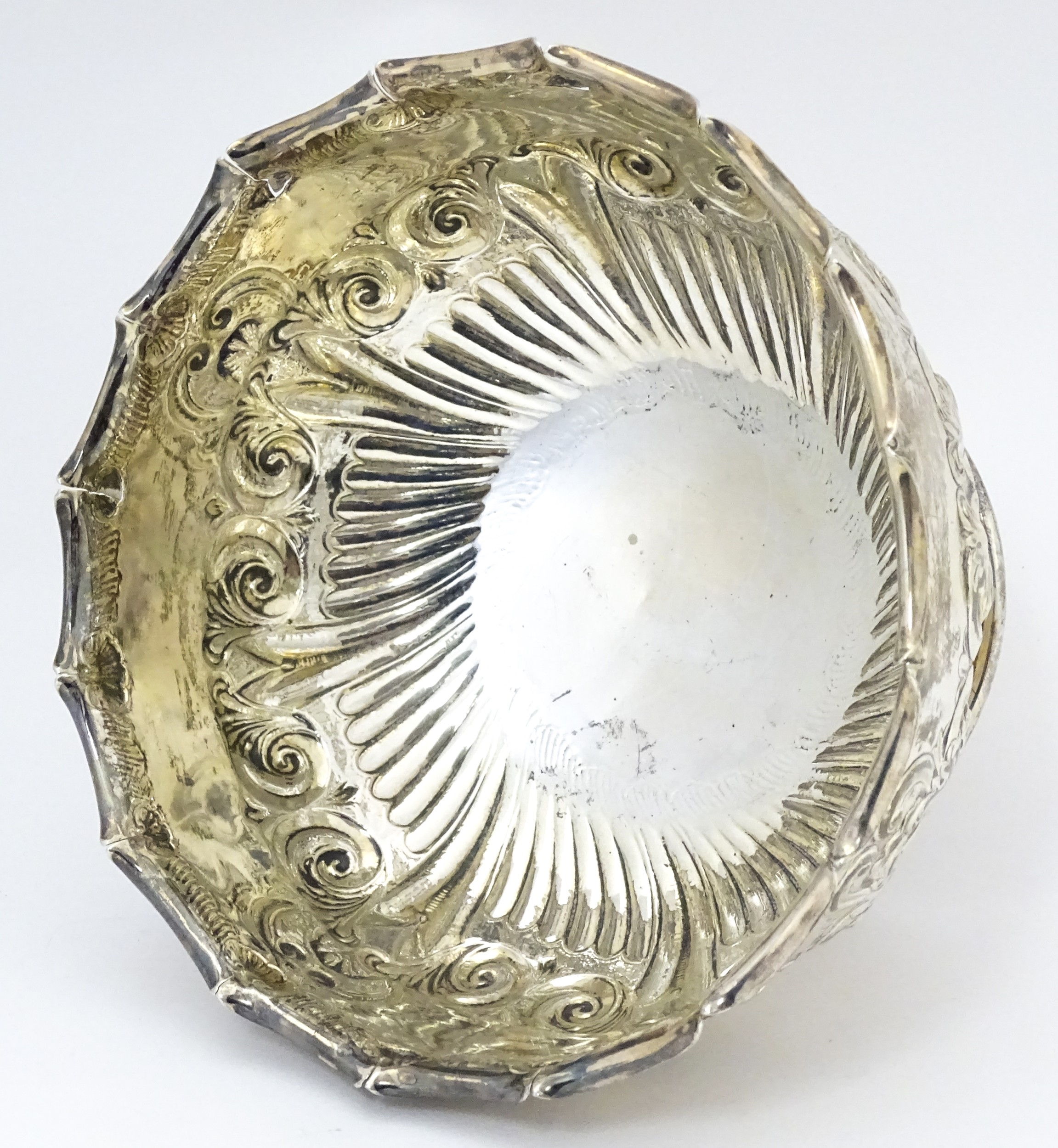 A Victorian silver pedestal bowl with embossed decoration, hallmarked Sheffield 1896, maker Atkin Brothers. Approx. 7" wide