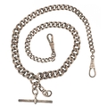 A graduated silver watch chain with T bar and dog clip clasps, 42cm in length, 59.0g.