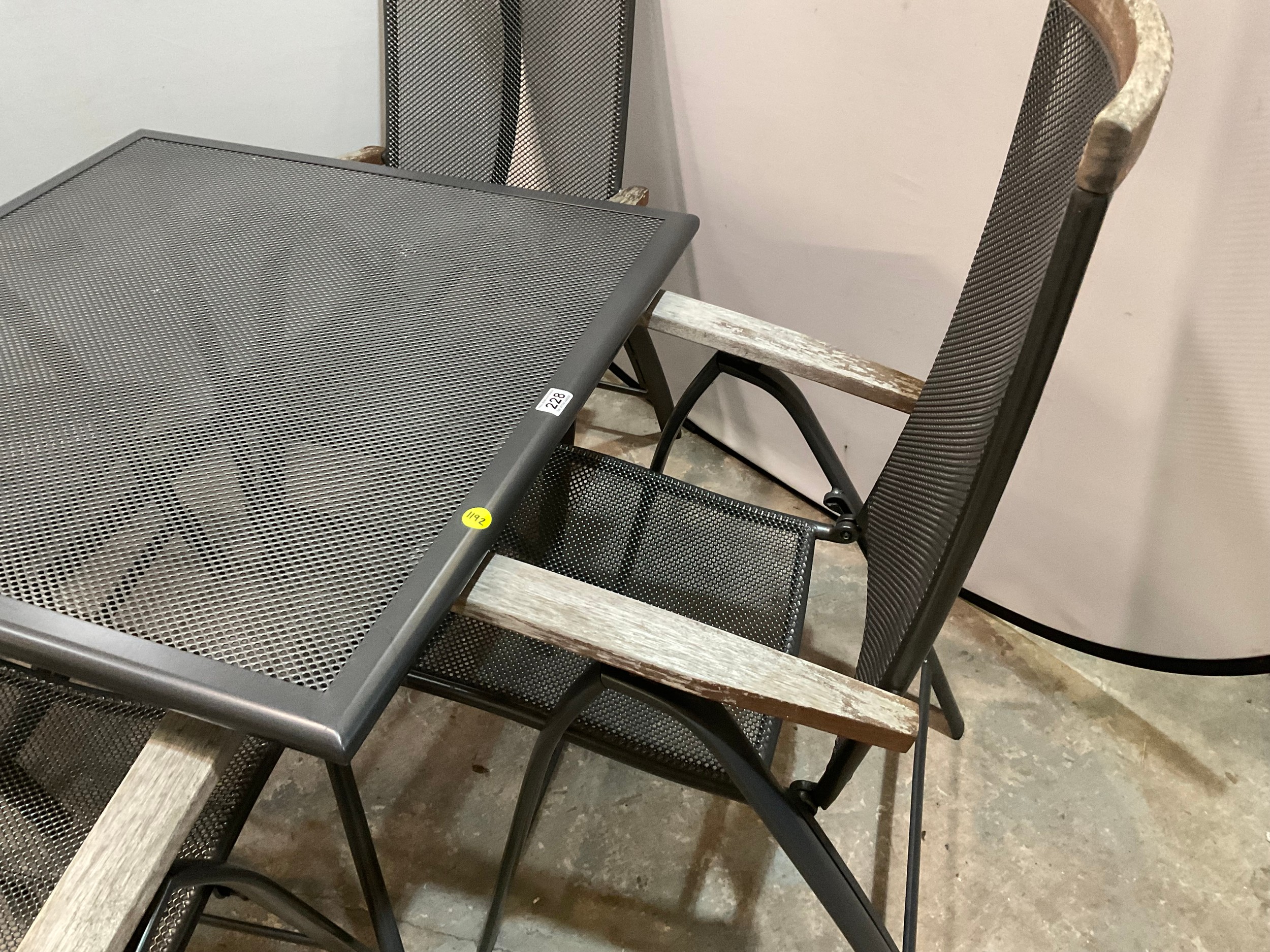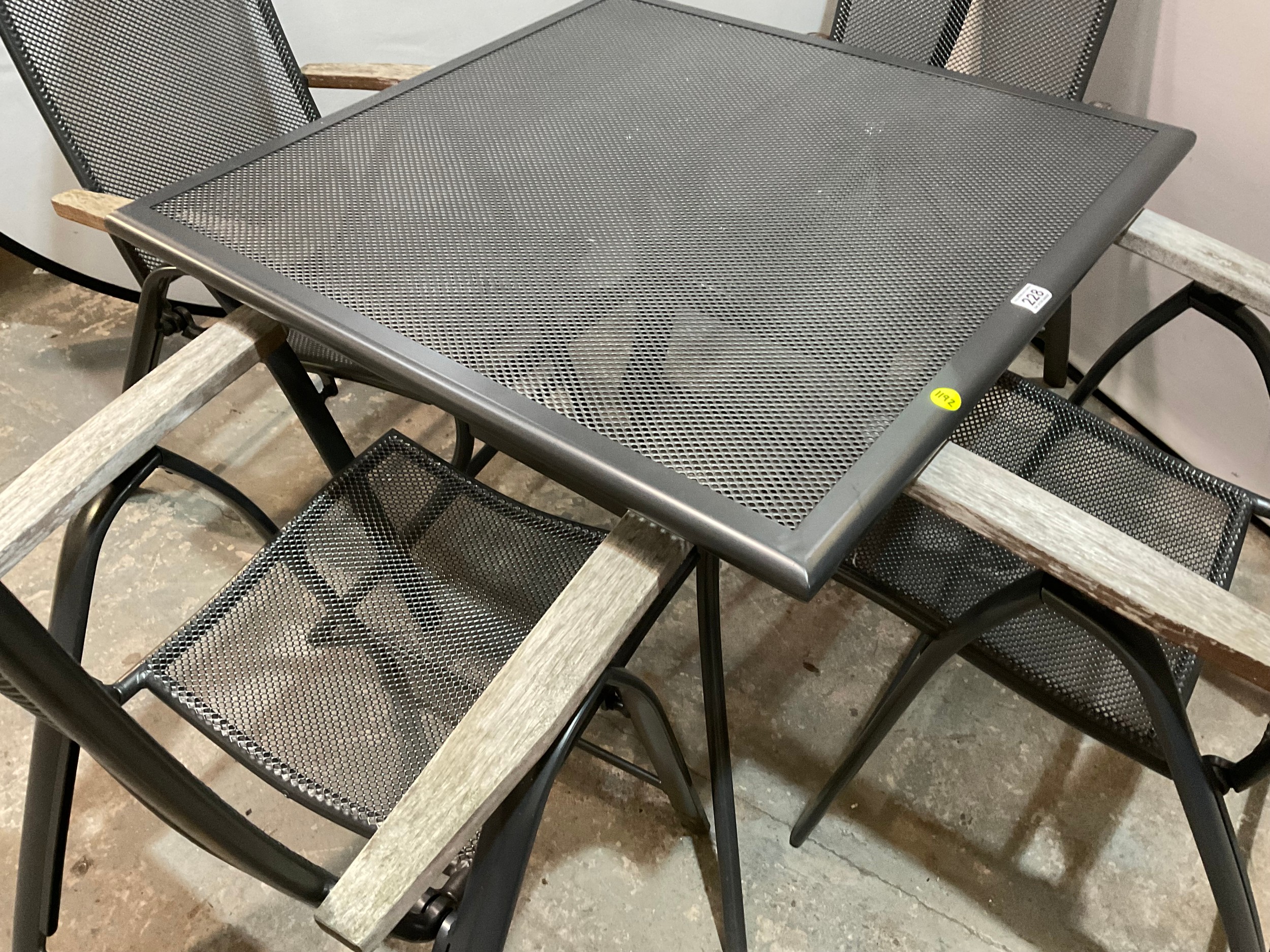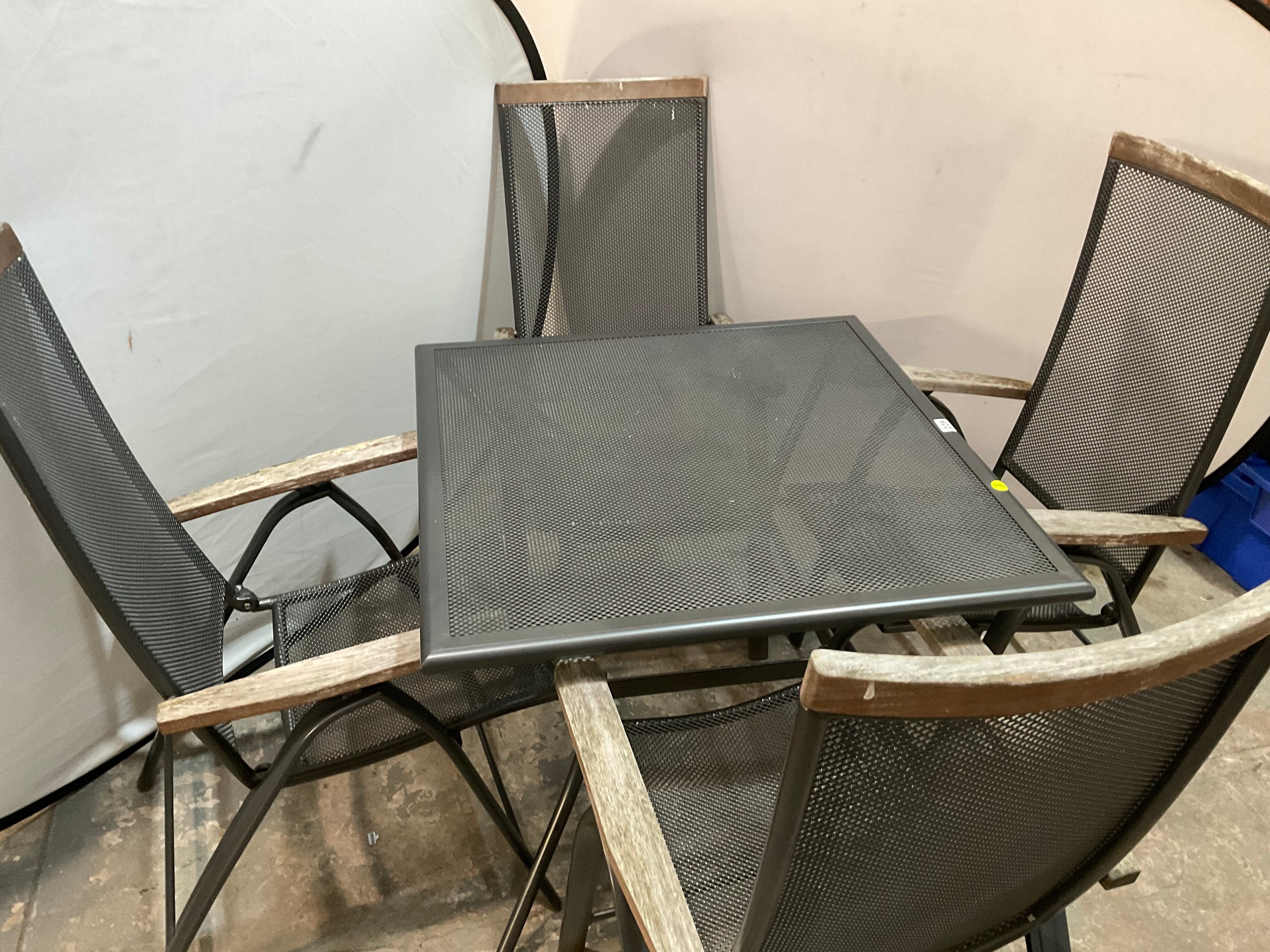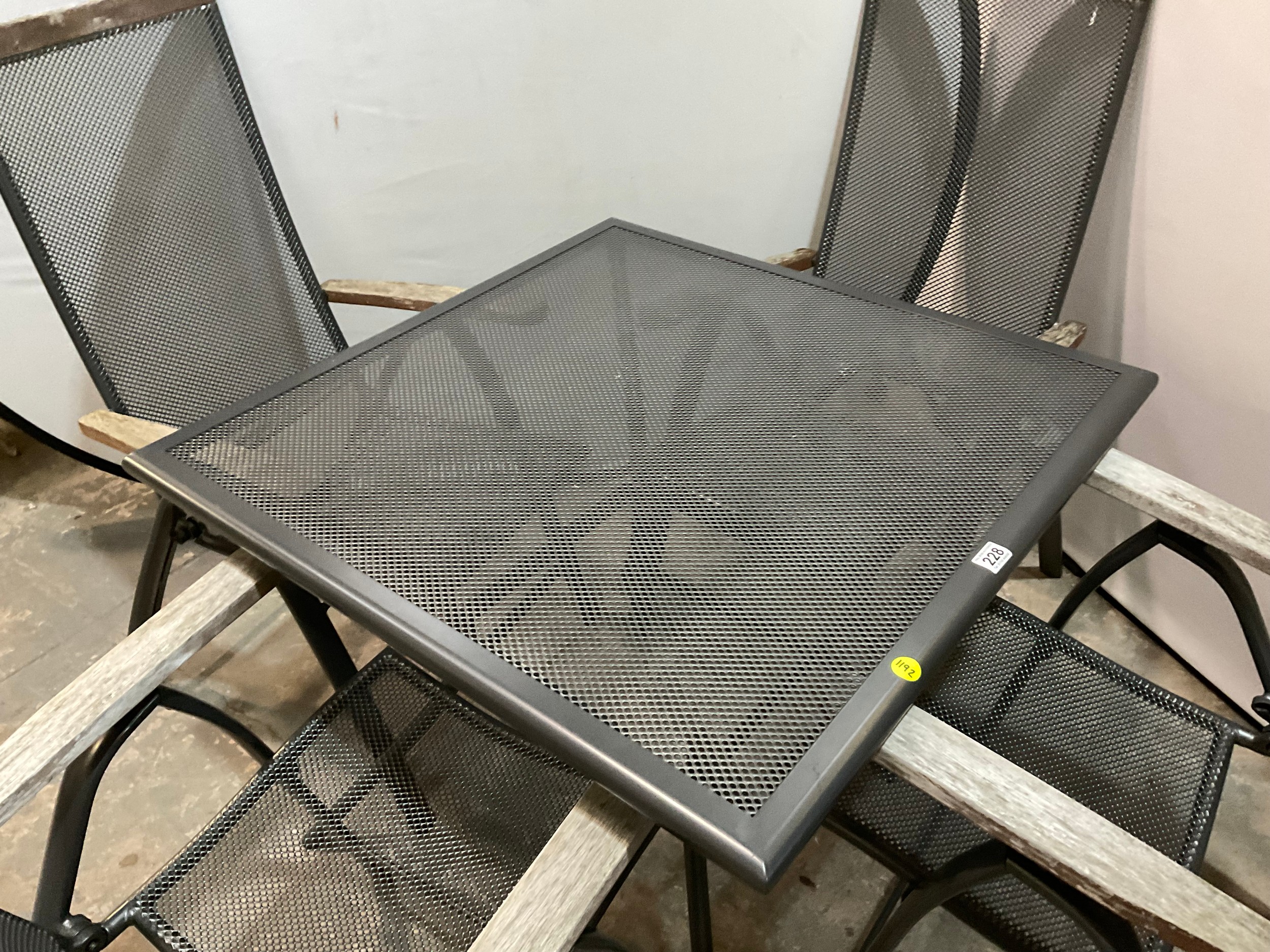 SQUARE METAL GARDEN TABLE WITH 4 FOLDING ARMCHAIRS