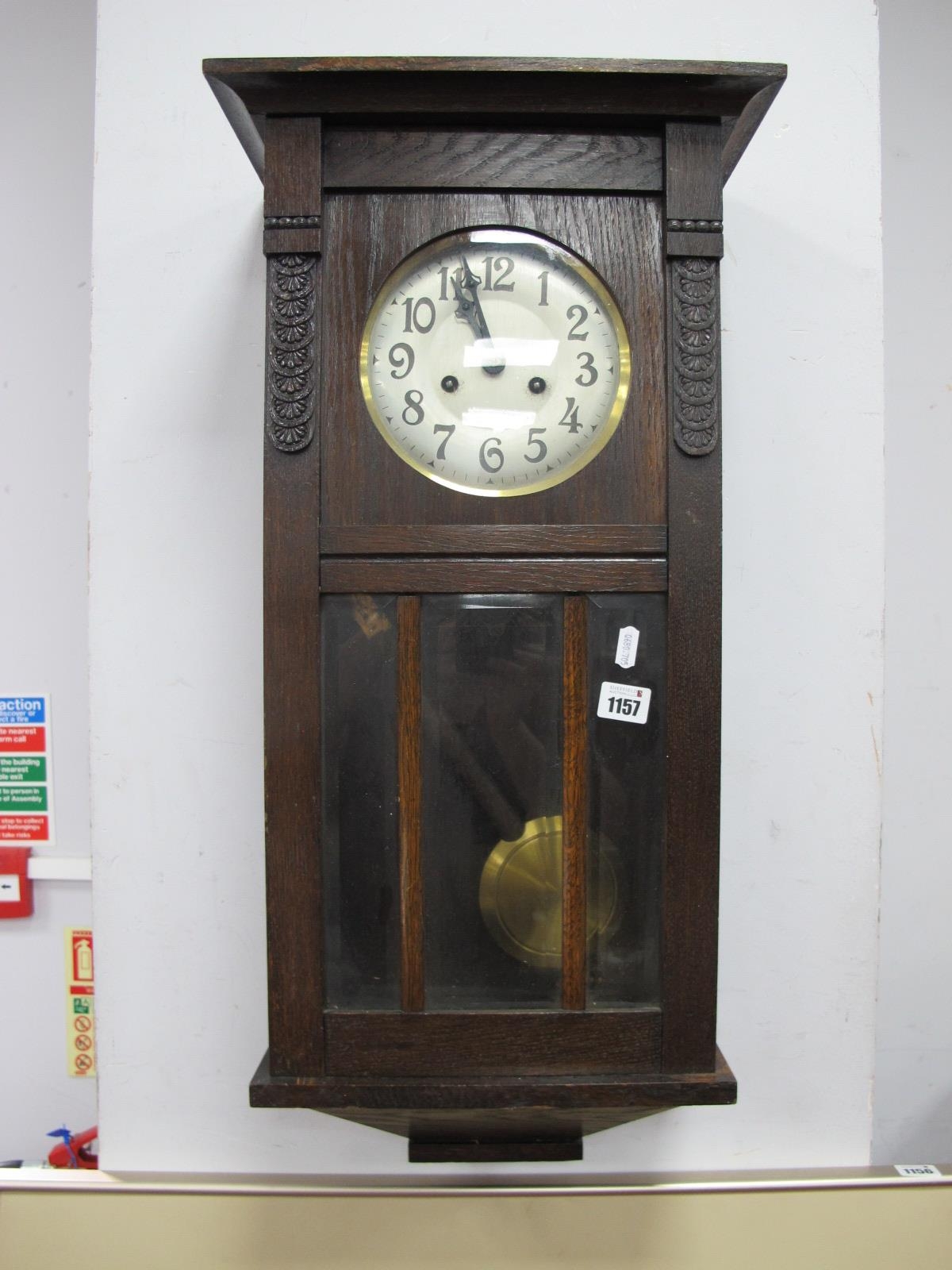 An Oak Cased Regulator Wall Clock, eight day movement, Arabic numerals to silvered dial.