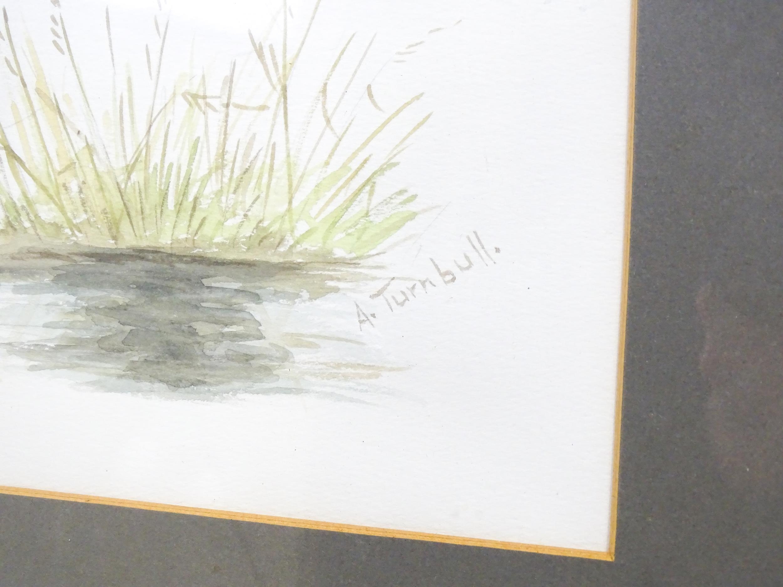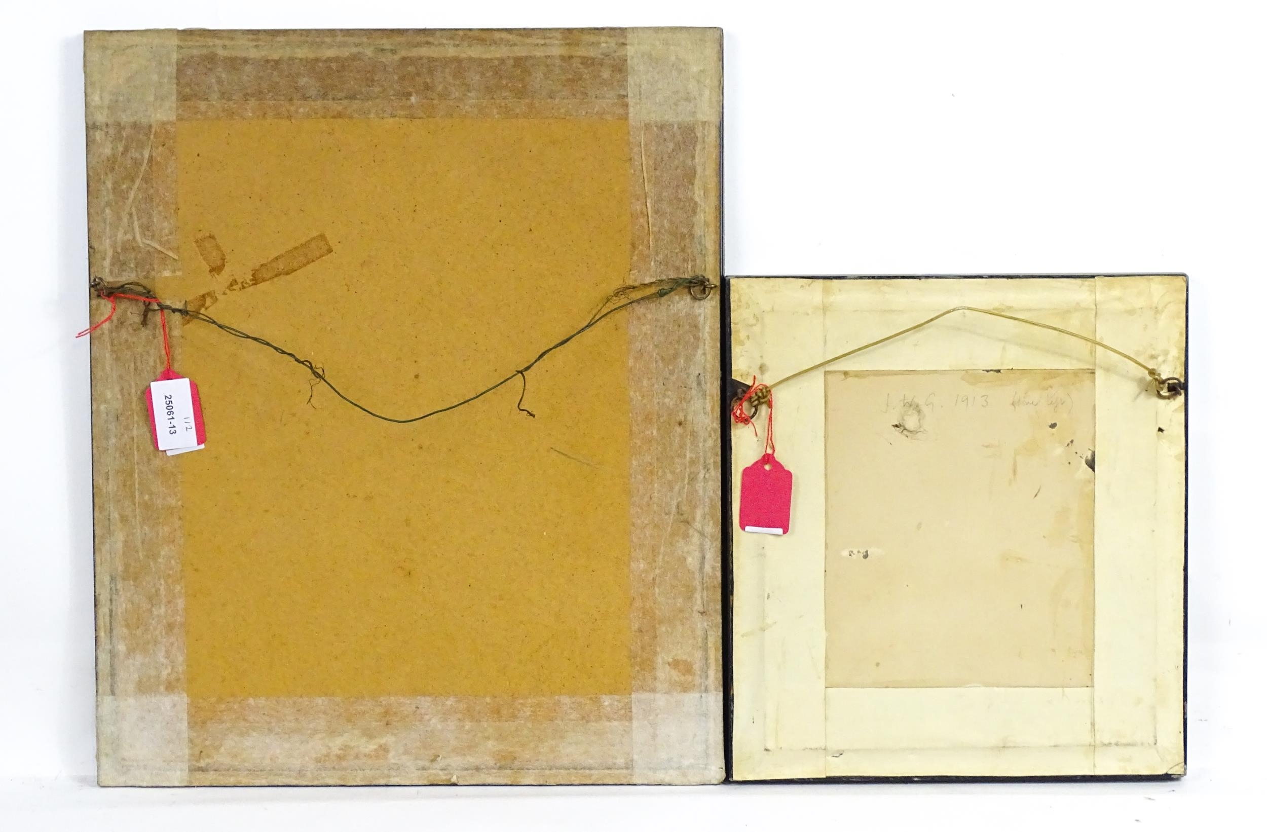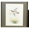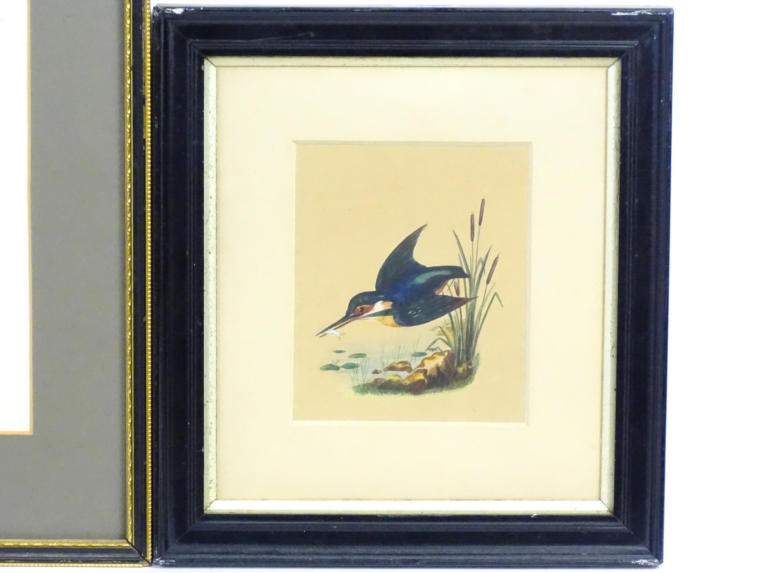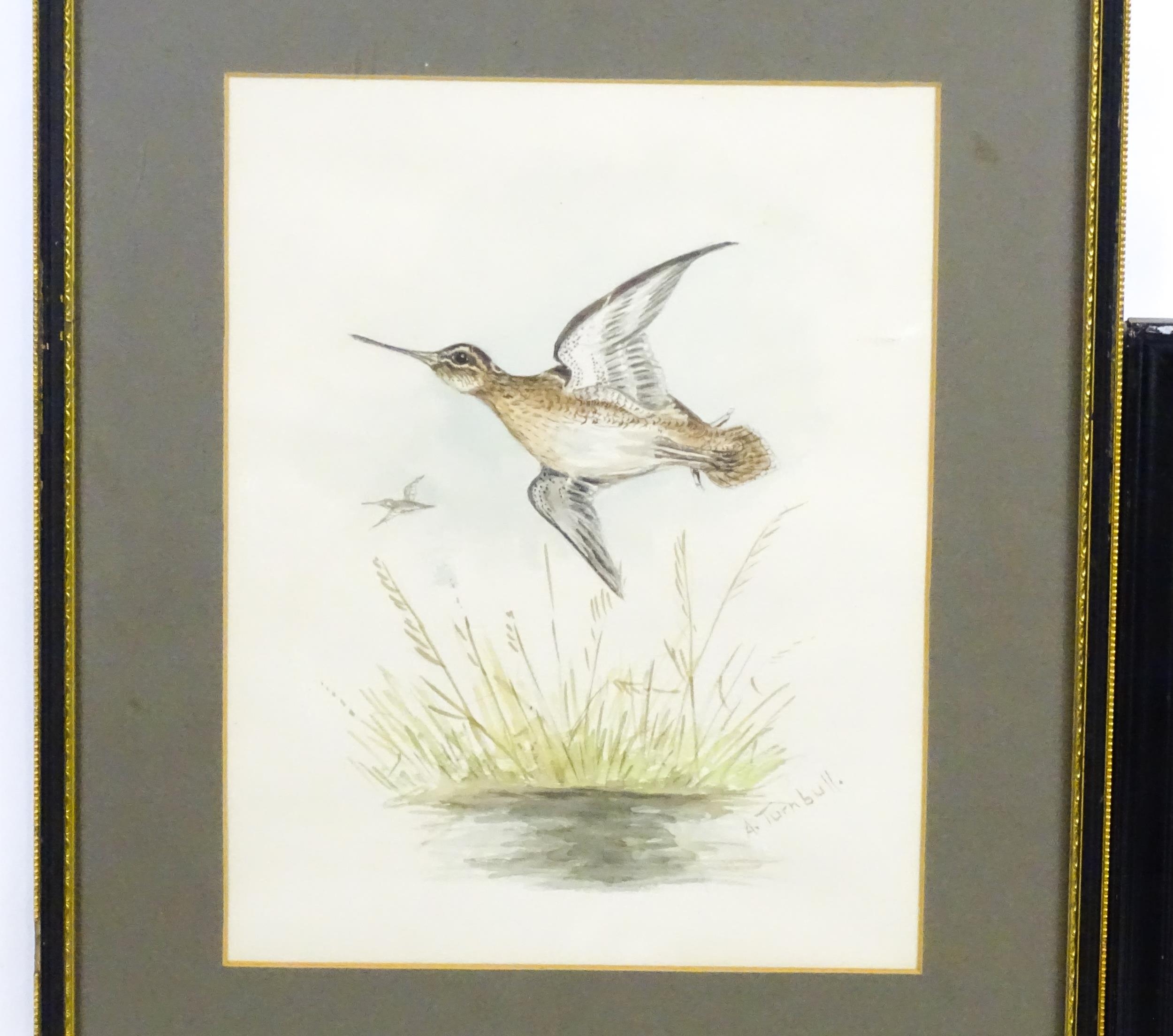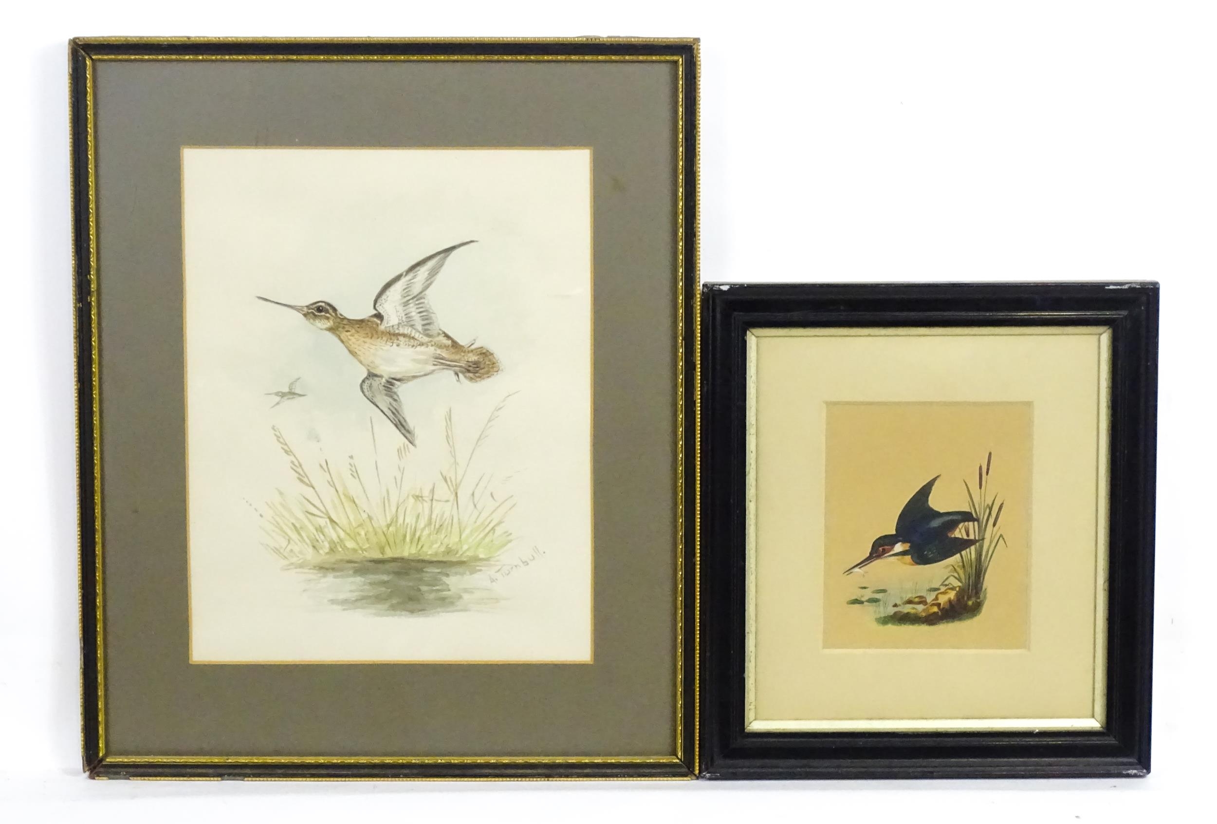 Early 20th century, Watercolour, A study of a kingfisher in flight with a fish in its beak. Signed with initials J. W. G. and dated 1913 lower left. Together with a study of a common snipe in flight. Signed A. Turnbull. Largest approx. 11 1/2" x 8 1/2" (2)
