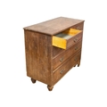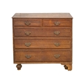 A late George III oak and crossbanded chest. Fitted two short and three graduated long drawers, height 98.5cm, width 103cm, depth 50.5cm.