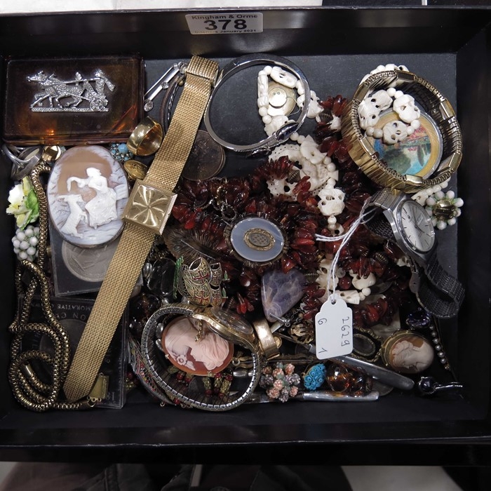 A selection of jewellery and watches, to include a Tissot Seastar bracelet watch, a late Victorian agate mourning brooch and further items