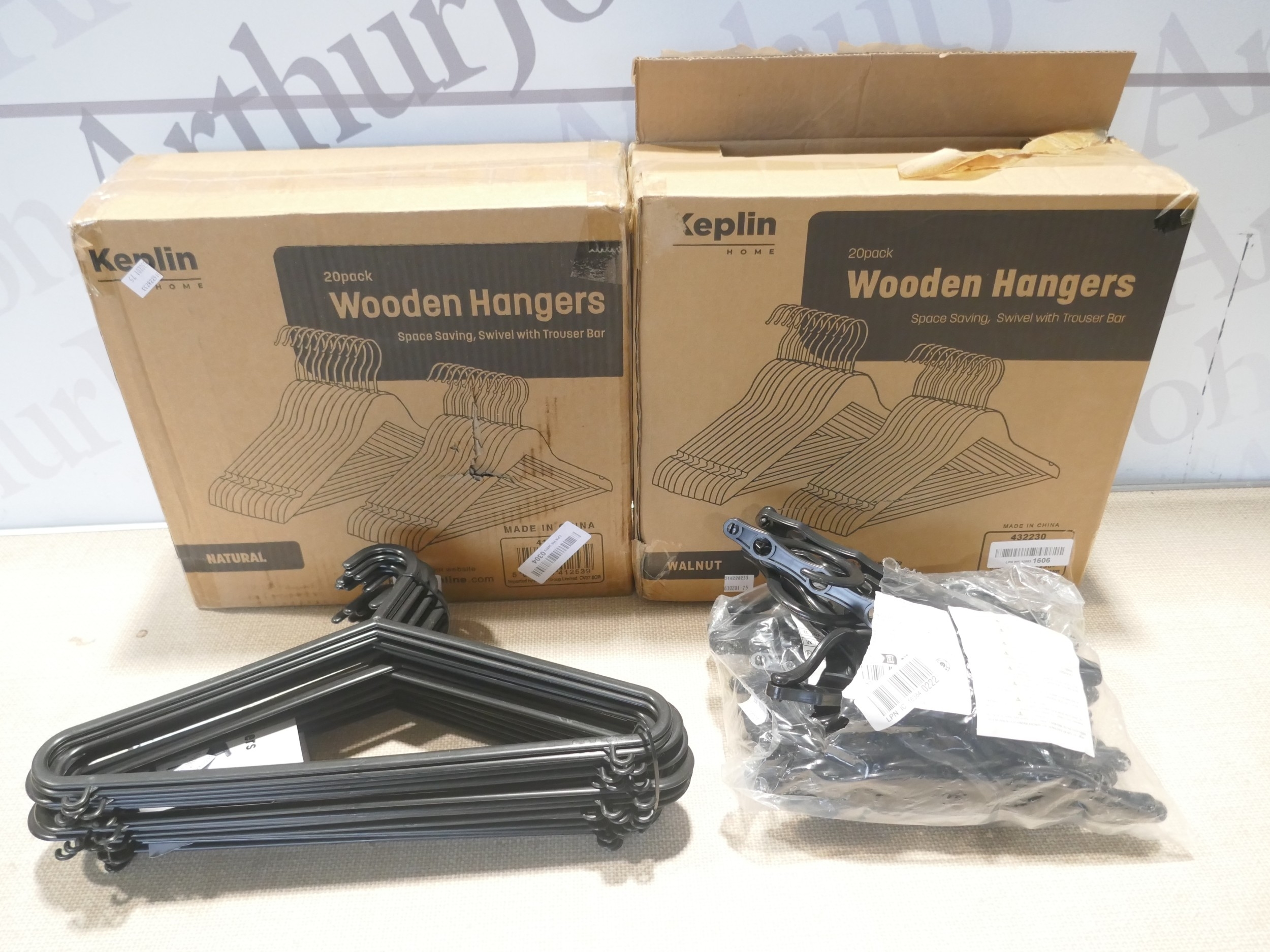 A quantity of wooden and plastic coat hangers * This lot is subject to VAT
