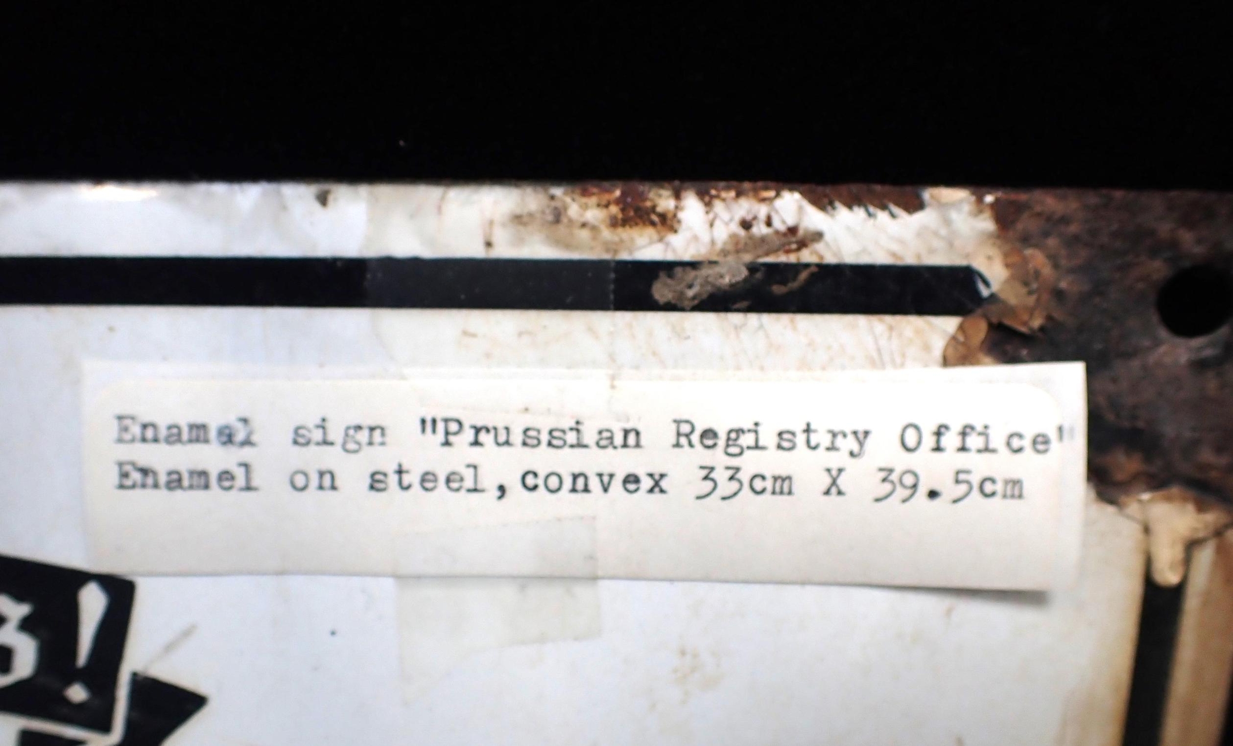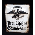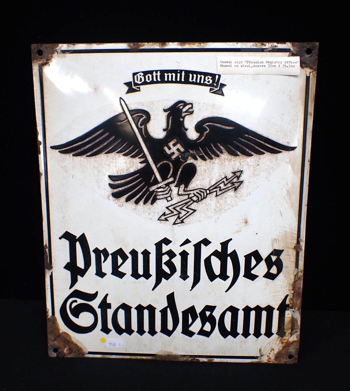 A GERMAN CONCAVE ENAMEL SIGN 'Preussisches Standesamt', with eagle and swastika motif 33 x 39.5cm
