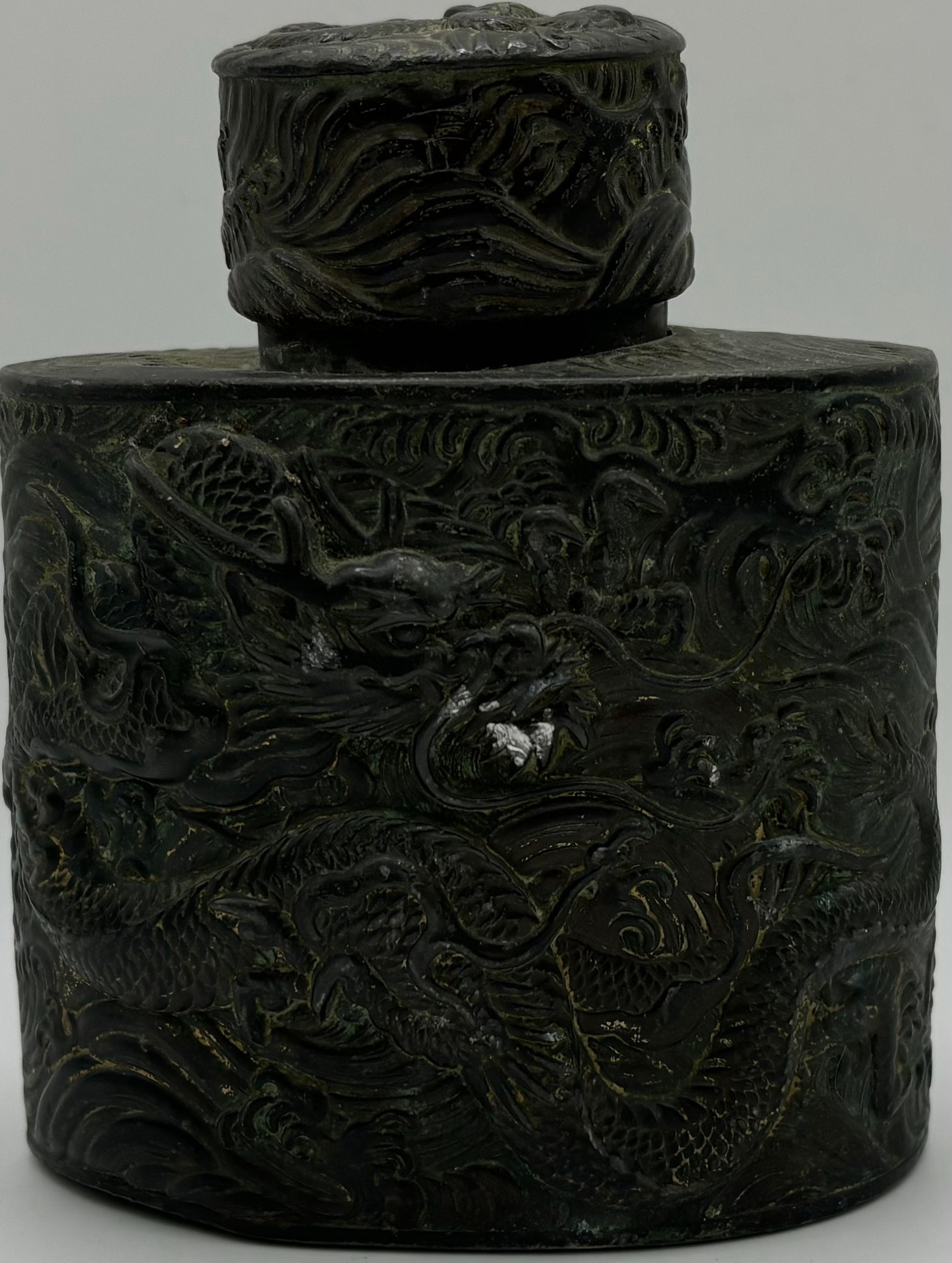 Chinese Tea Caddy from early 20th century/late 19th century. Dimensions(cm) H12, W9.5, D6.