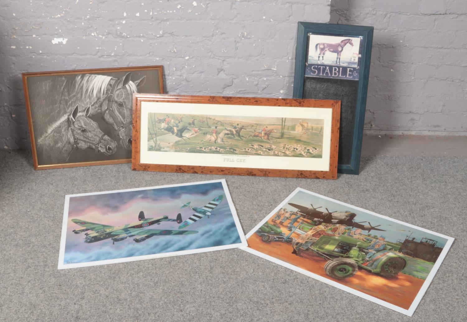 A collection of framed prints/pictures, Full Cry horse racing example