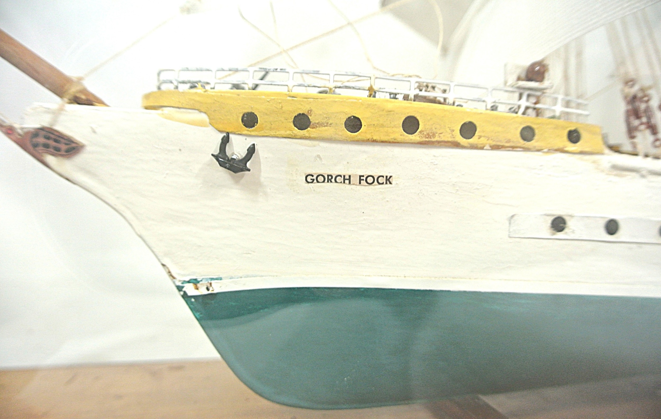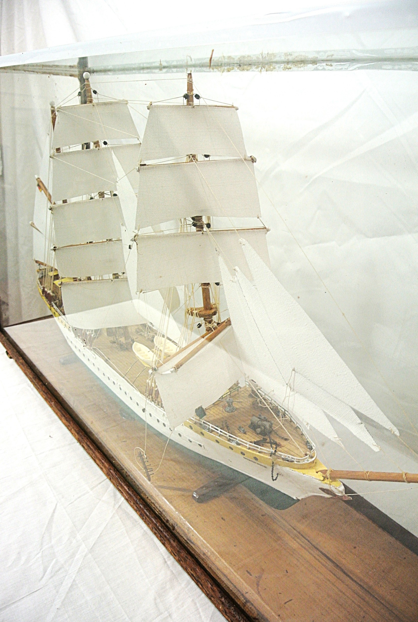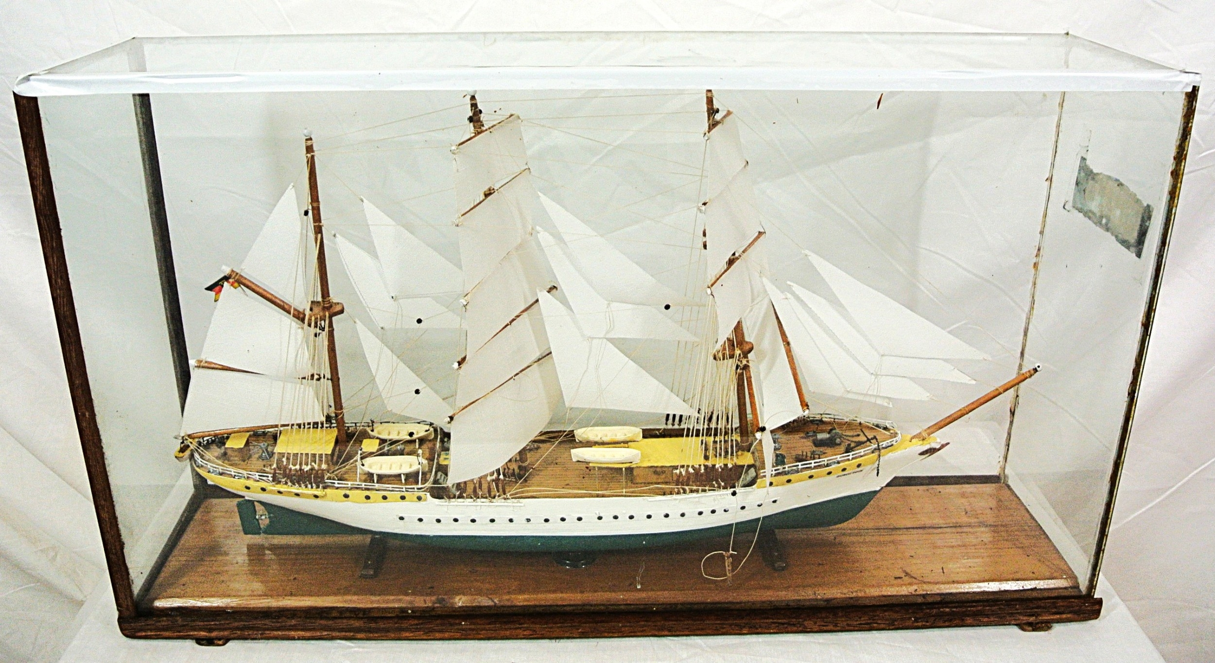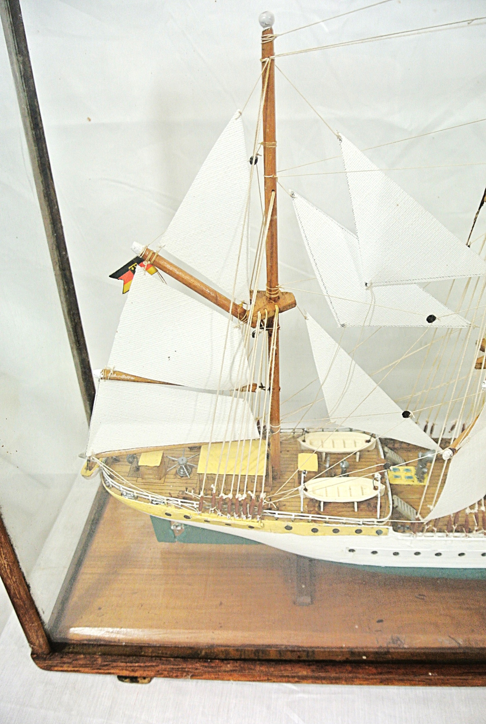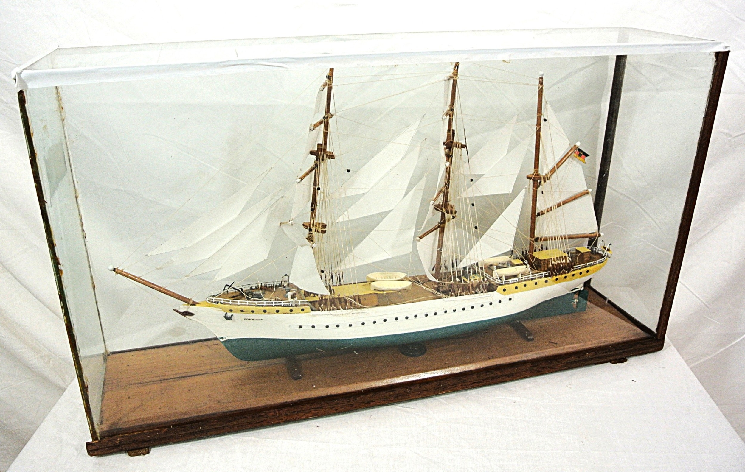 Ornate model of a 3 masted barque - 'Gorch Foch' in glass display cabinet
