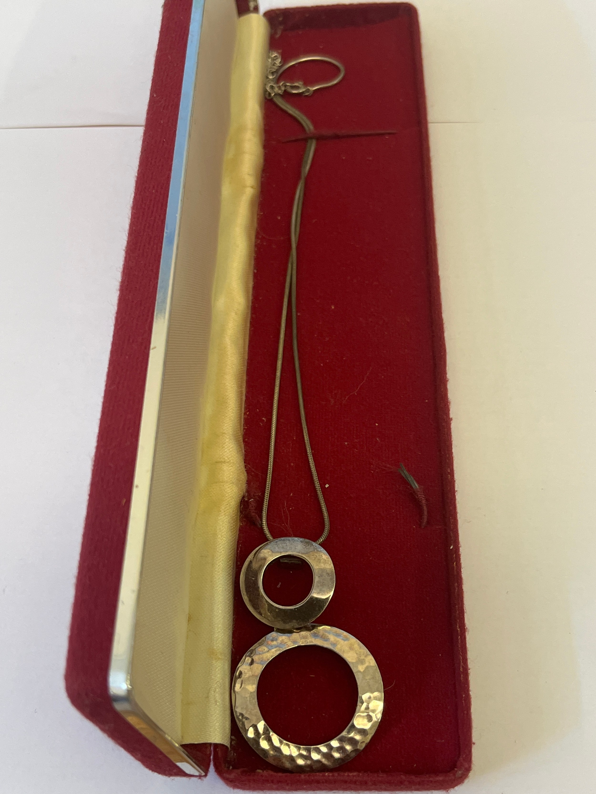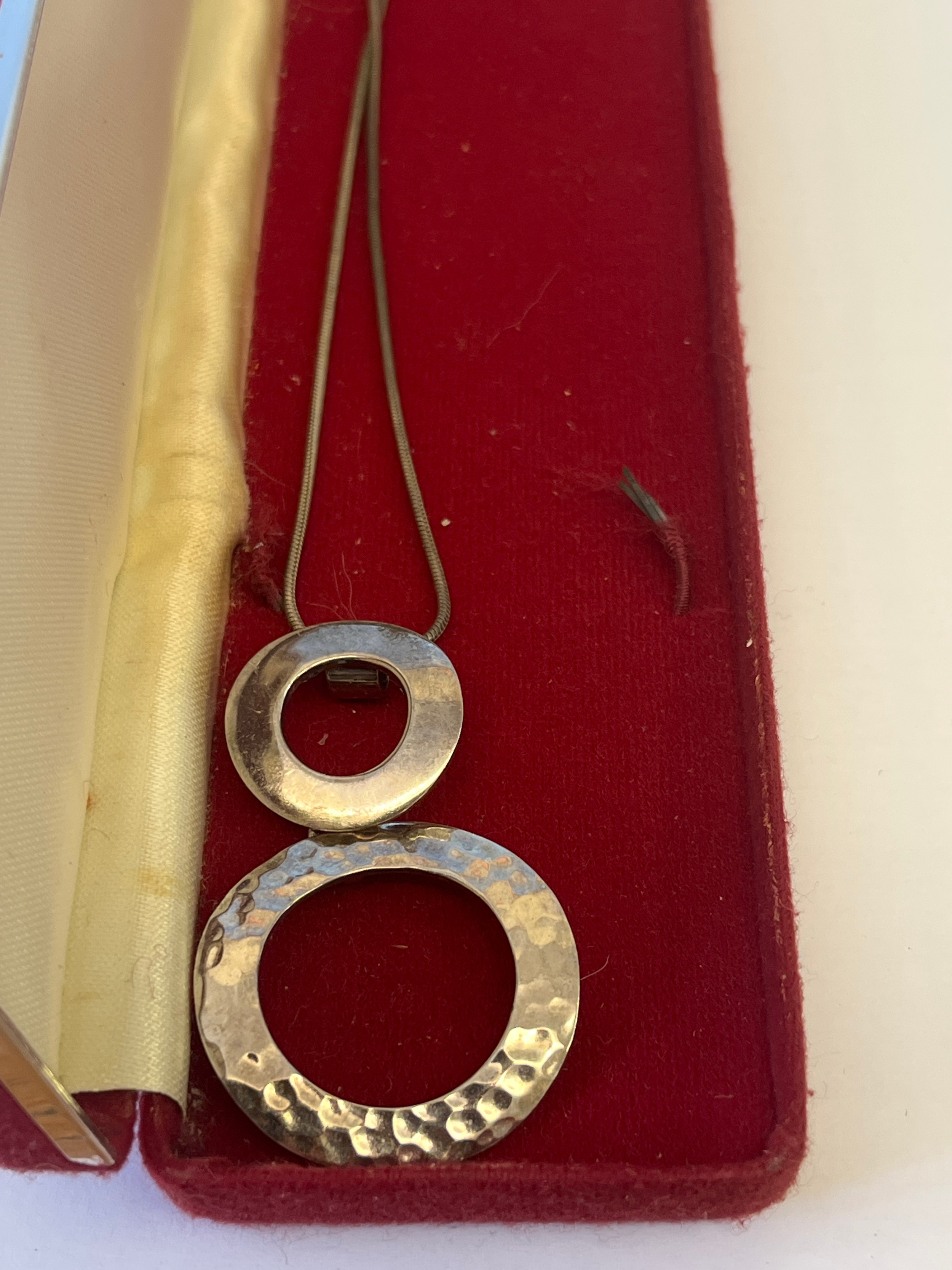 A FINE SOLID SILVER DESIGNER STYLE PENDANT AND SILVER CHAIN