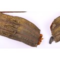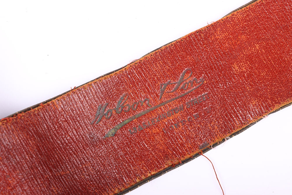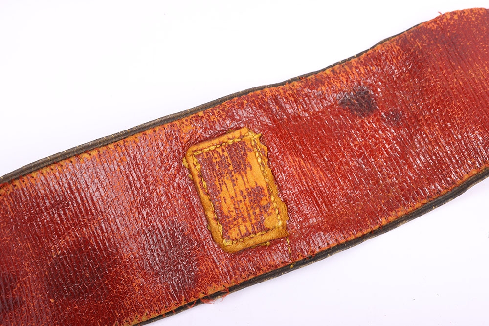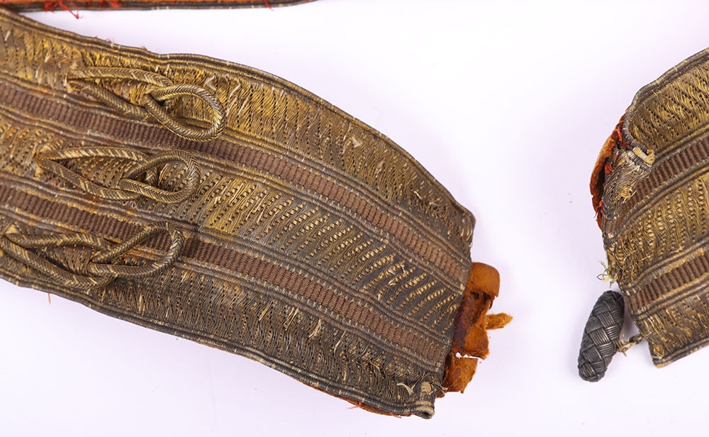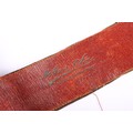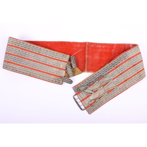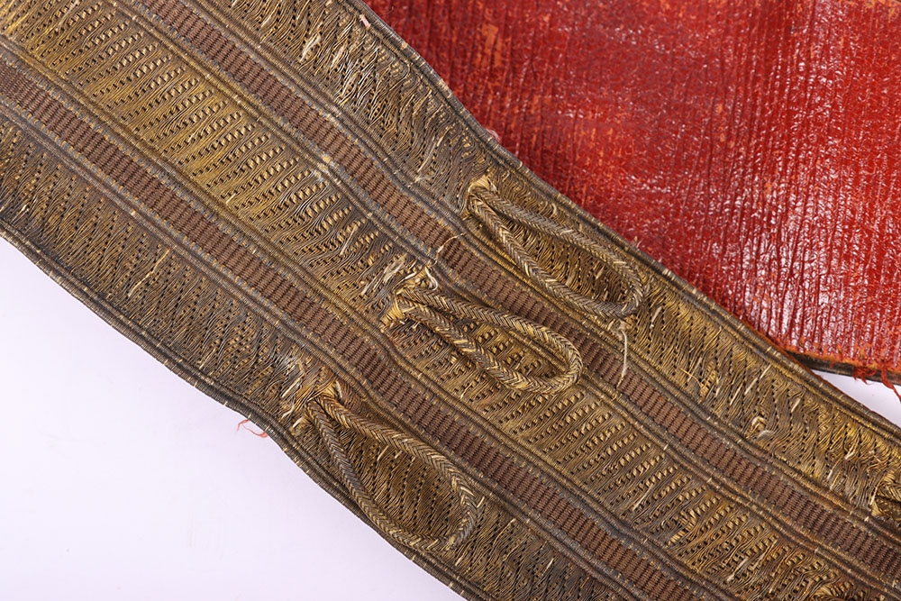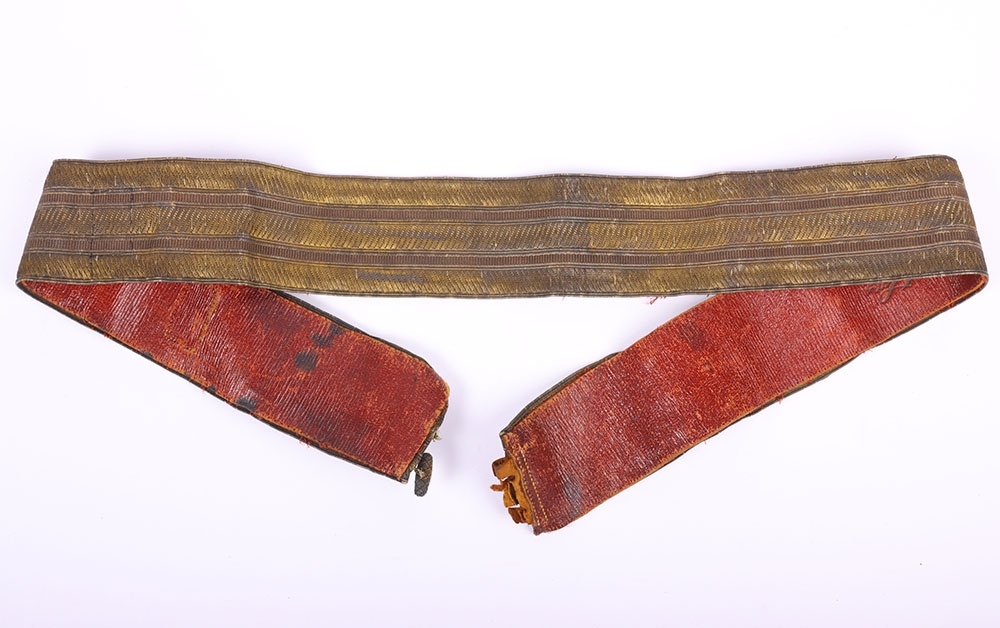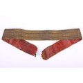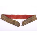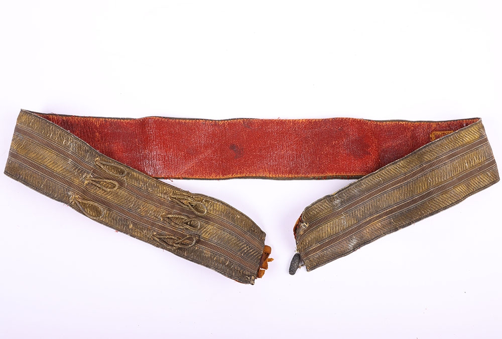 Cavalry Officers Girdle Belt, Victorian leather backed girdle belt with regimental lace top, having two smaller bands running top and bottom. One of the original three knot fasteners still in place. Some stitching faults.