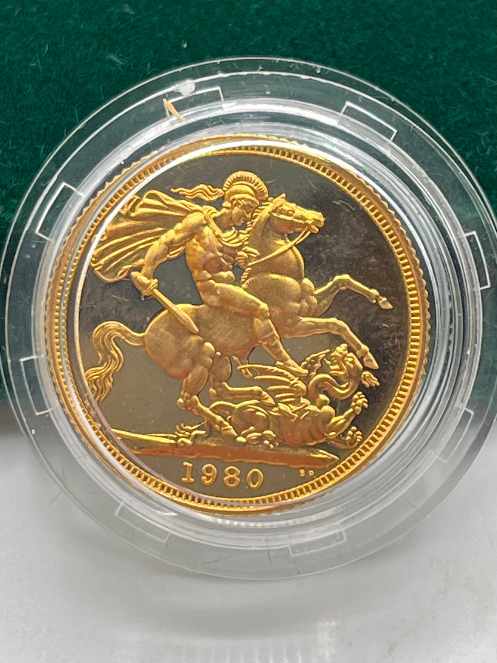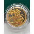 An Elizabeth II 1980 gold proof sovereign in Perspex case with box and paperwork. 8.00g.