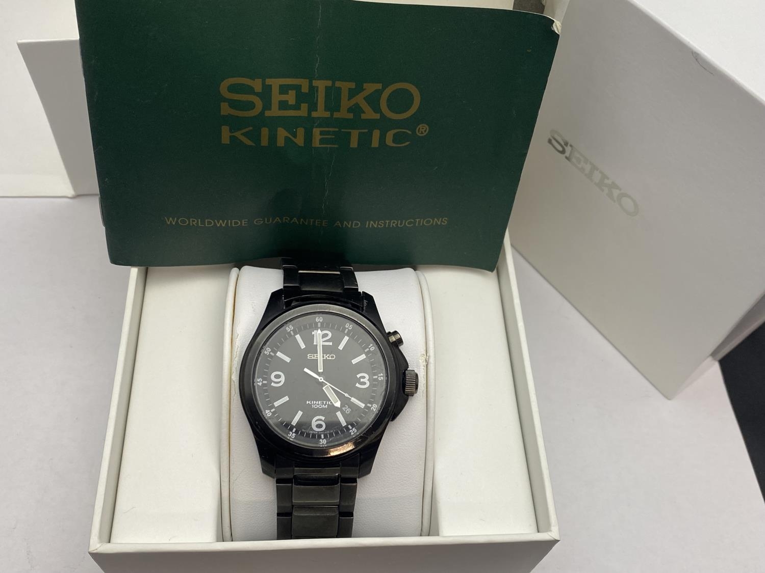 A Boxed Seiko Kinetic 5M62 - 0CHO exhibition back, ticking at time of cataloguing