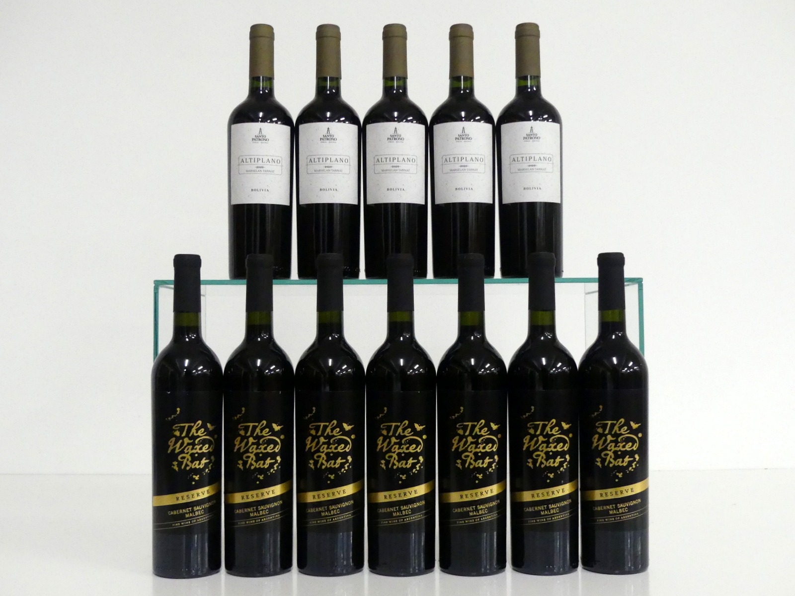 7 bts The Waxed Bat Cabernet Sauvignon, Malbec Reserve 2016 Mendoza 5 bts Santo Patrono Altiplano Marselan Tannat 2020 Bolivia Above 12 bottles