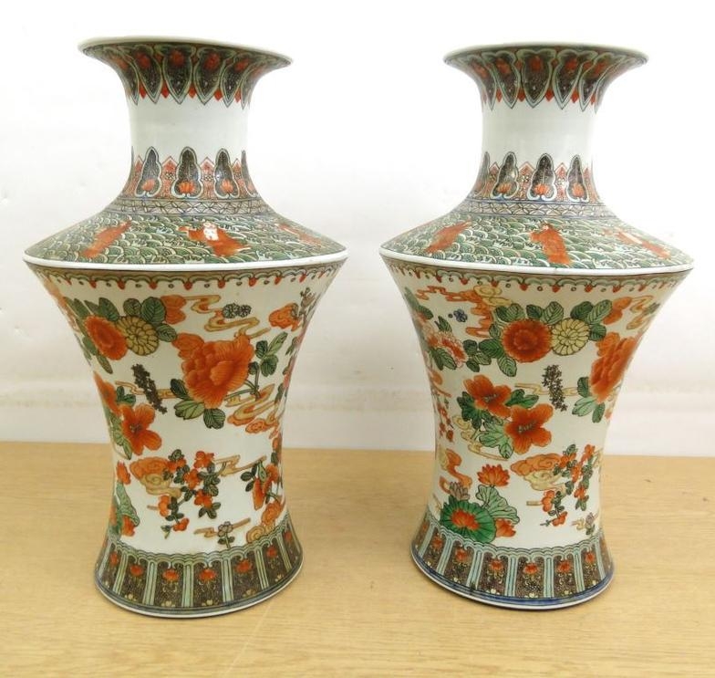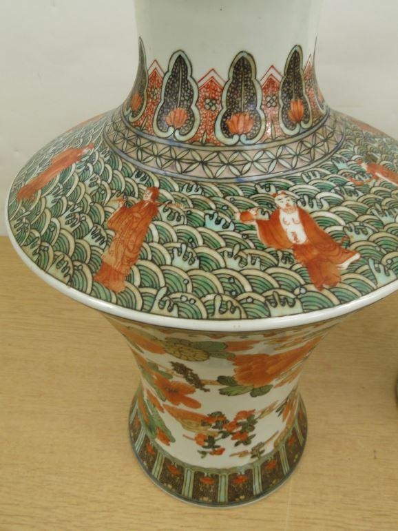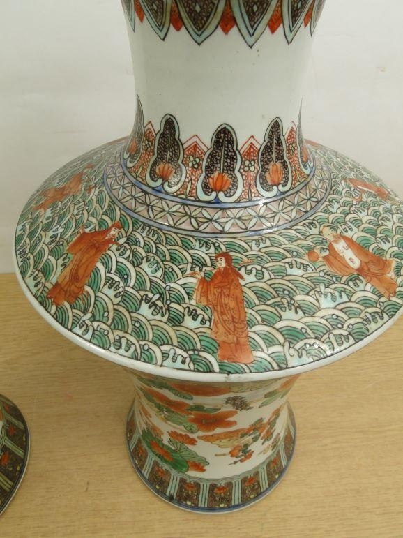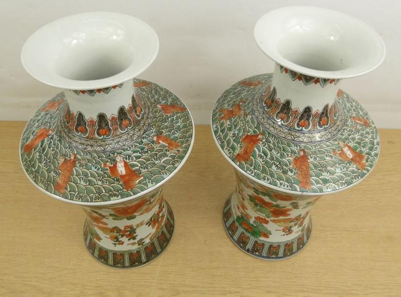 Pair of large Chinese vases painted in the famille verte palette
