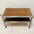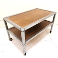 2 tier teak and chrome low side table on castors - 71.5cm x 41cm x 43cm high