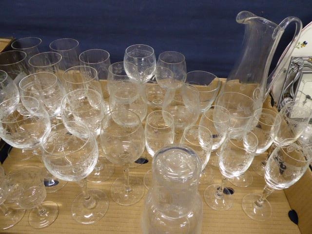 Etched glass - Chantilly lace, champagne flutes, lemonade set etc