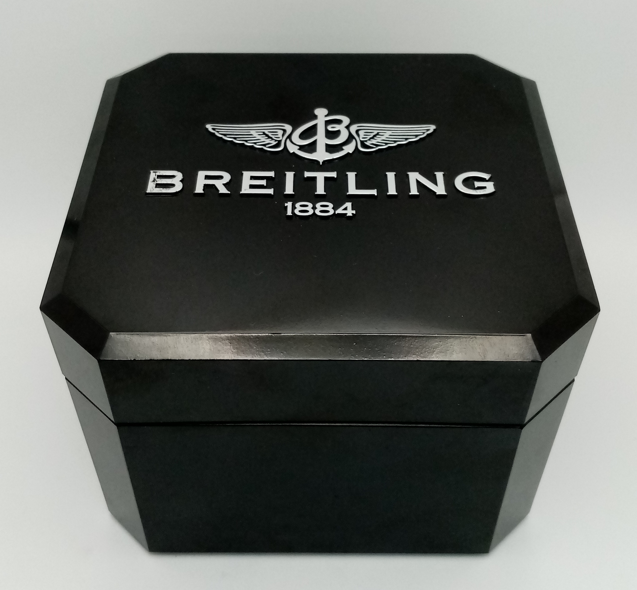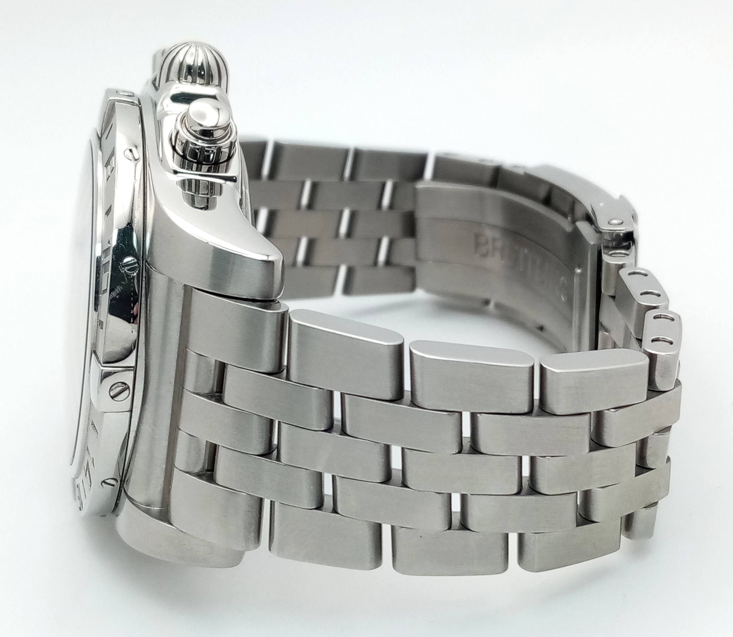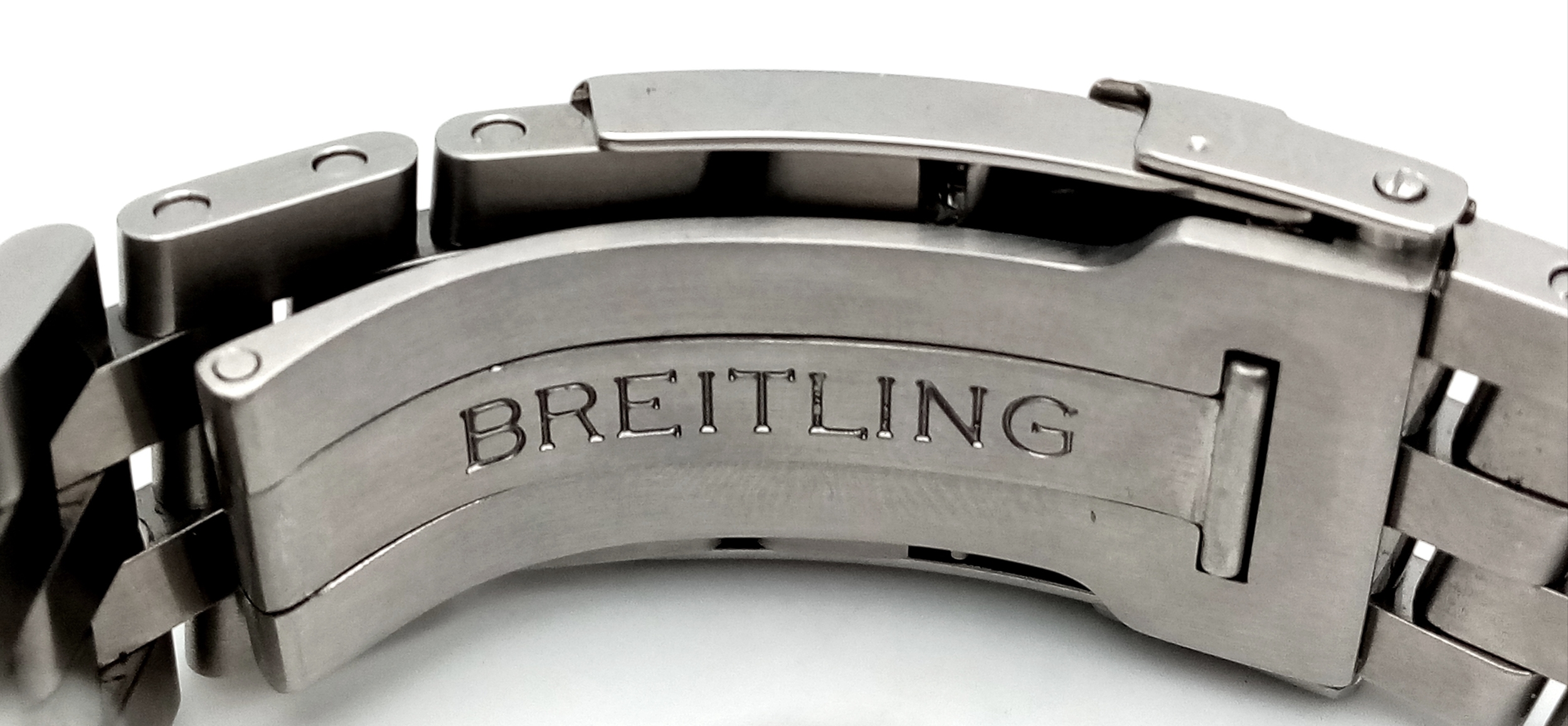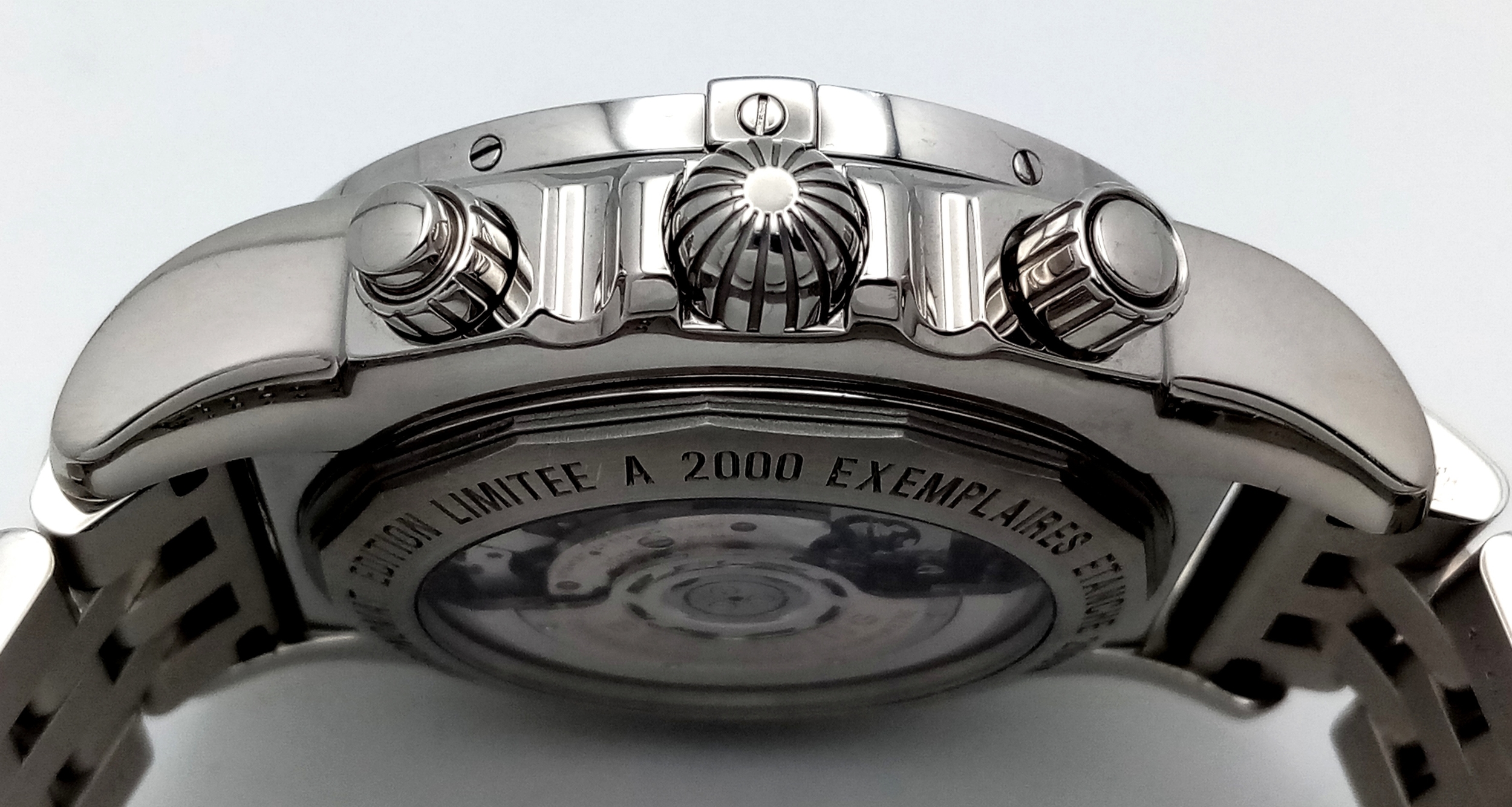 A Breitling Chronomat Limited Edition Automatic Gents Watch. Model AB0412. Stainless steel bracelet and case - 47mm. Black dial with three sub dials. Skeleton back. Comes with box and an array of papers. In good condition and working order. Ref: 09648