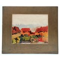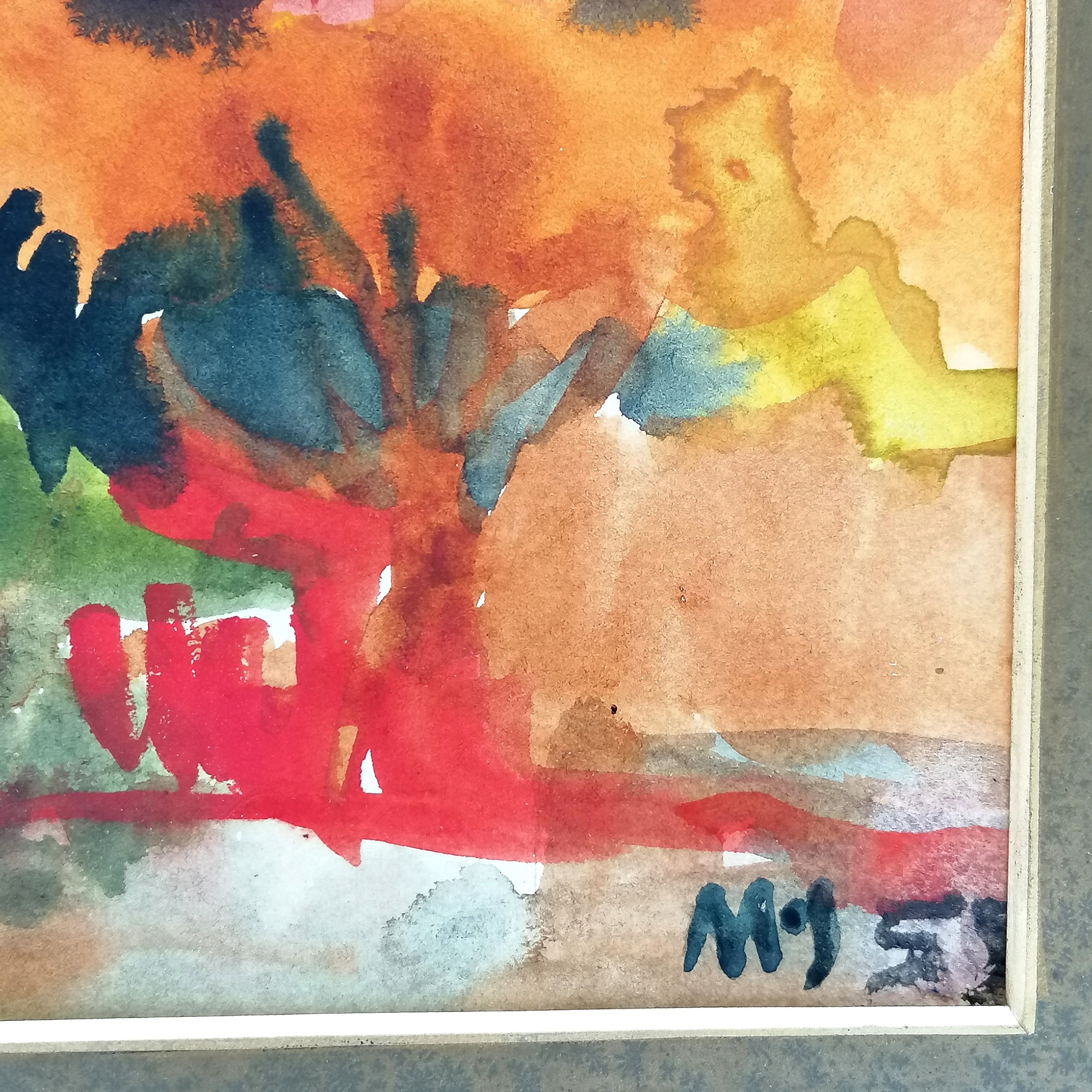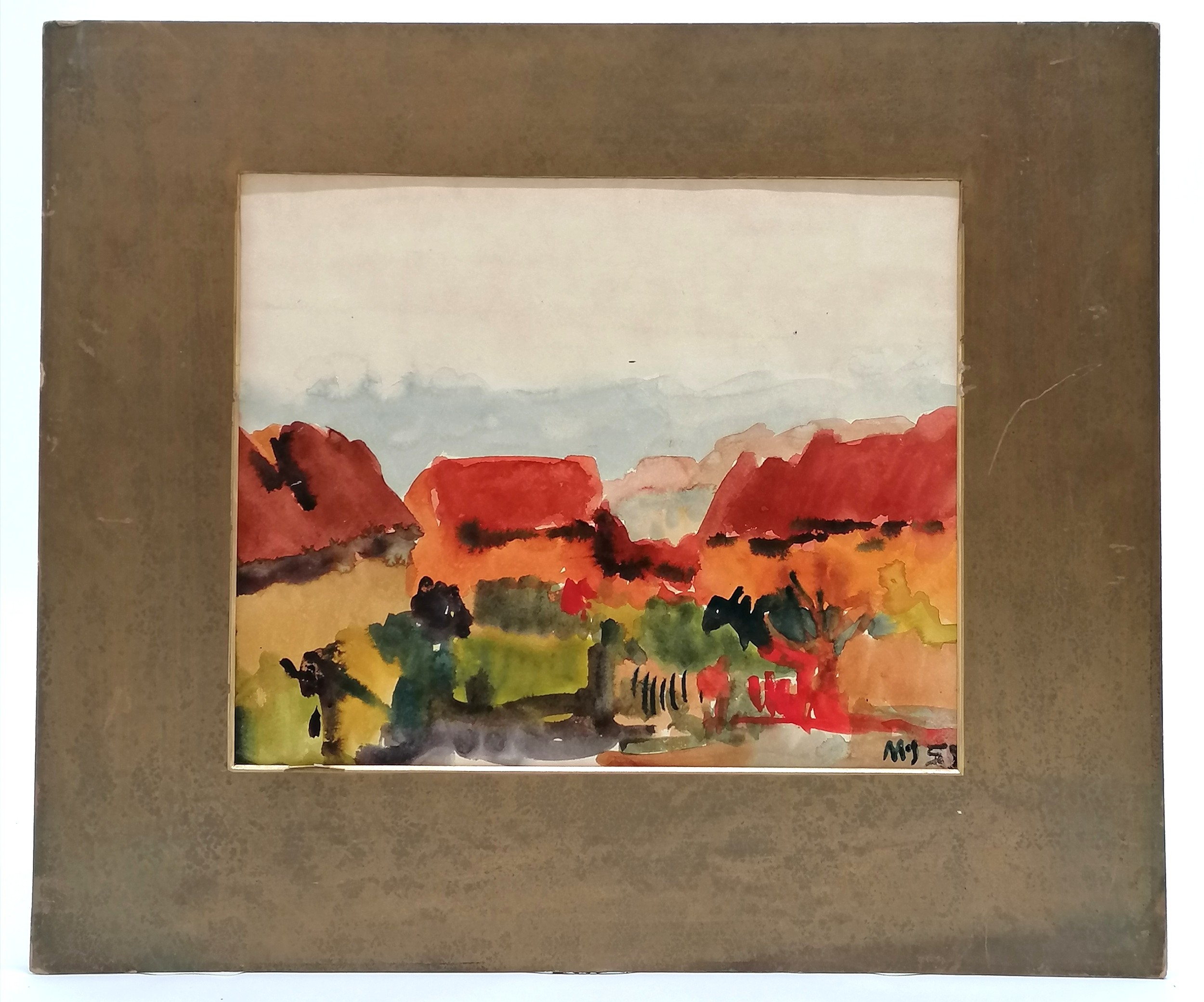 Mounted watercolour painting of some buildings signed MS 55 - 36.5cm x 43cm