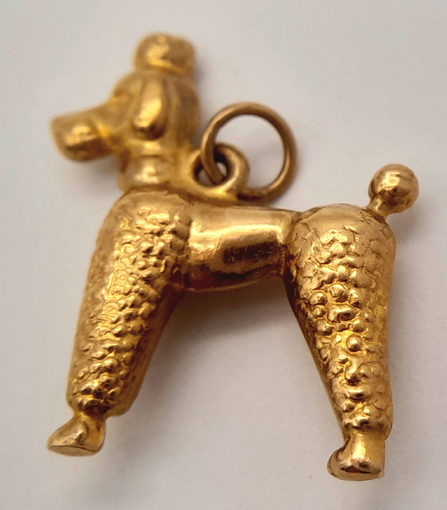 A 9K YELLOW GOLD POODLE DOG CHARM. 1.2G. SC6019.