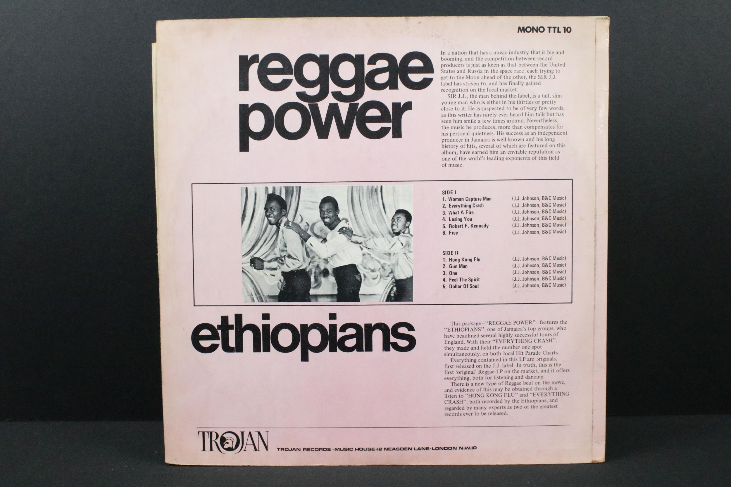 Vinyl - 4 original UK 1st pressing reggae albums to include: The Ethiopians – Reggae Power (Trojan Records – TTL 10, 1969) VG+, Owen Gray – Reggae With Soul (Trojan Records - TTL 24 1969) EX-, Byron Lee And The Dragonaires – Reggae Blast Off (Trojan Records -TBL 110 1970) VG+ / VG++, Byron Lee – Jump Up (Atlantic Records - 587018, 1966 mono plum labels) EX / VG+