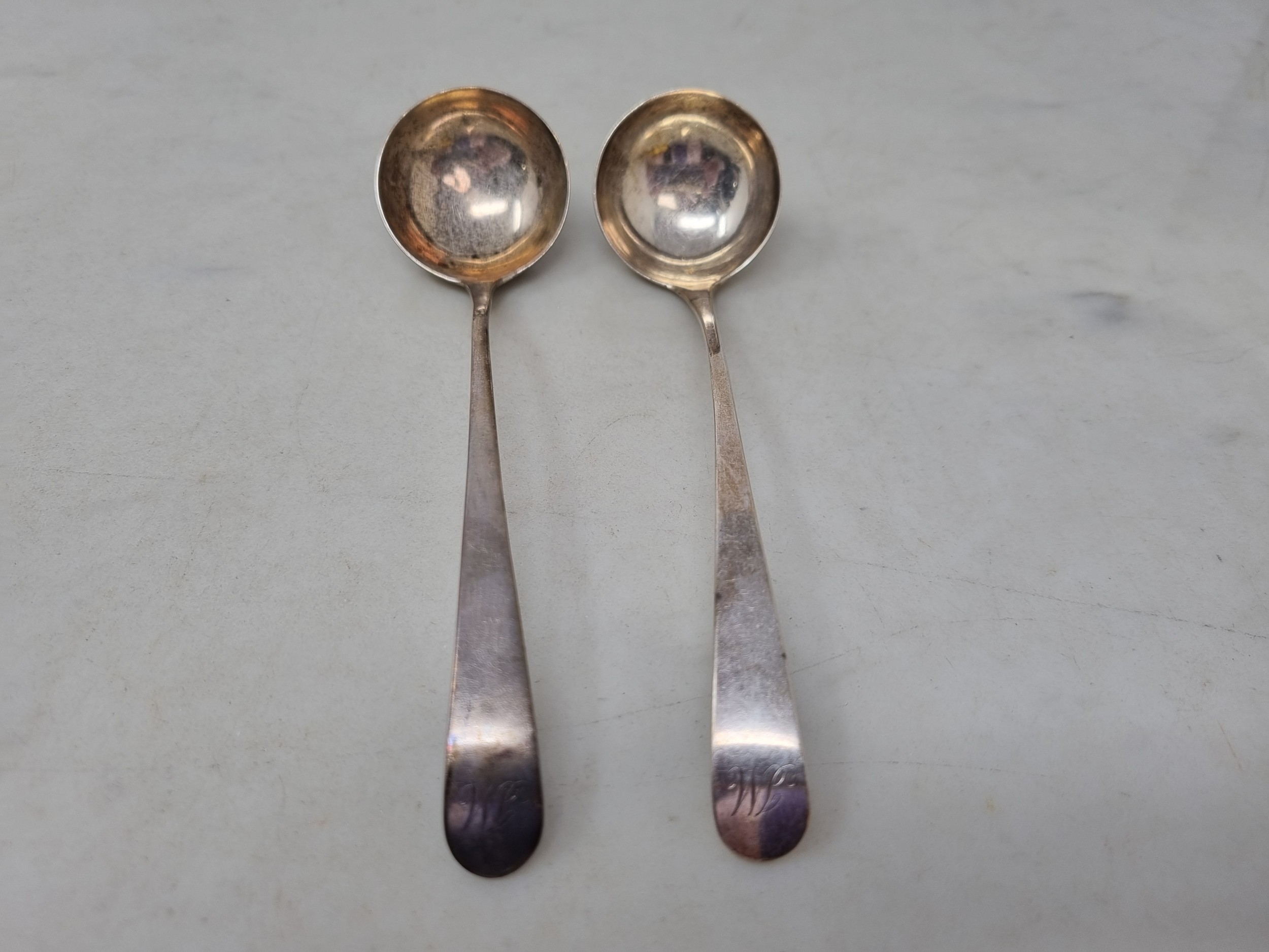 A pair of Georgian Scottish silver Ladles old english pattern engraved initials, Edinburgh circa 1790