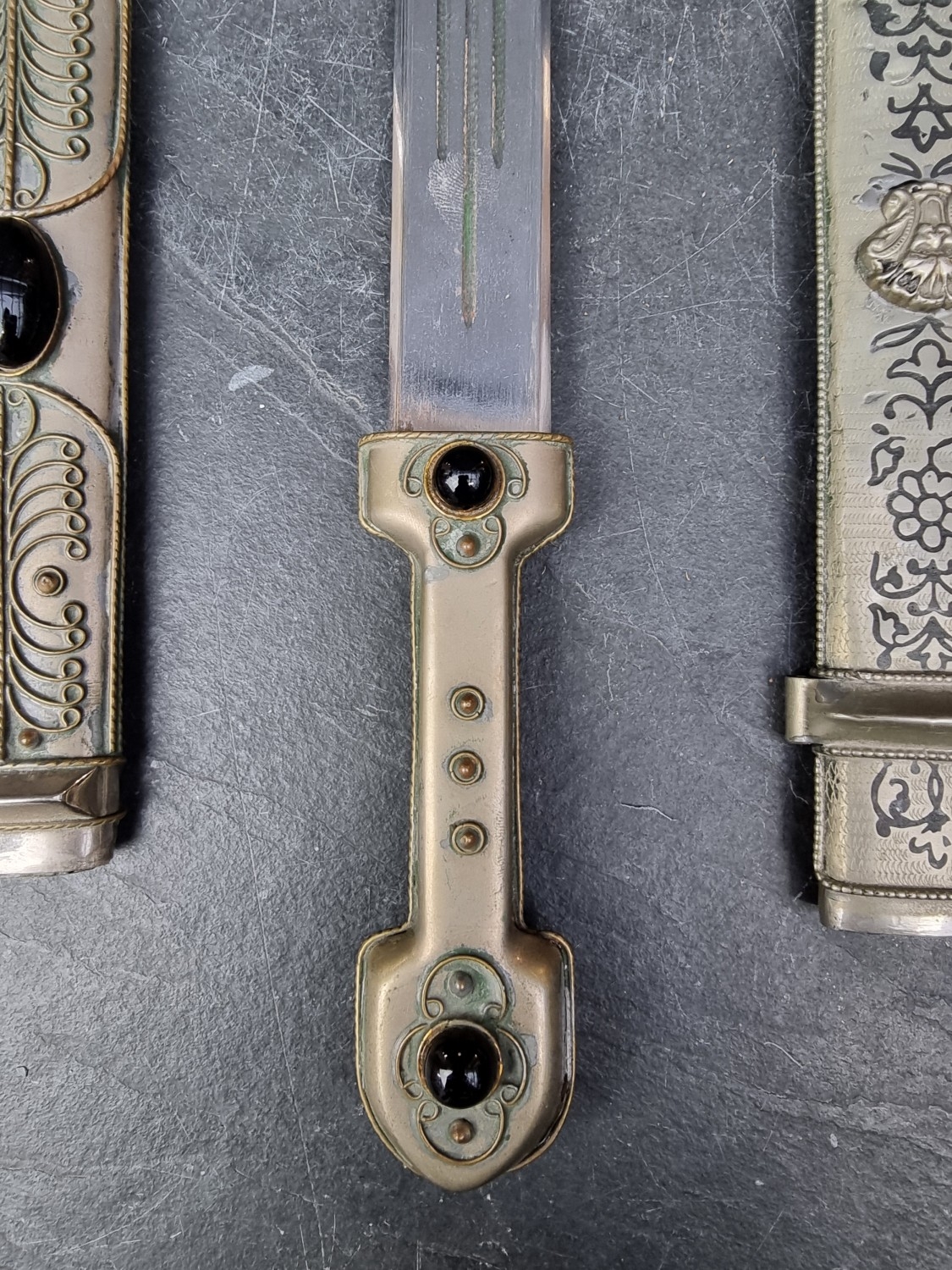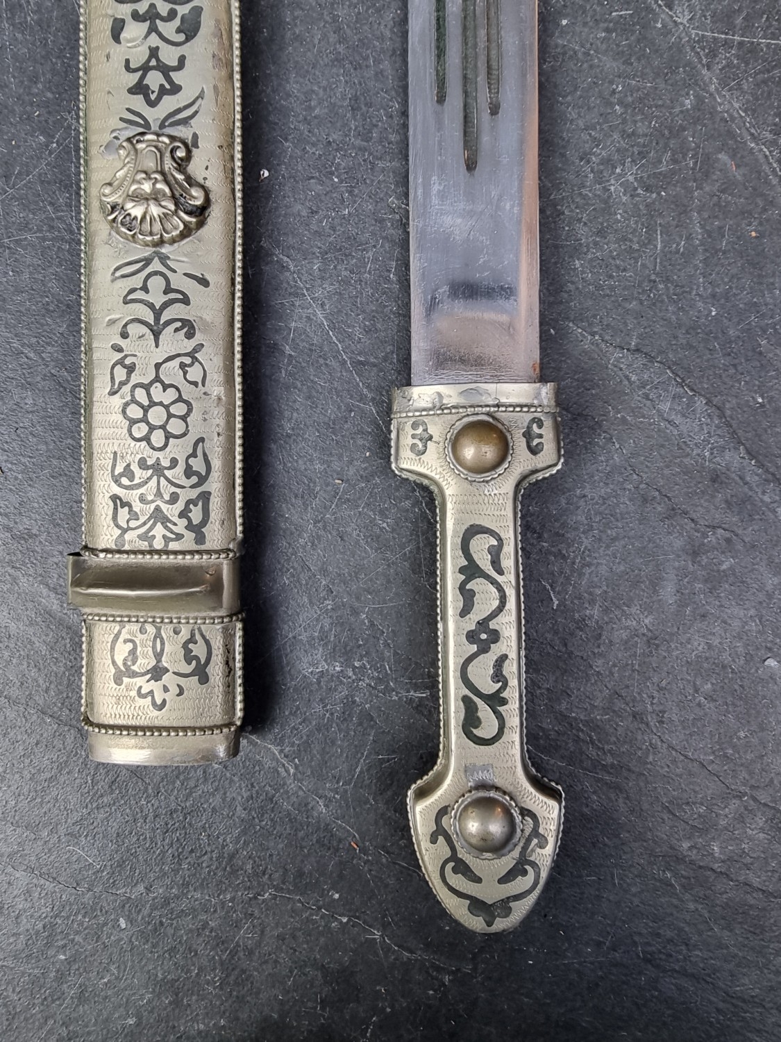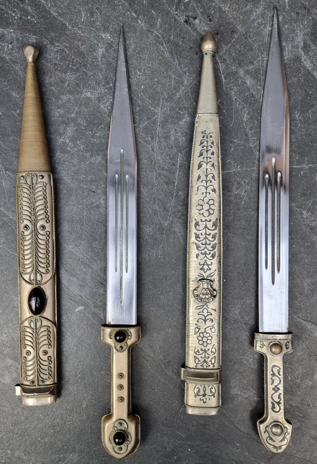 A Caucasian kindjal dagger and sheath, with 33cm blade, overall length 45cm; together with another similar example. (2)