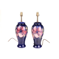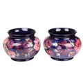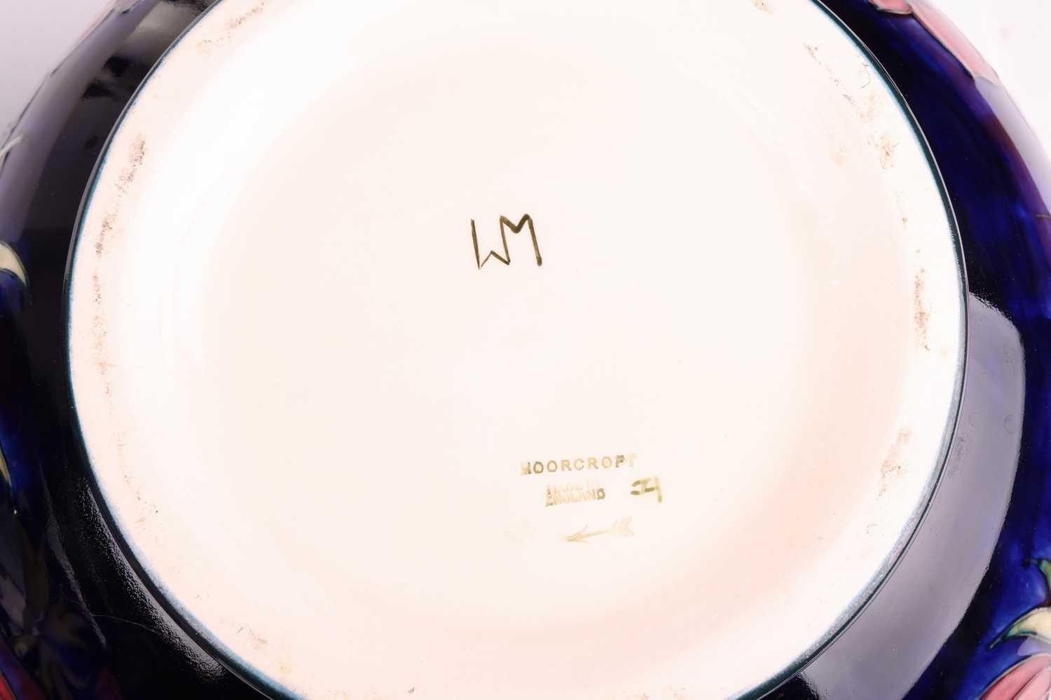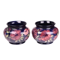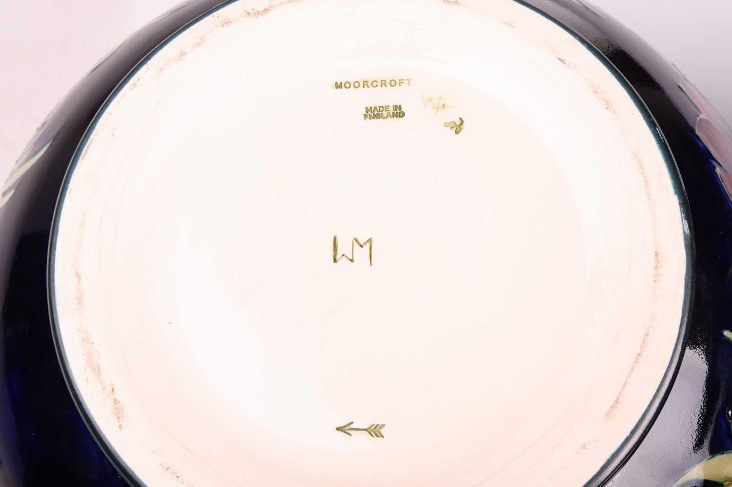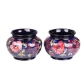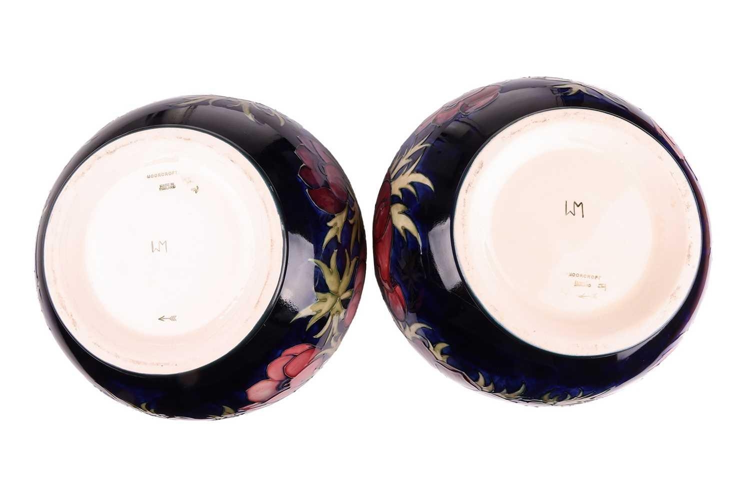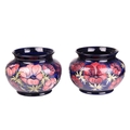 A pair of Walter Moorcroft large jardinieres, in the Anenome pattern, tube-lined decoration on a dark blue ground, impressed and painted marks to base, 21 cm high x 24 cm wide. Qty: (2)