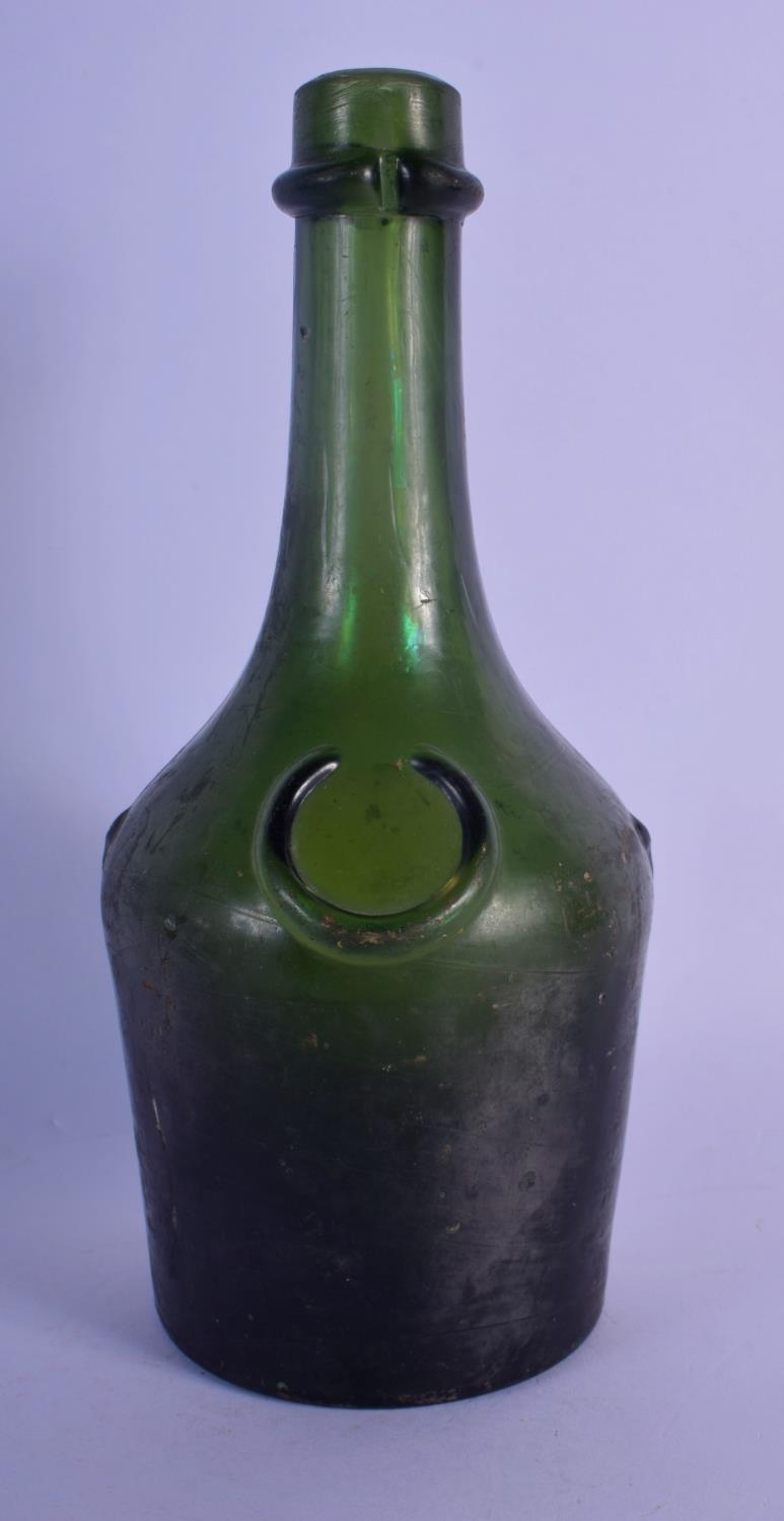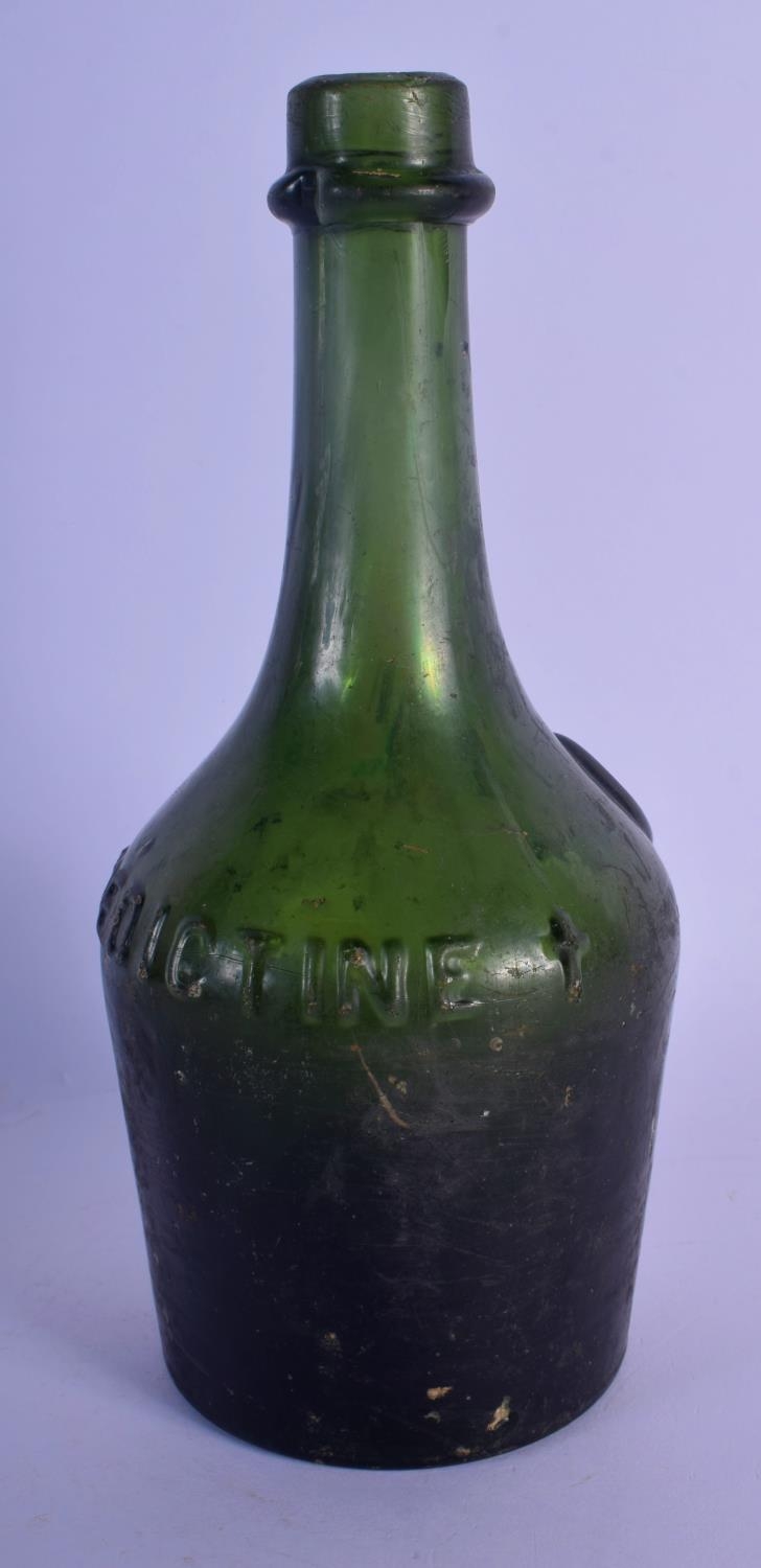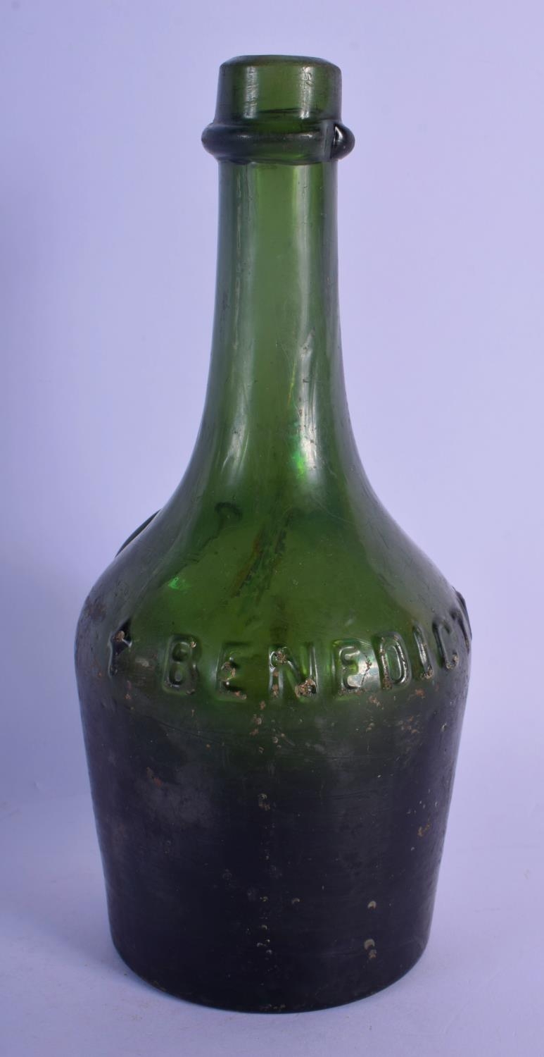 AN EARLY BENEDICTINE GREEN GLASS BOTTLE. 24 cm high.