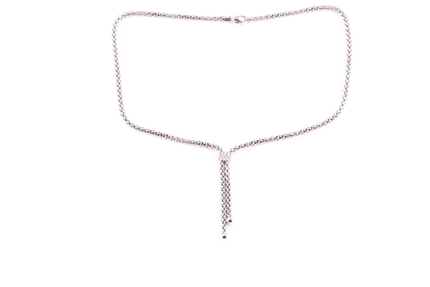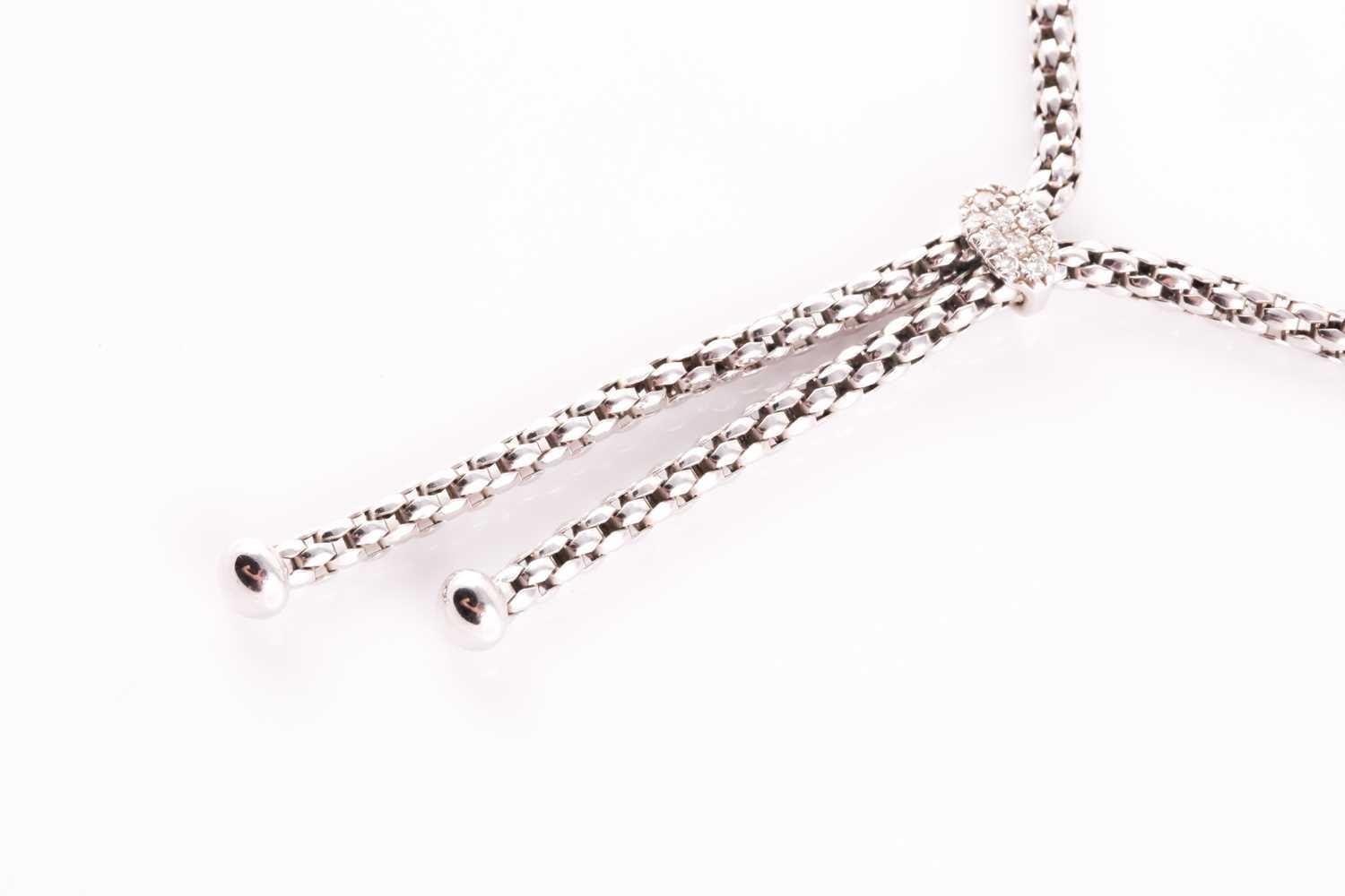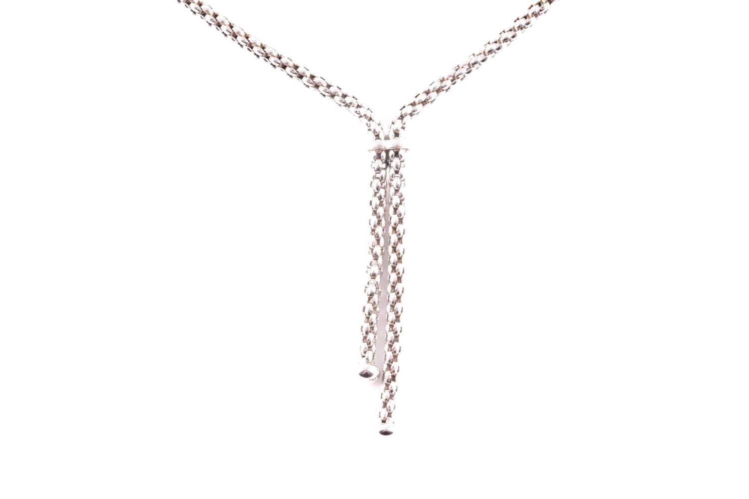 Fope, Italy. An 18ct white gold chain necklace, the lavaliere style with two drops with rounded terminals, fastened with a diamond-set link, approximately 43 cm long.