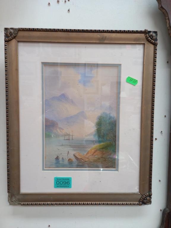 R. Calvent "Seaside View" and T.B. Fenchliffe "Lakescene" dated 1917 (2 Watercolours)