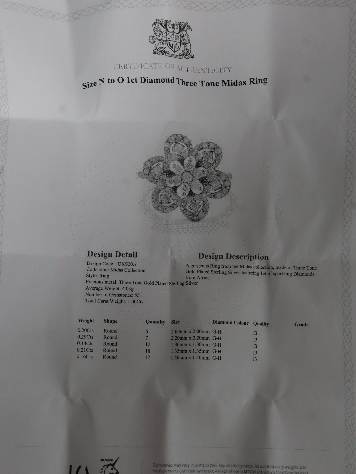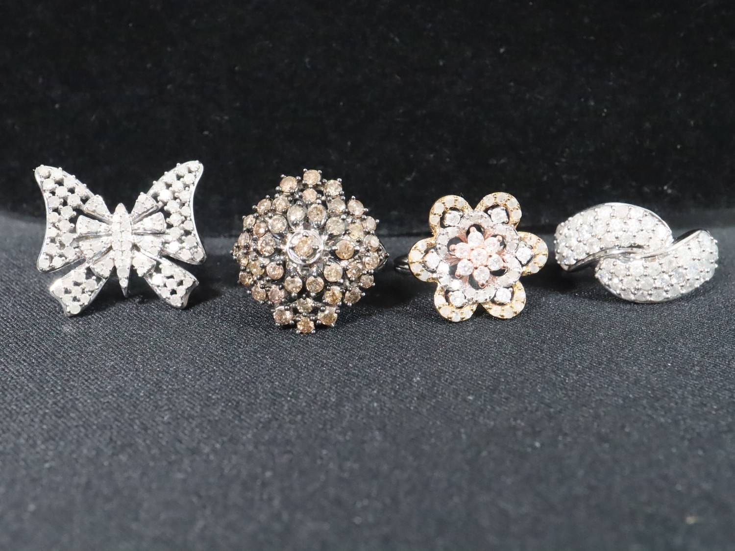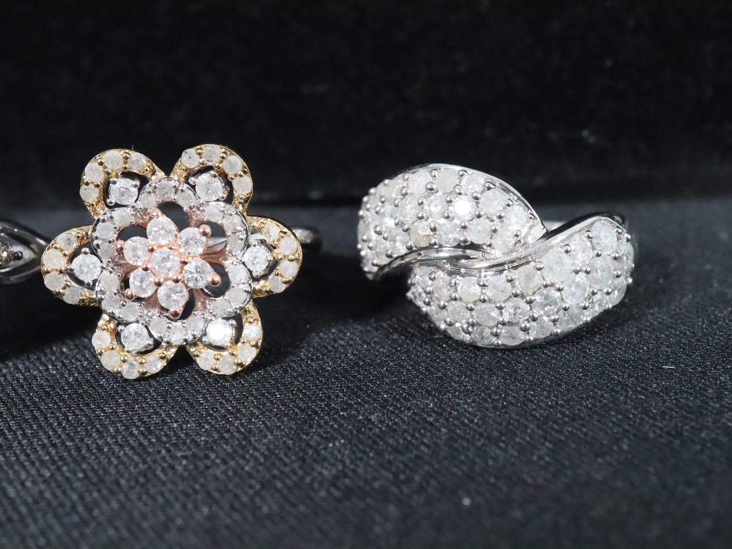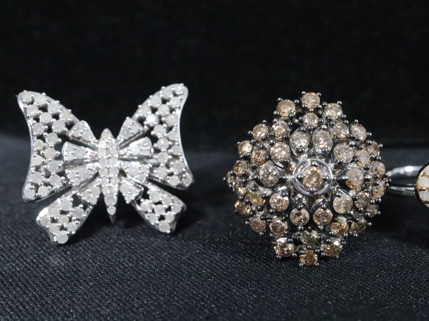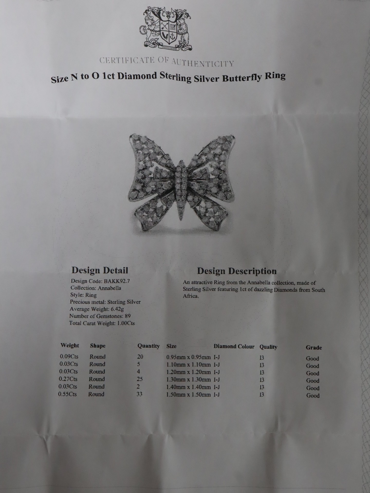 1ct Diamond Sterling Silver Butterfly Ring, 2ct Champagne Diamond Sterling Silver Ring, 1ct Diamond Three Tone Gold Plated Sterling Silver Ring, 2ct Diamond Sterling Ring Size N to O