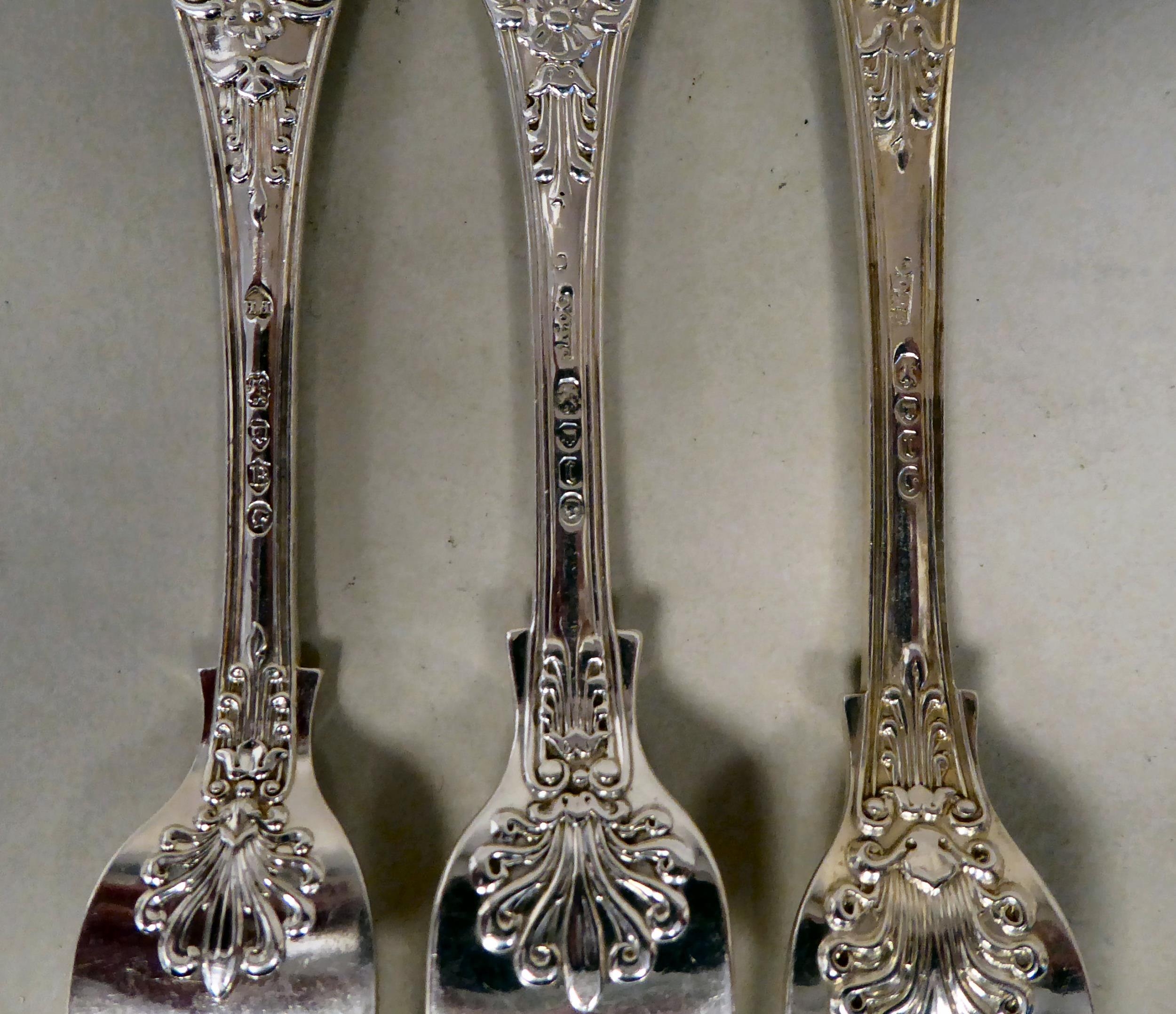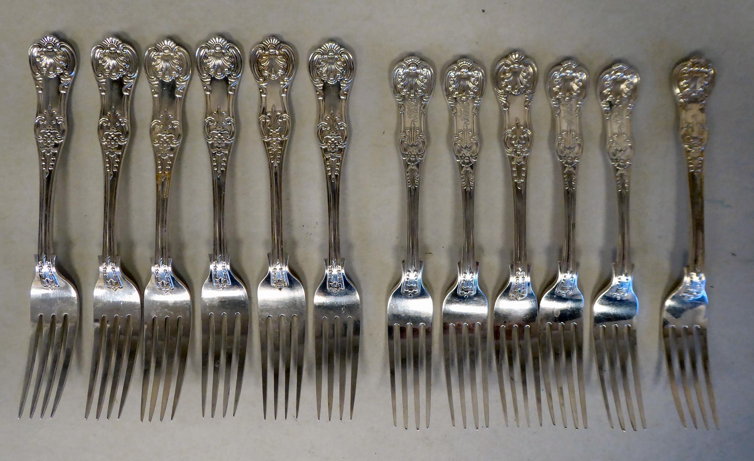 A matched set of twelve silver Queens pattern dessert forks Victorian & later mixed marks (approx. weight 748 grams)
