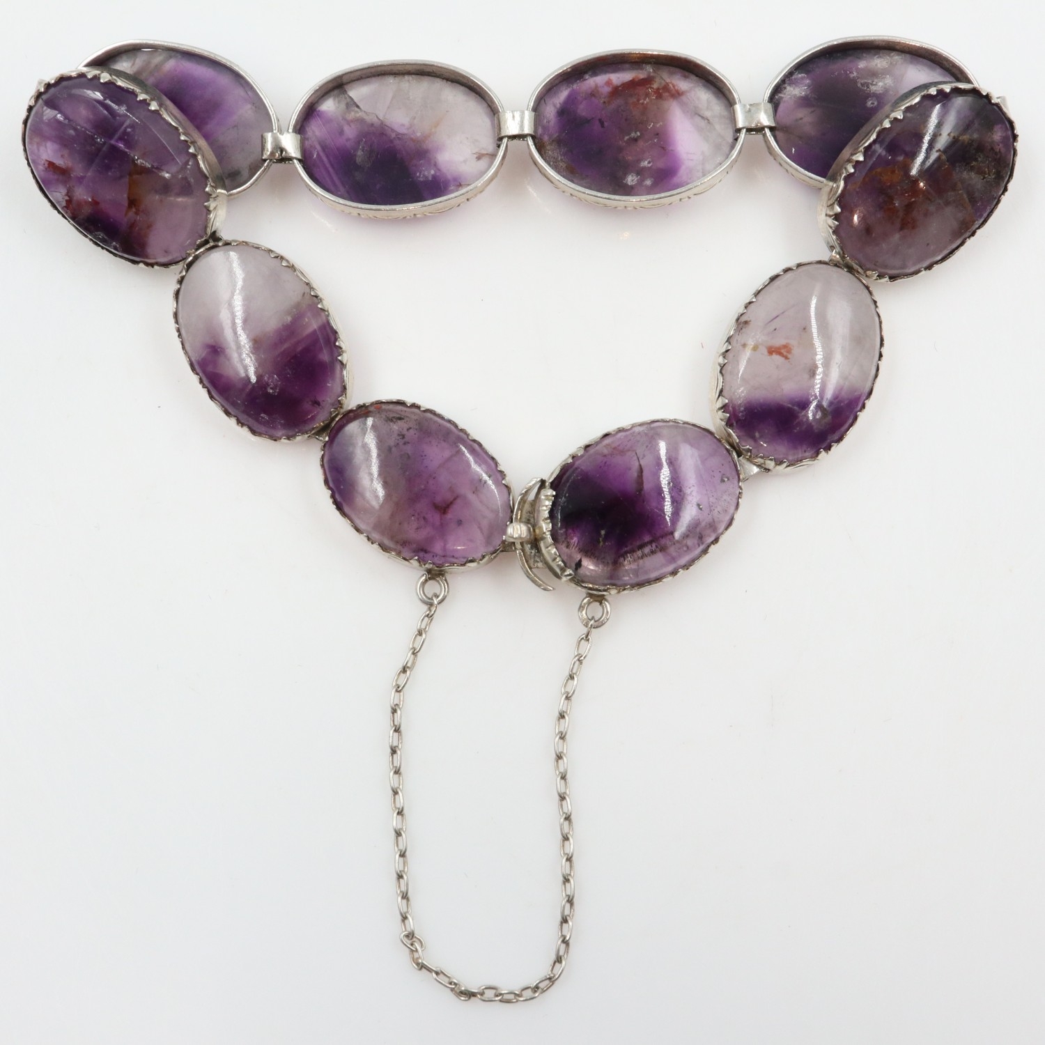 Blue John and silver bracelet with safety chain, L; 14 cm. UK P&P Group 0 (£7+VAT for the first lot and £1+VAT for subsequent lots)