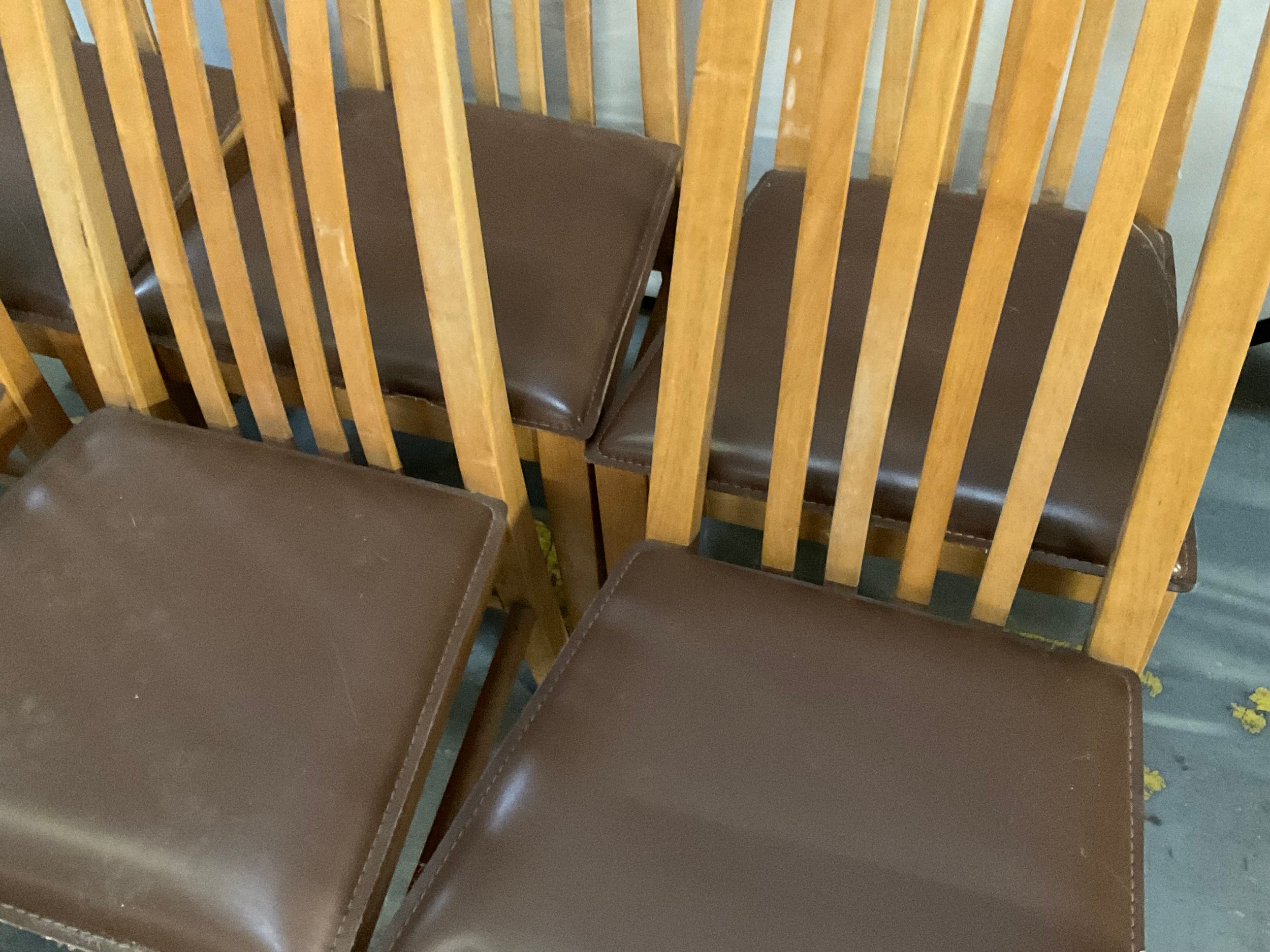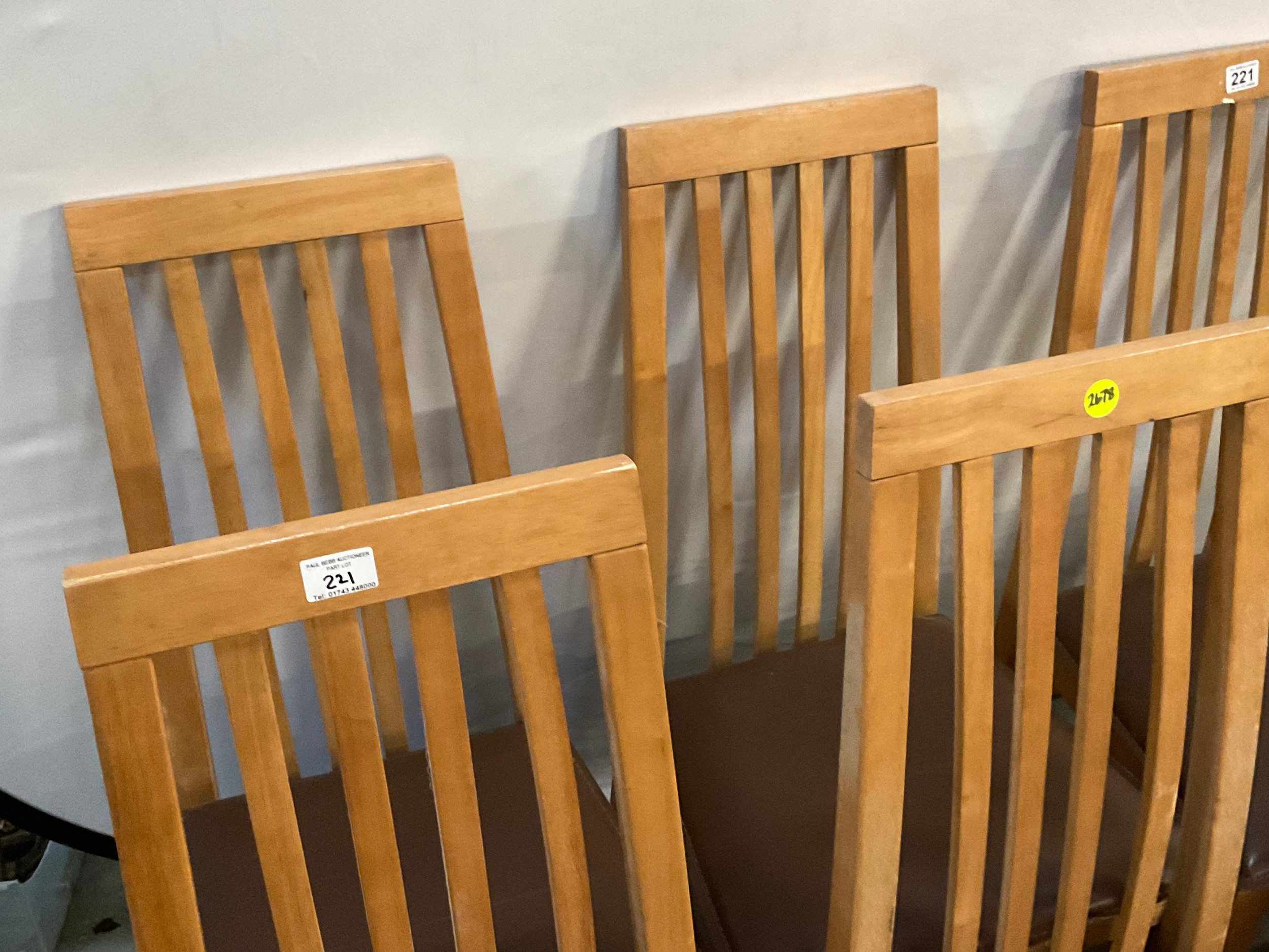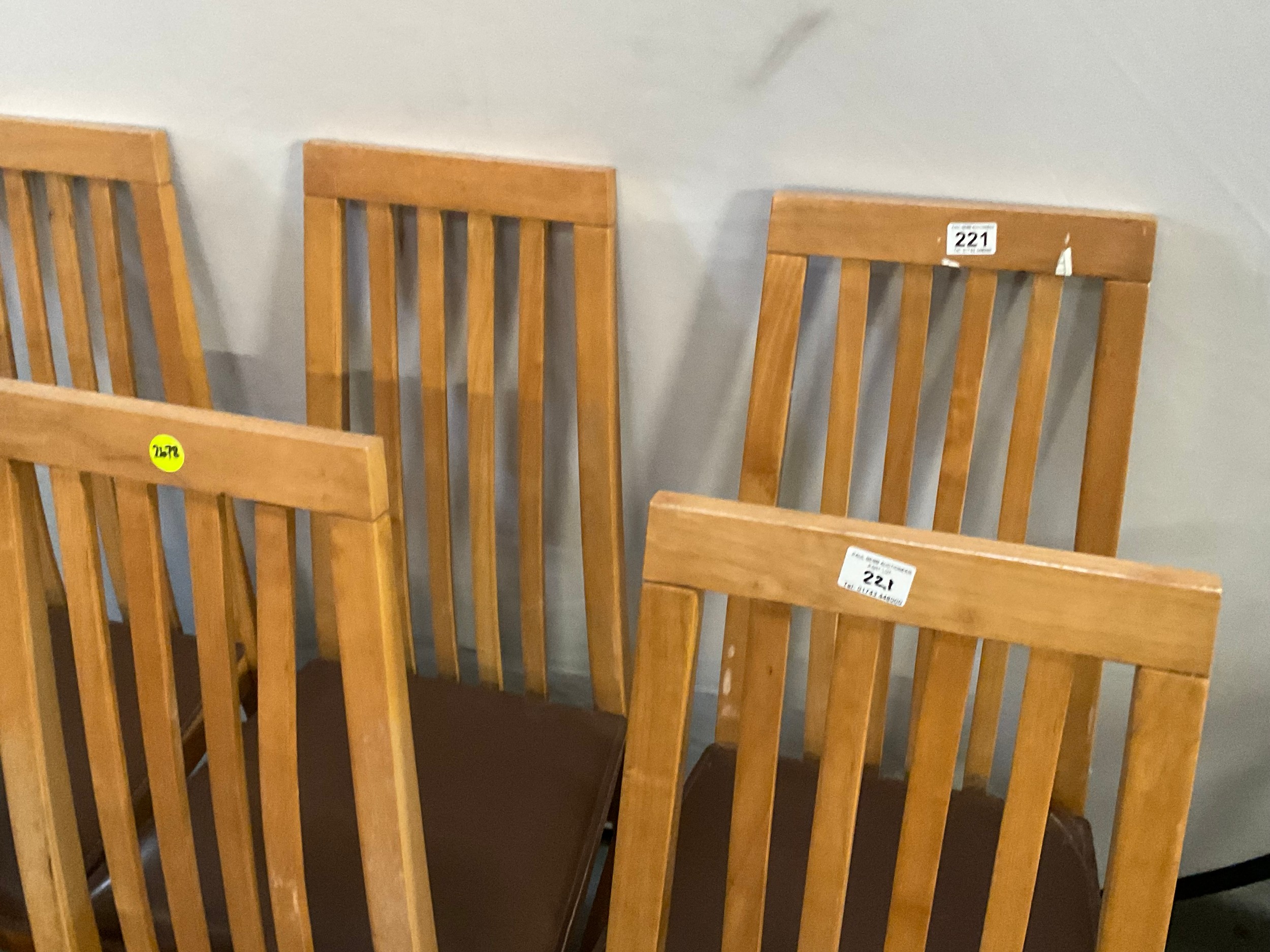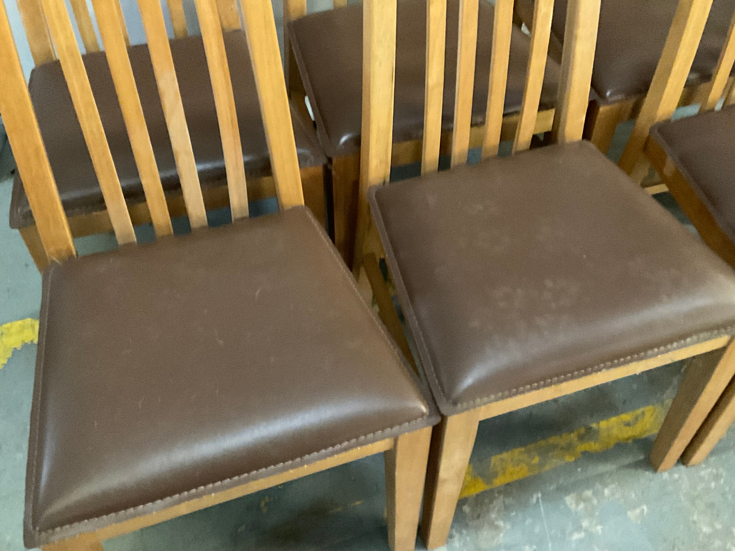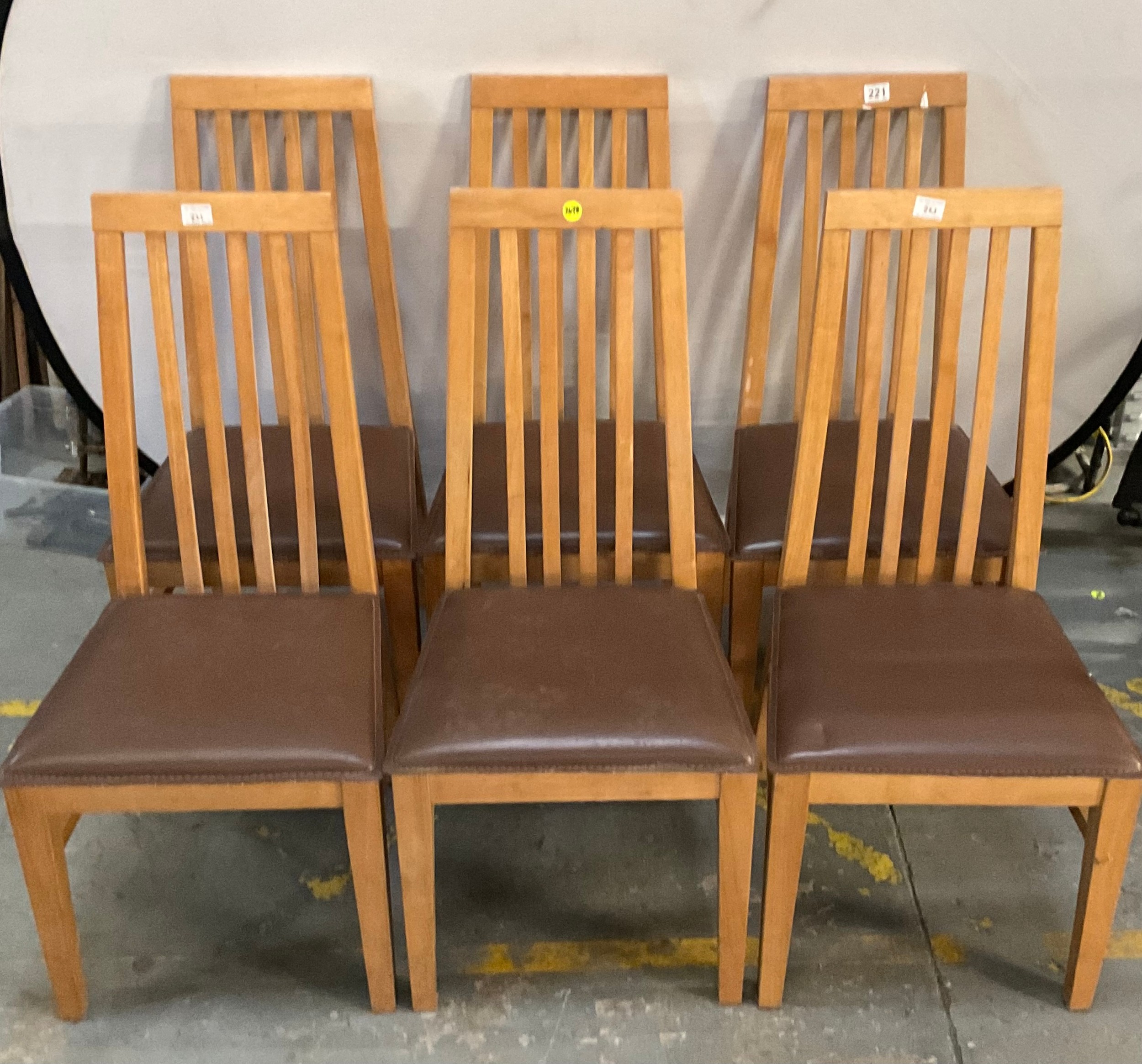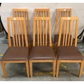 SET OF 6 MODERN HIGH BACK OAK DINING CHAIRS WITH UPHOLSTERED SEATS