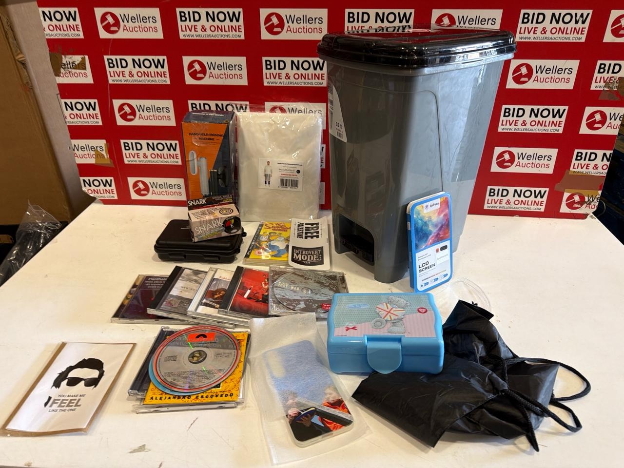 BAG OF ASSORTED BRIC-A-BRAC INCL. BIN & MIXED CDS