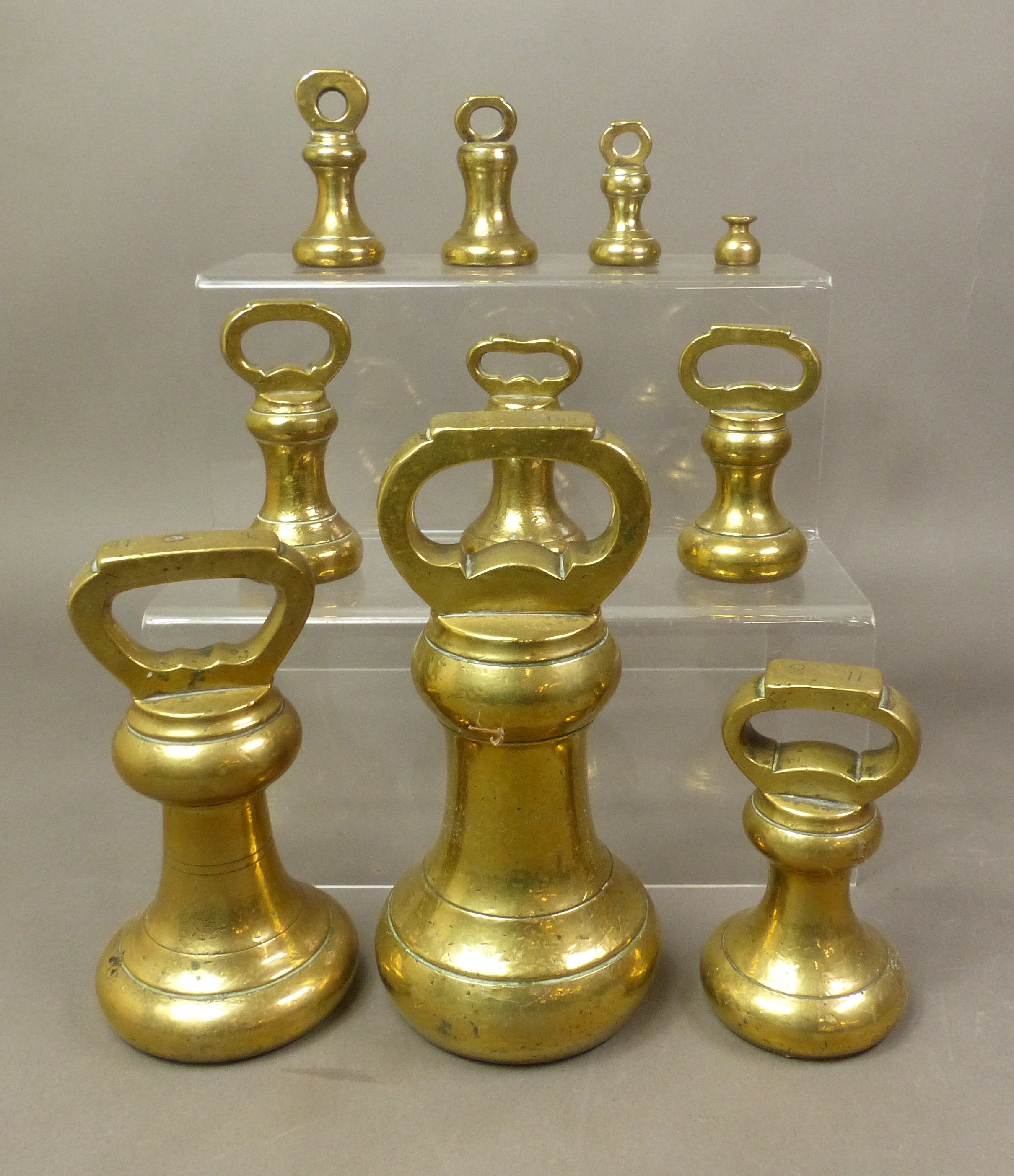 Graduated set of brass weights, 1oz - 7lb (10),