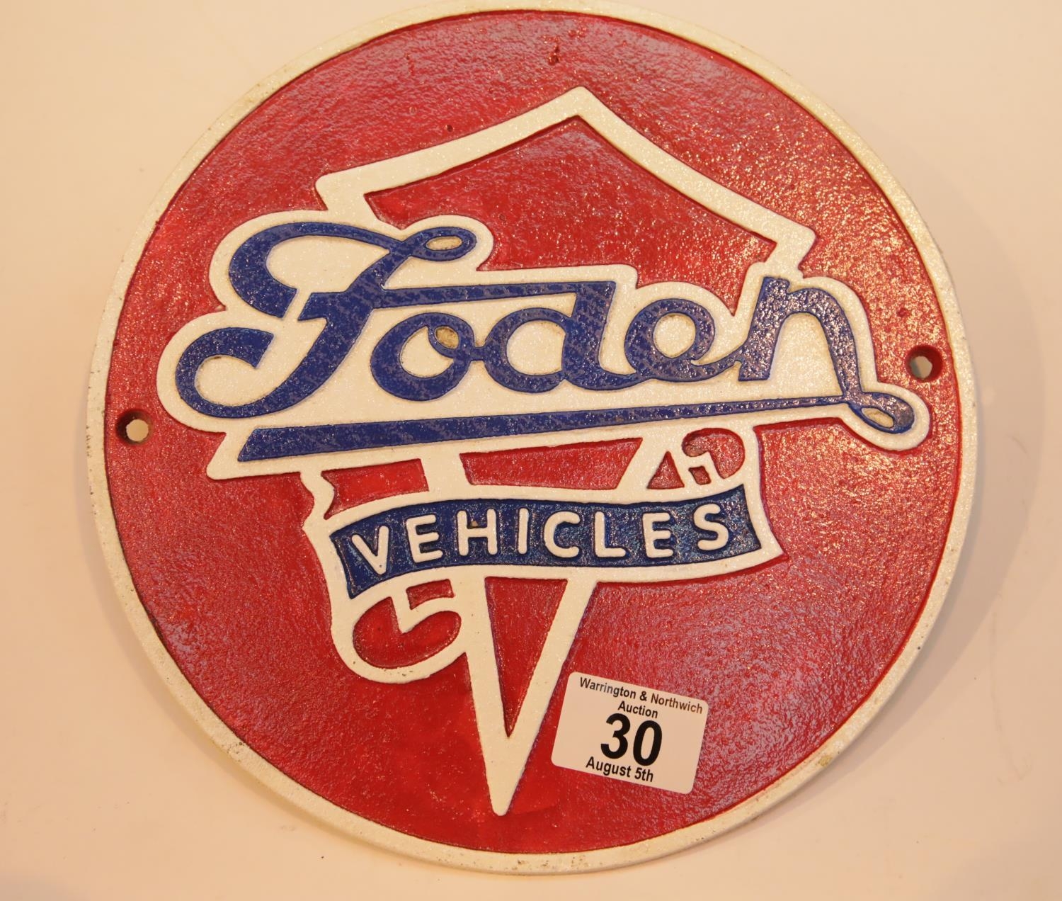 Cast iron Foden circular sign, D: 24 cm. P&P Group 2 (£18+VAT for the first lot and £2+VAT for subsequent lots)