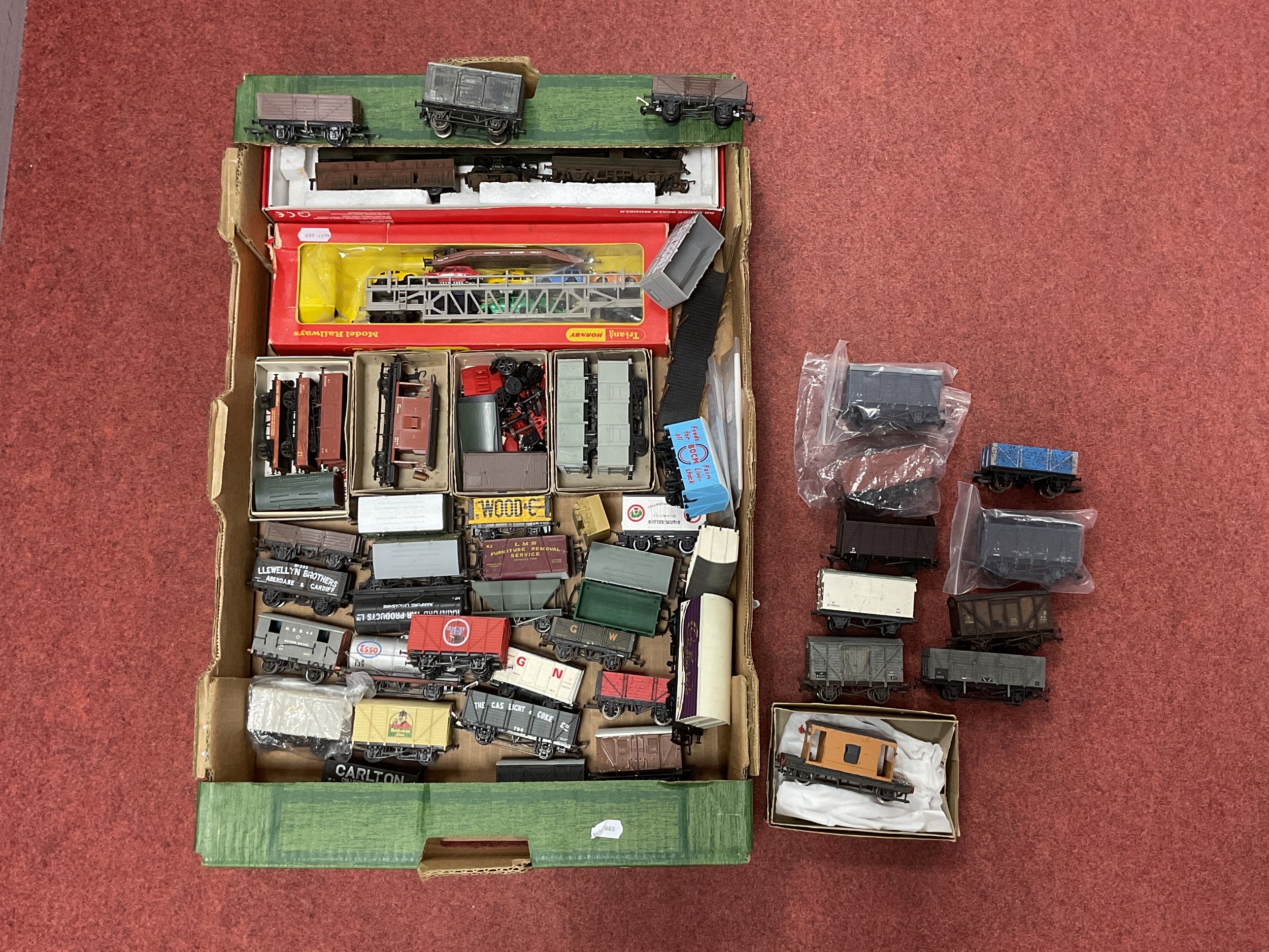 Forty Five Items of 'OO' Gauge/4mm Unboxed Freight Rolling Stock, by Hornby, Dapol, Ratio Kit Built and others, to include a Hornby car transporter, breakdown crane, box vans, open wagons, both B.R and Private Owner, etc, overall condition playworn to good.