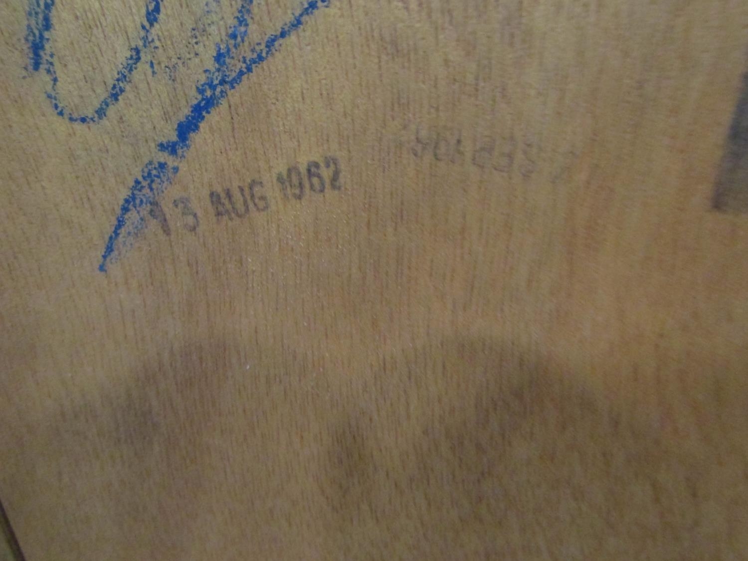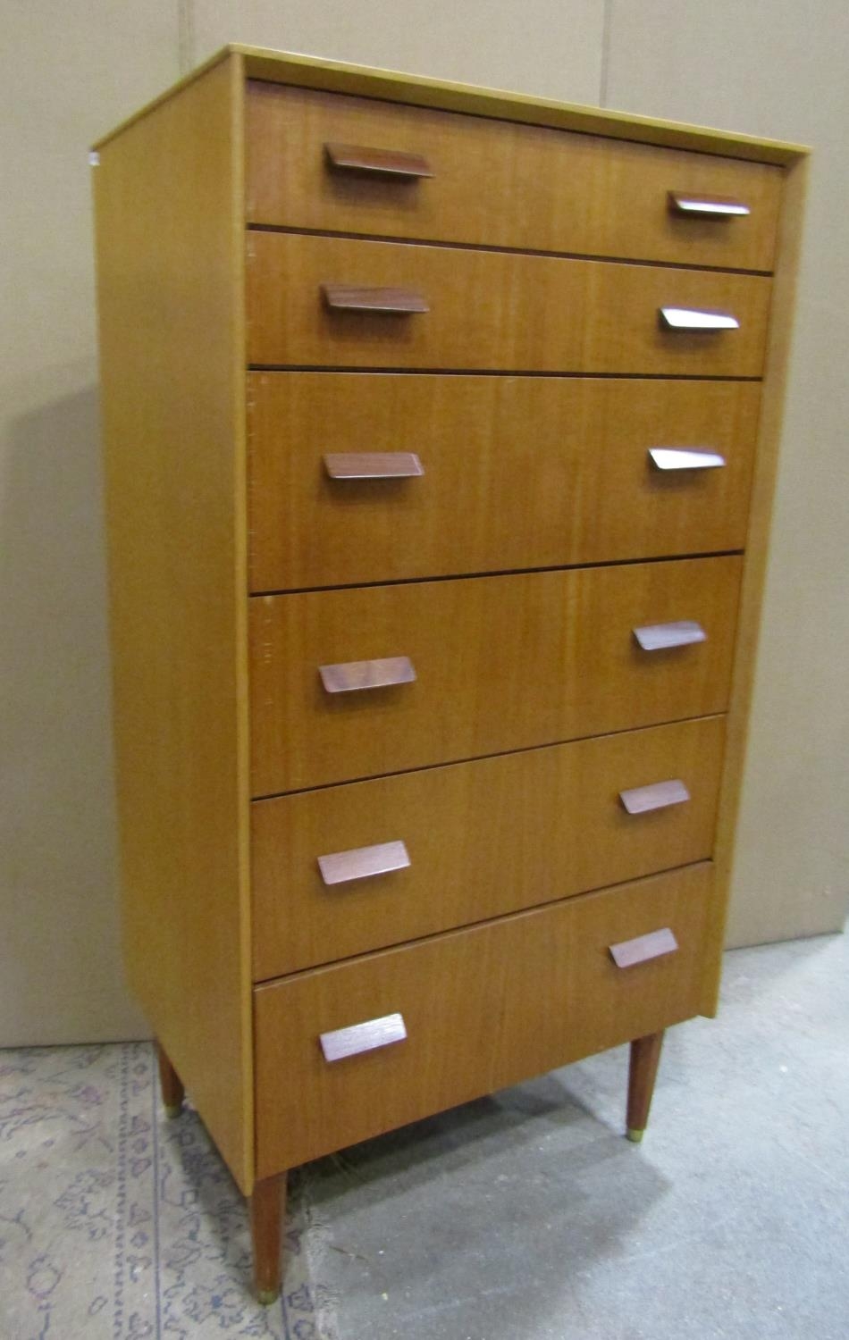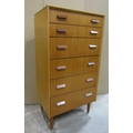 1960s teak and oak tower of six graduated drawers on chamfered supports, 117cm high x 60cm wide