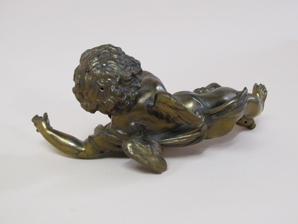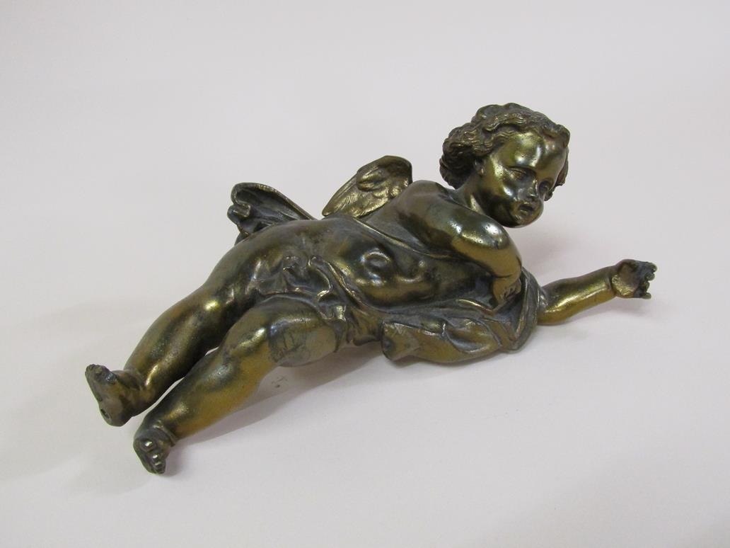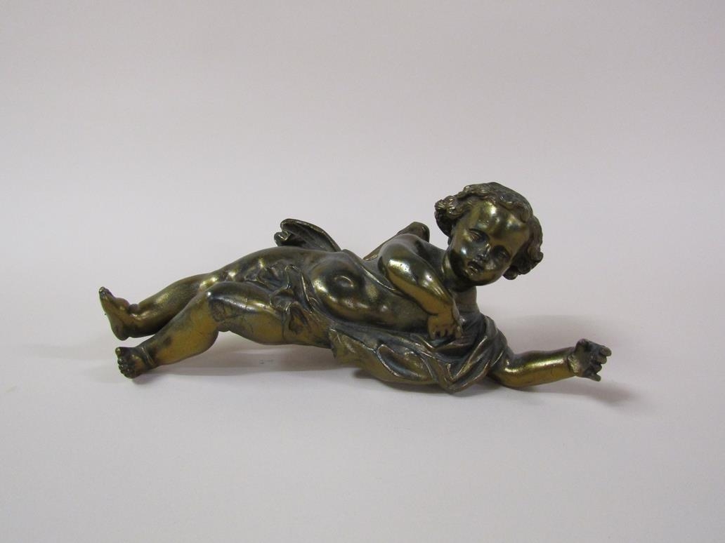 A gilt metal figure of a cherub, 28cm l.