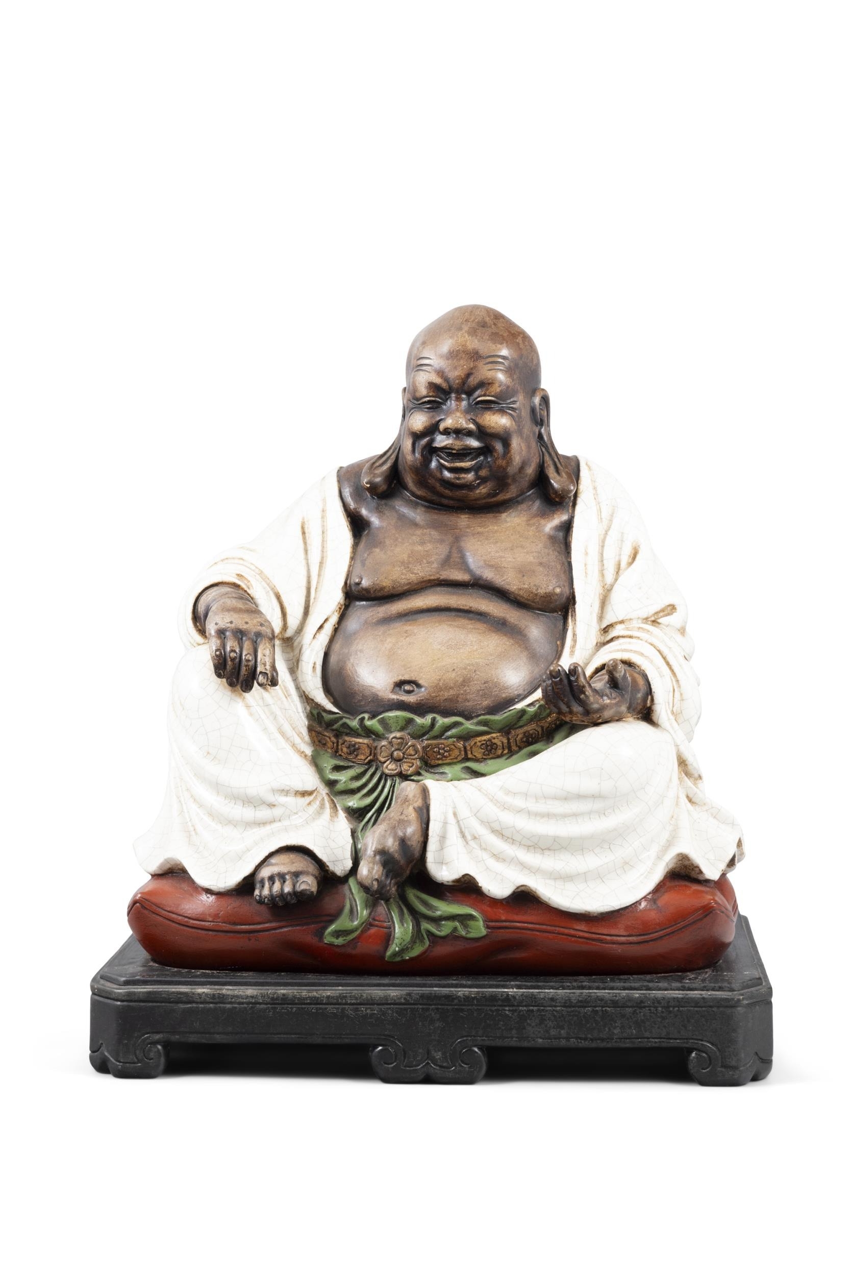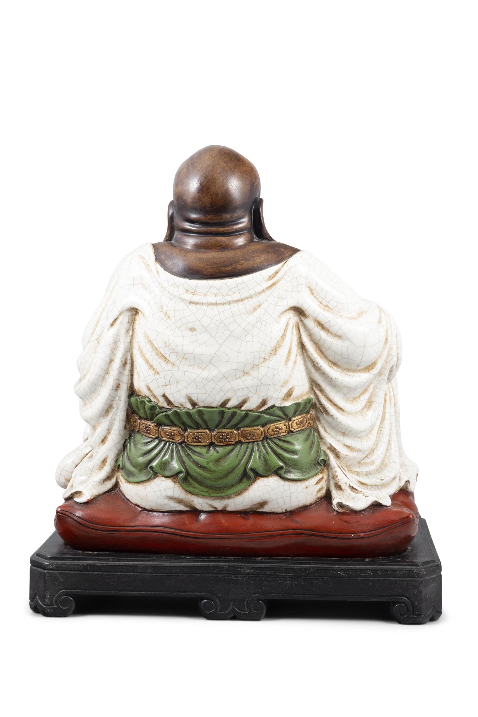 A BIG ENAMELLED WARE SITTING MILEFO WITH WOODEN STAND 20?? ???????? China, 20th century Size: 40 x 35cm
