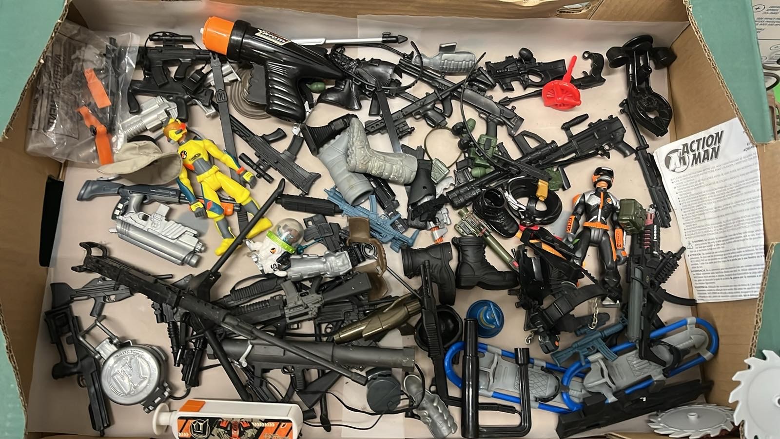 LARGE QTY OF ACTION MAN AND OTHER MAKE ACTION FIGURES WEAPON ACCESSORIES