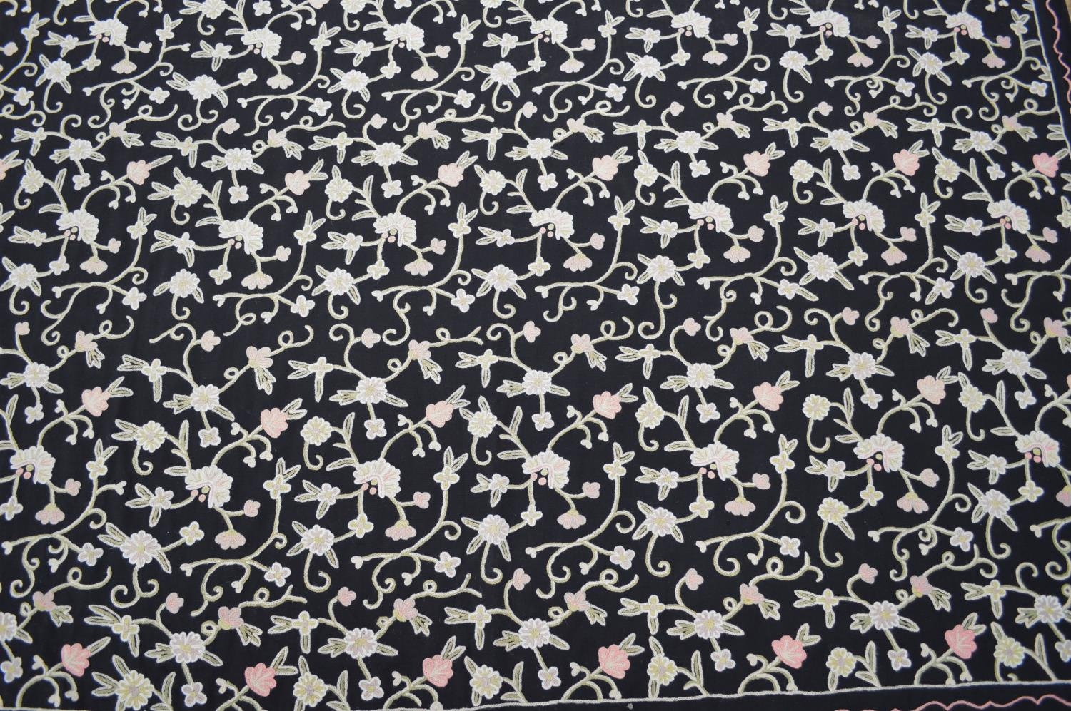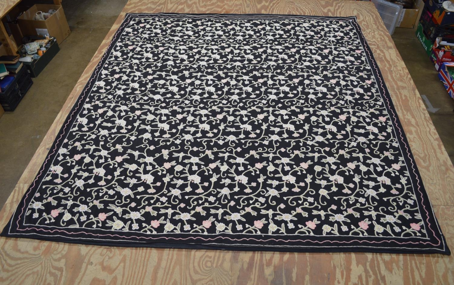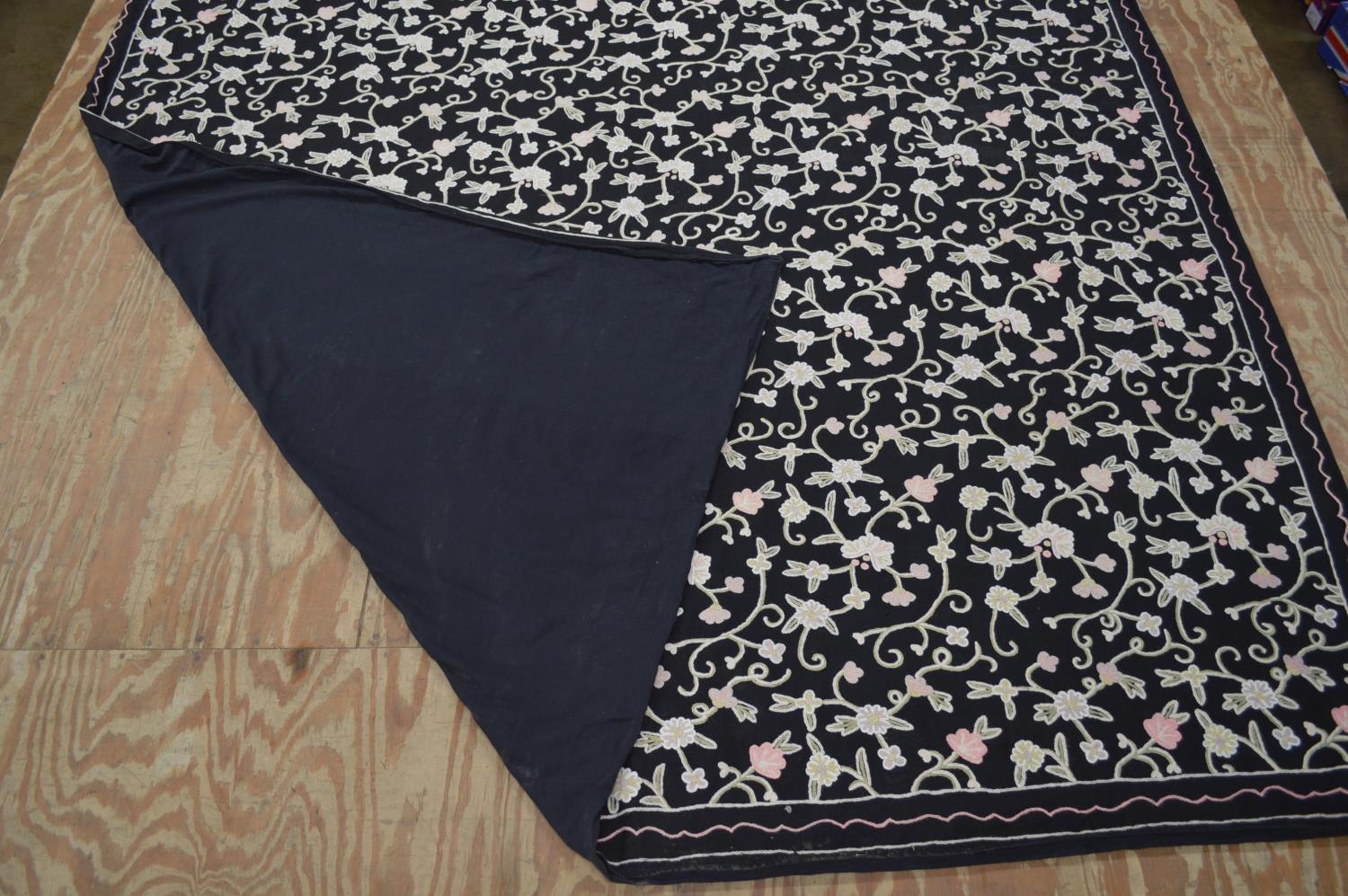 Large floral needlework on a black ground - approx 213cm x 234cm