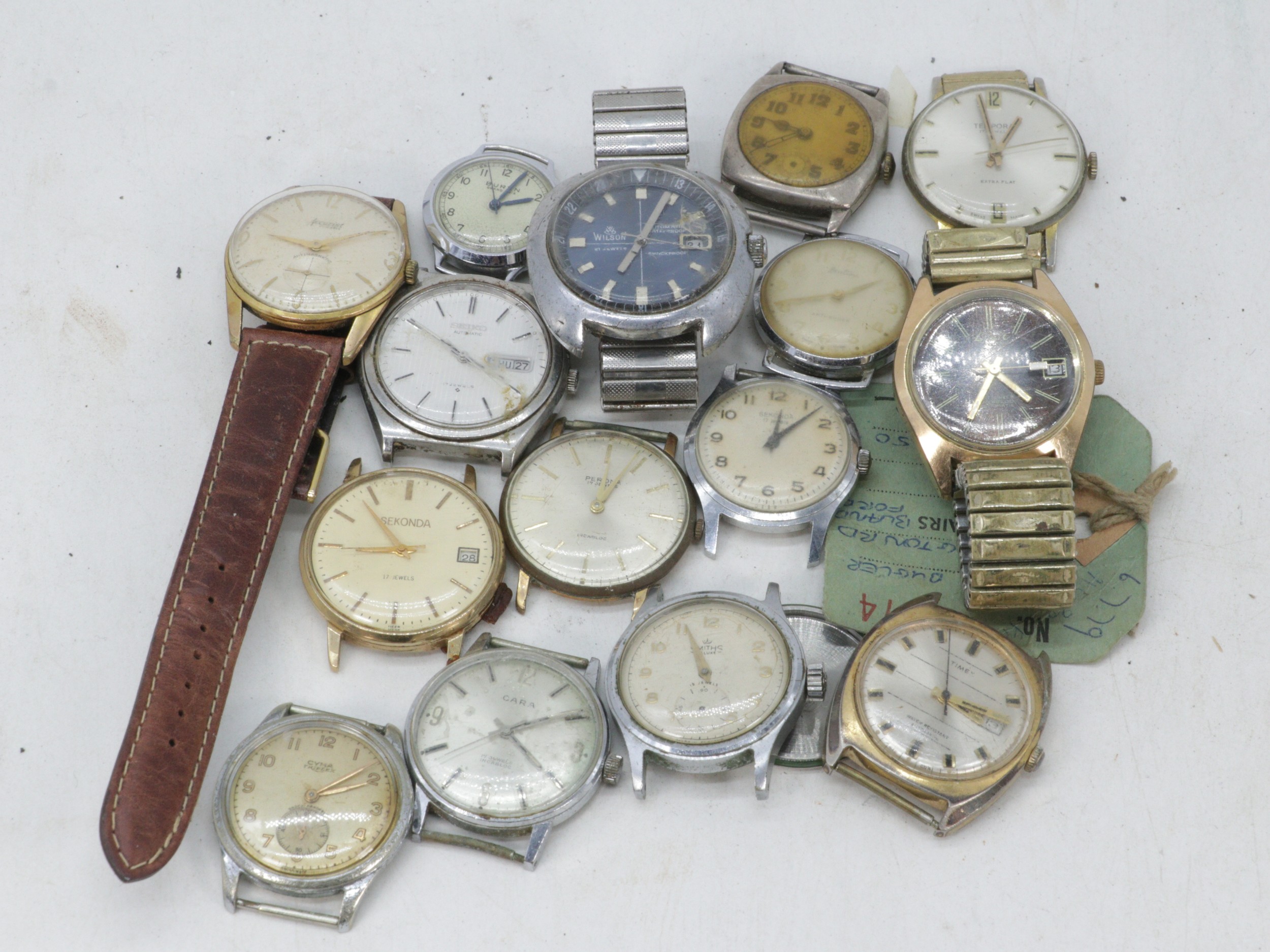 Selection of vintage wristwatches including Wilson, Seiko, and others