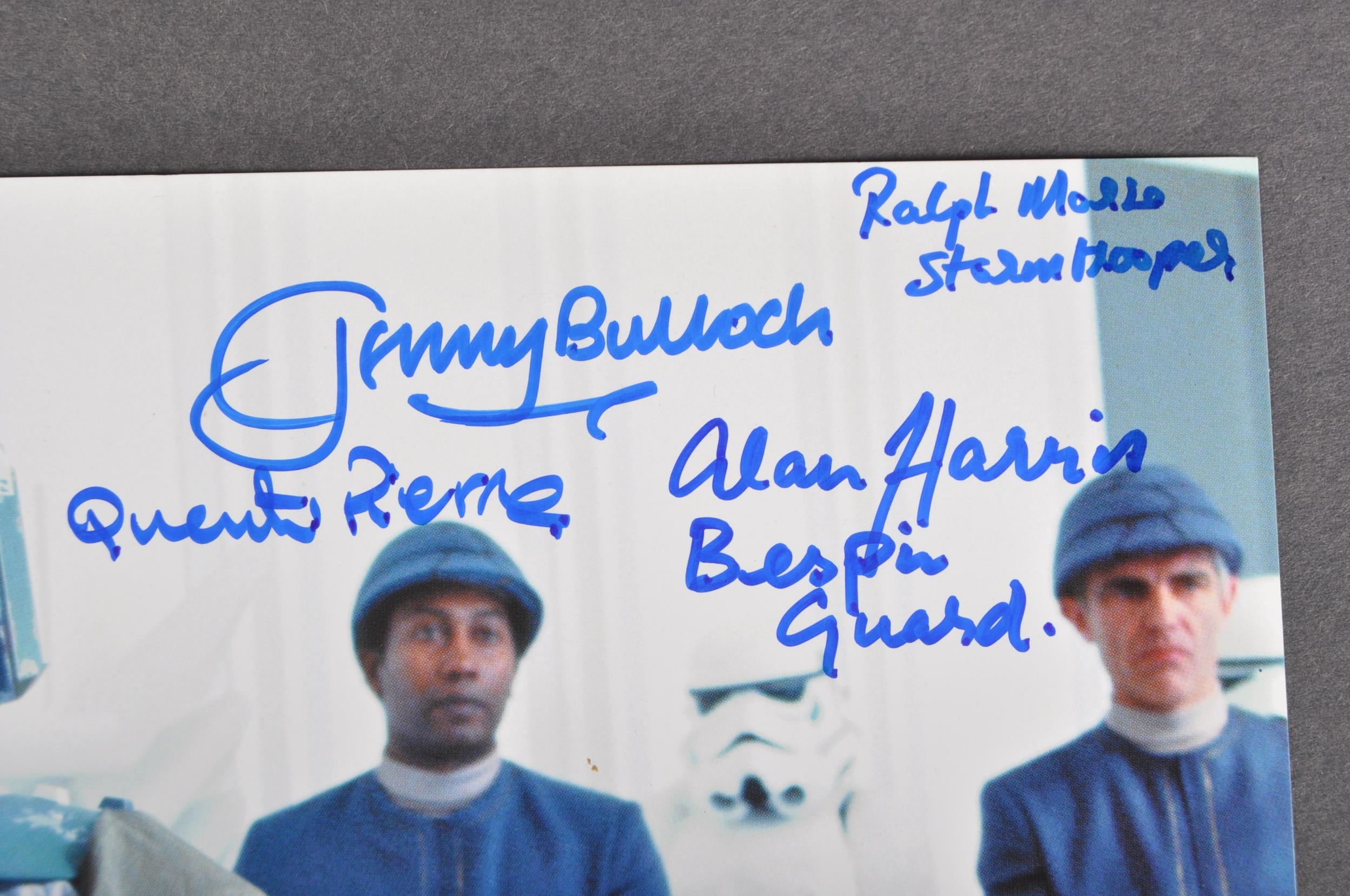 Star Wars - The Empire Strikes Back - an original Star Wars Celebration II Official Pix photograph autographed by x4 of the original cast members - Jeremy Bulloch (1945-2020 - Boba Fett), Alan Harris (1938-2020 - Bespin Guard), Quentin Pierre (Sergeant Isdam Edian) and Ralph Morse (Stromtrooper). All signed in blue ink, undedicated. All obtained in person by the vendor from various personal appearances. Unique autographed item.