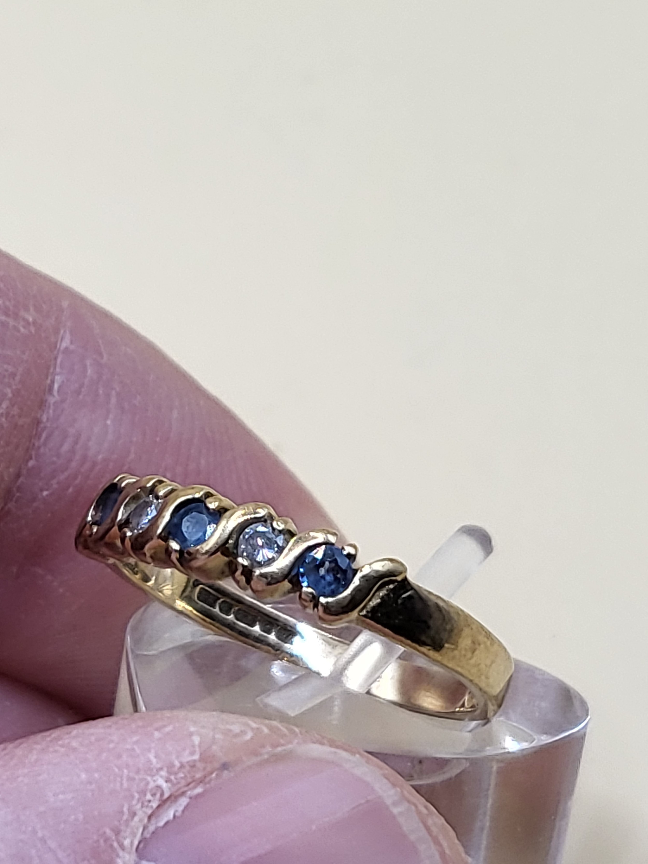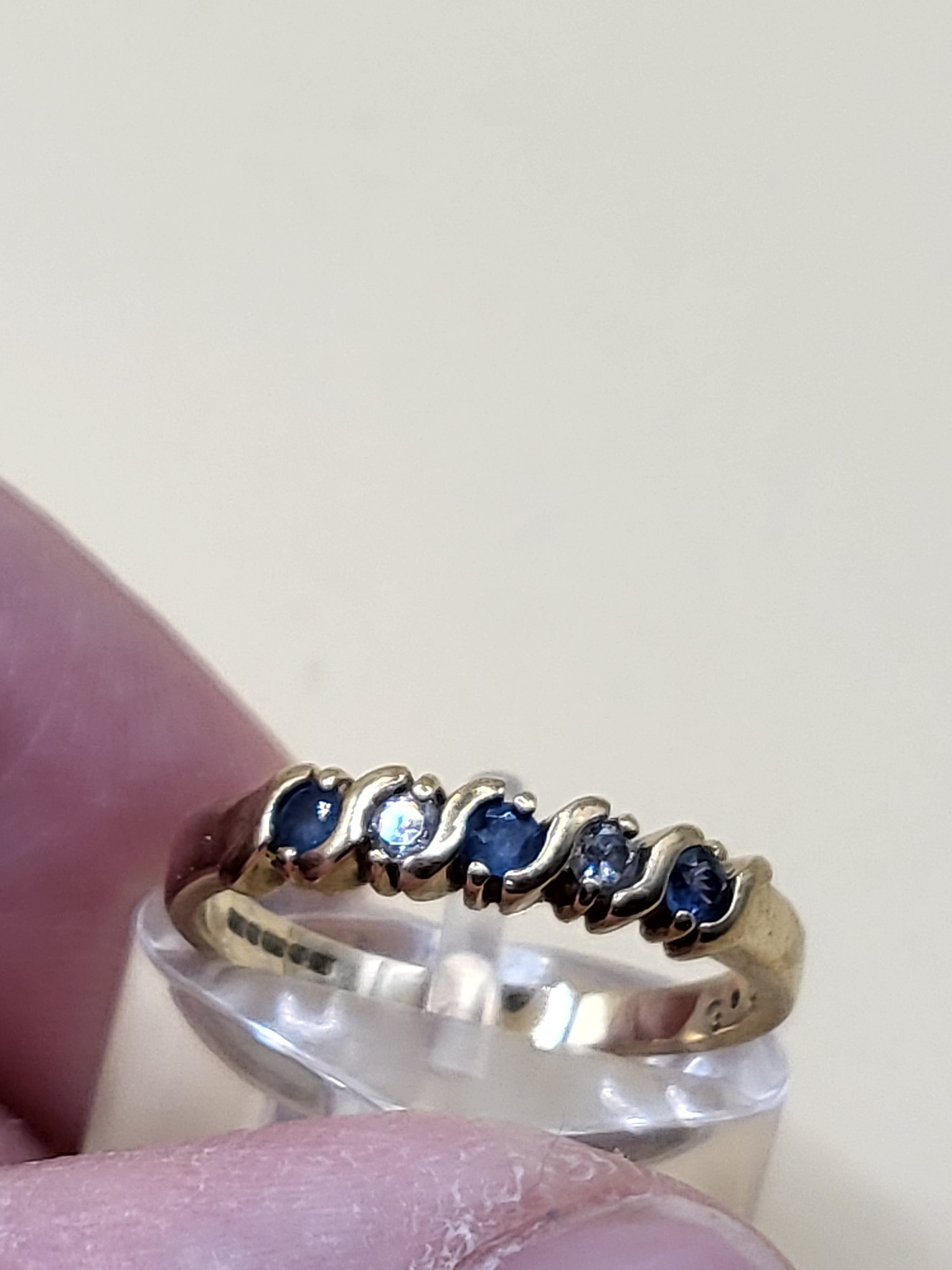 9ct Gold Diamonds & Sapphires Lady's Ring Size O Weighs 2.2g Fully Hallmarked
