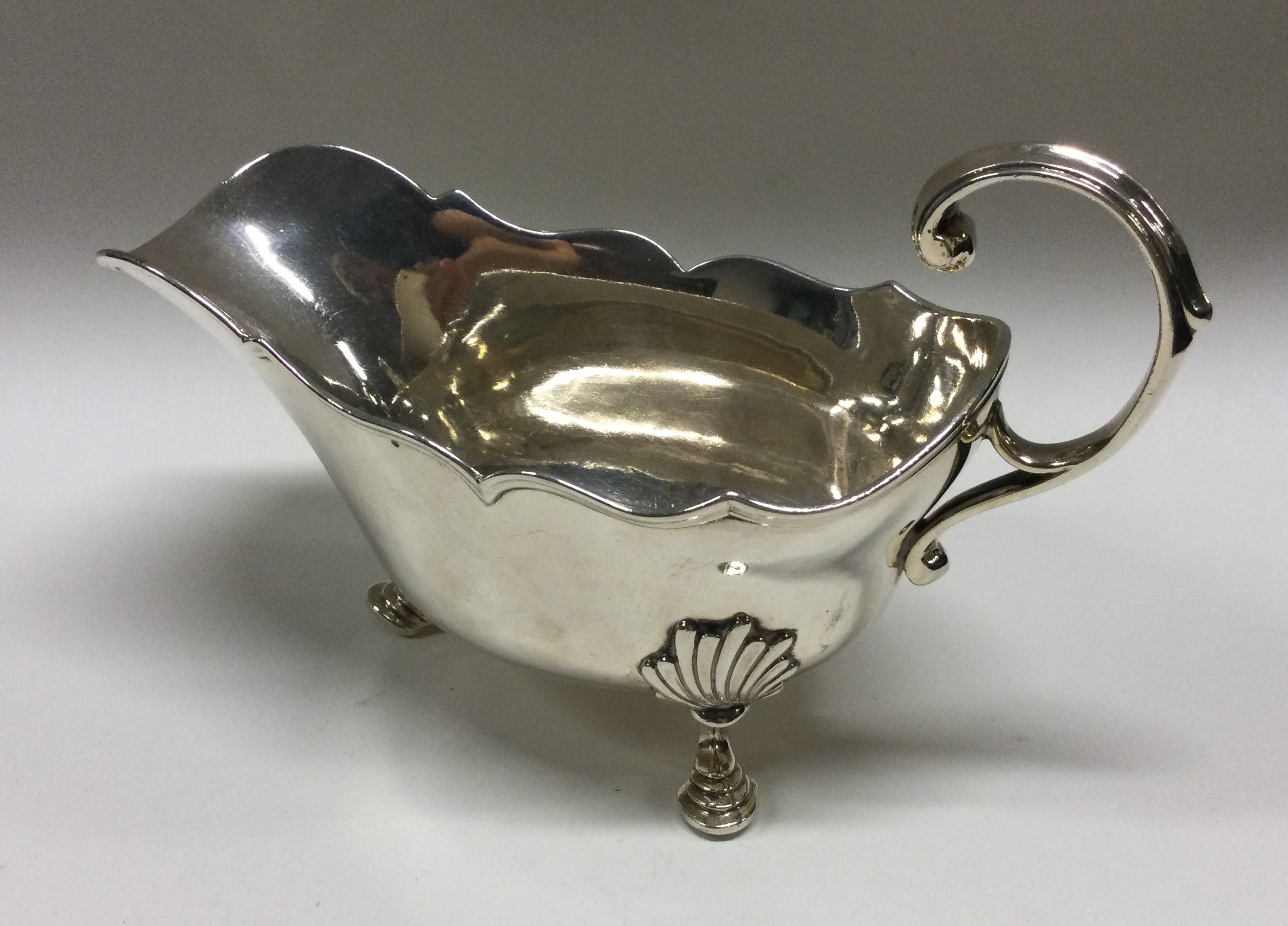 An 18th Century silver sauceboat. Possibly French? Approx. 267 grams. Est. £400 - £600.