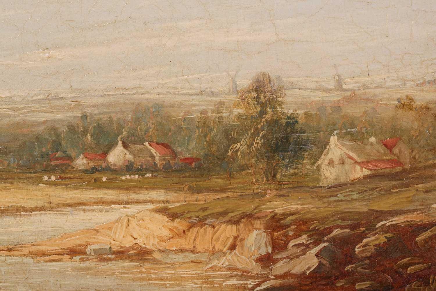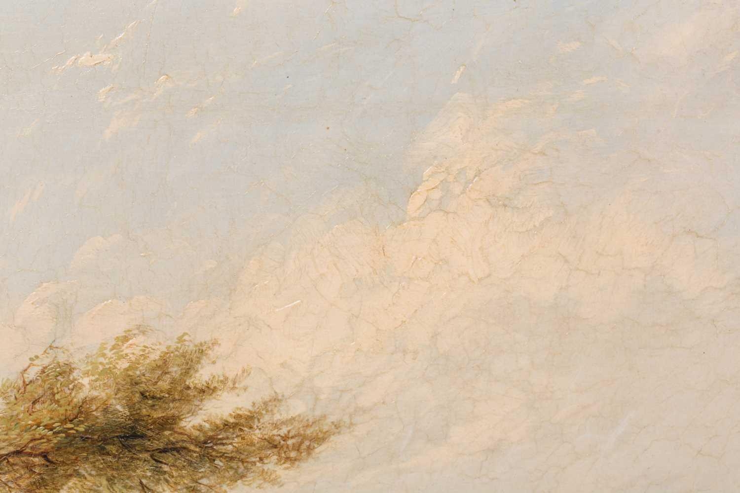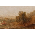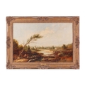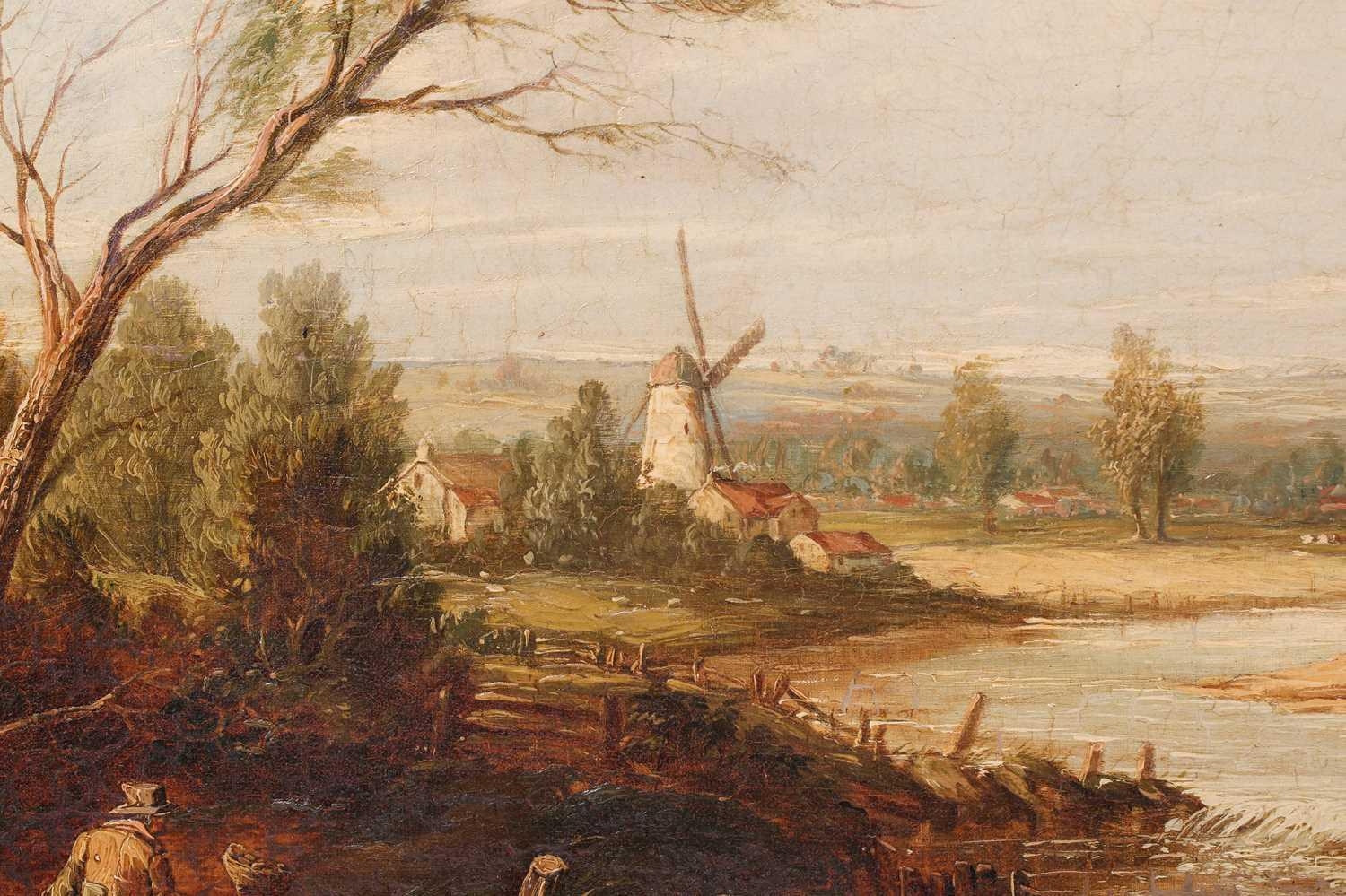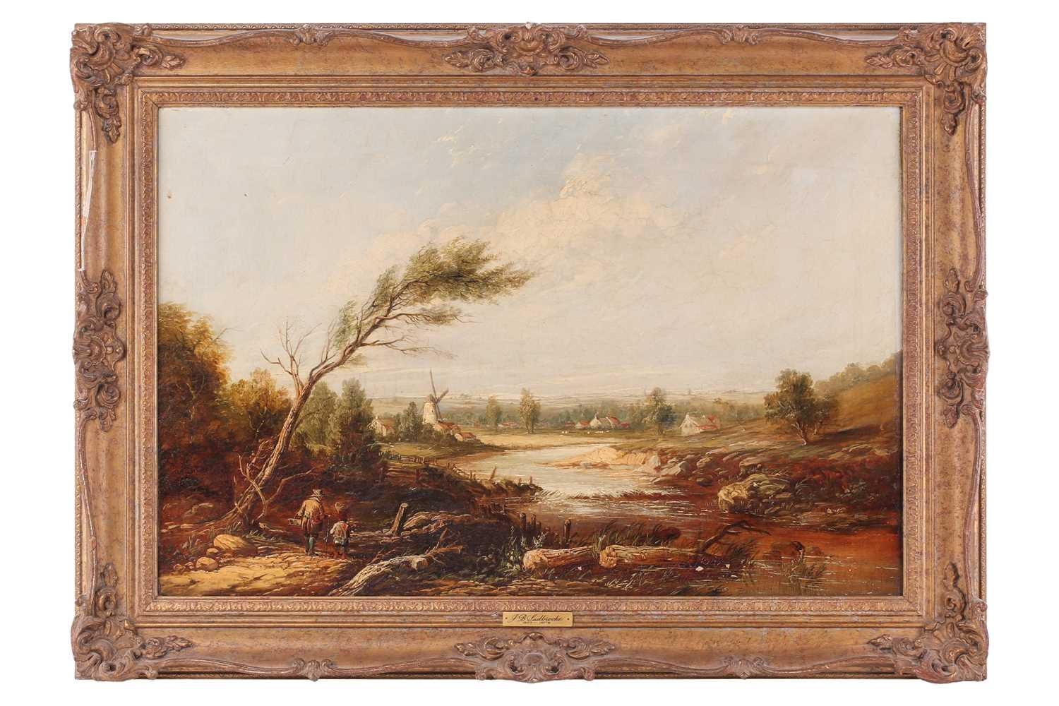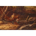 John Berney Ladbrooke (1803-1879), travellers beside a river, unsigned, oil on canvas, 44 cm x 67 cm, in a gilt frame 59 x 82.5 cm