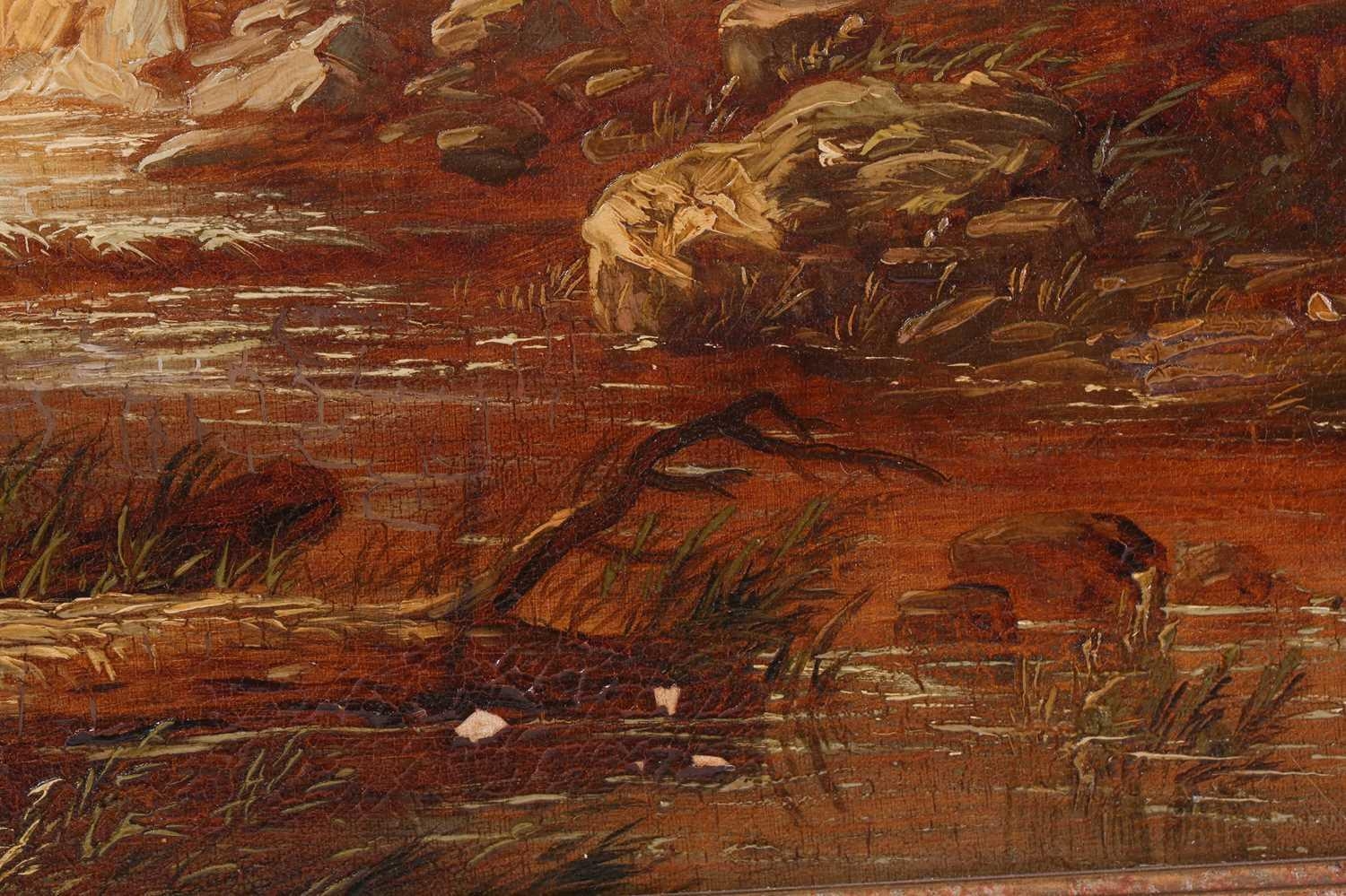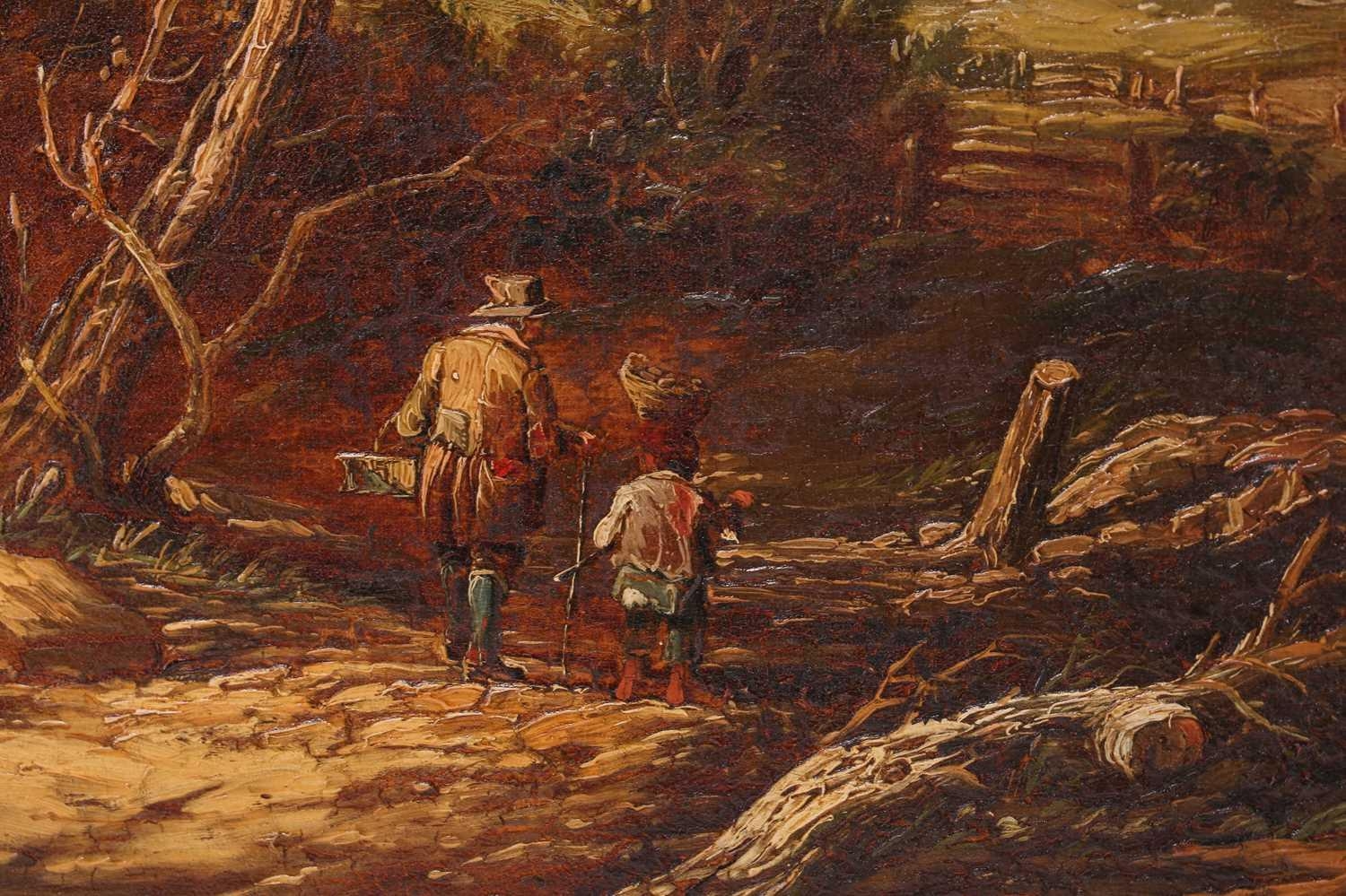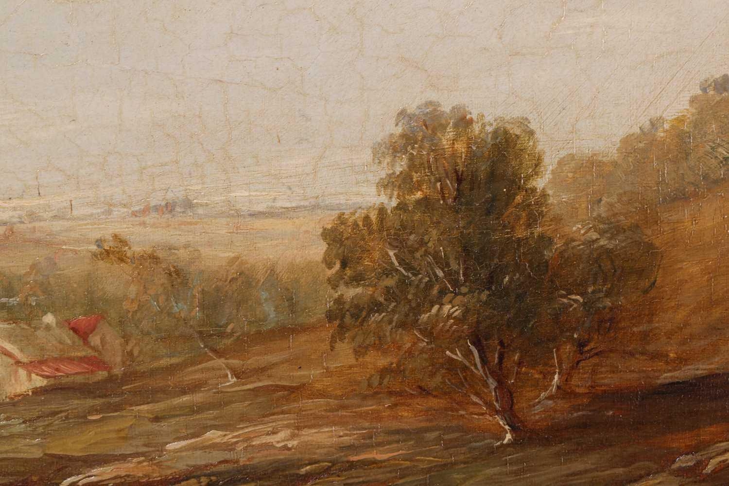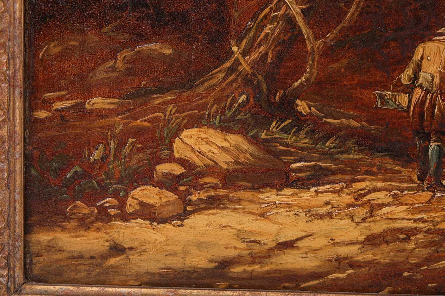 John Berney Ladbrooke (1803-1879), travellers beside a river, unsigned, oil on canvas, 44 cm x 67 cm, in a gilt frame 59 x 82.5 cm