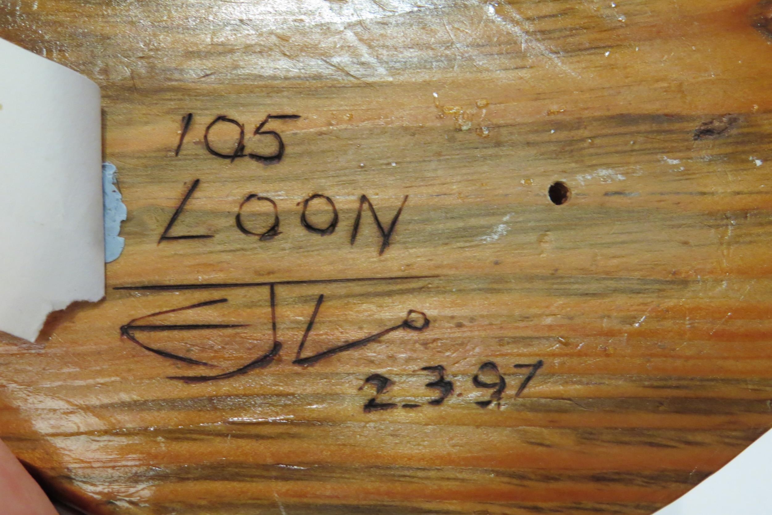 A carved Great Northern Diver (Loon) by Edward Lovesey 2/3/97, marked to base, 27cm long